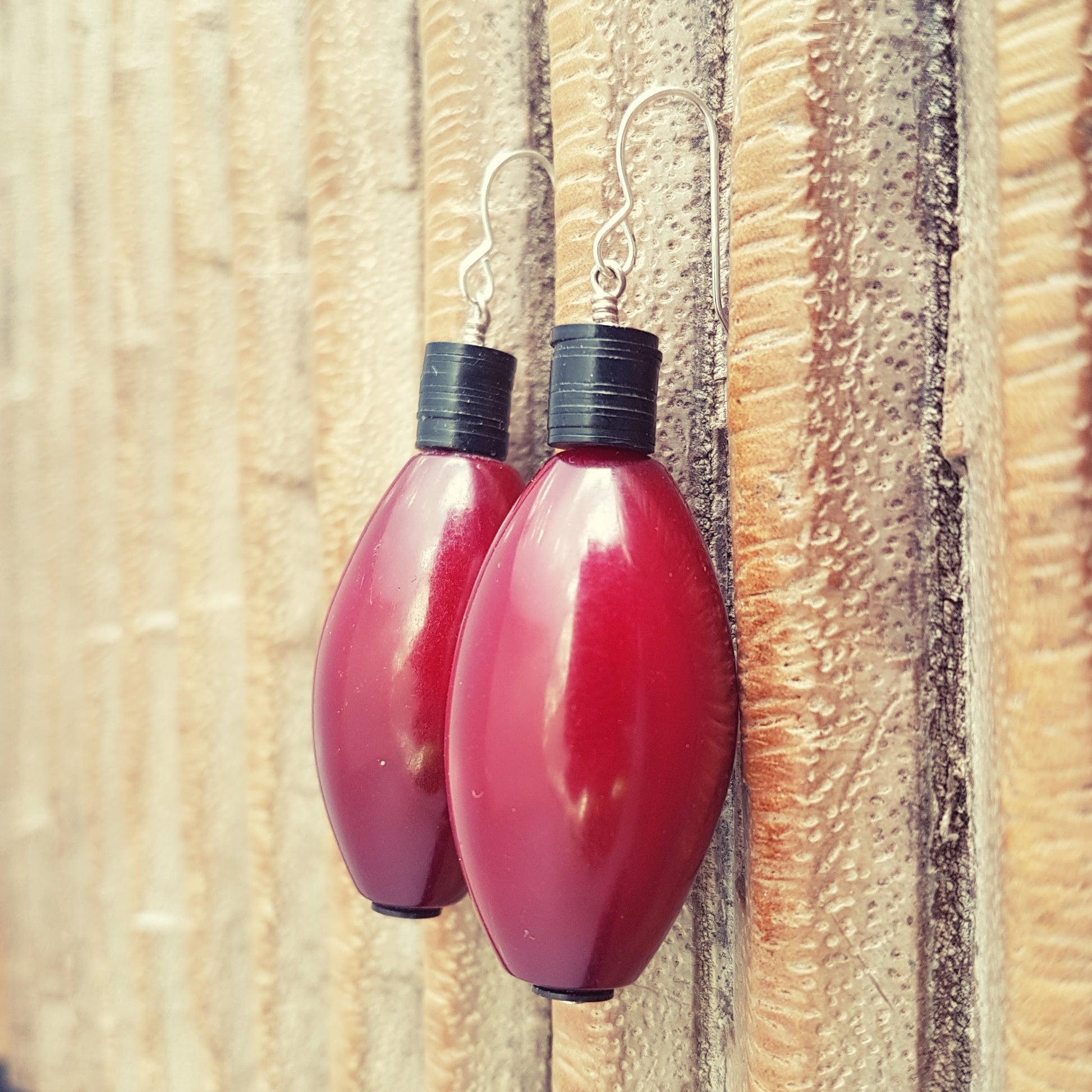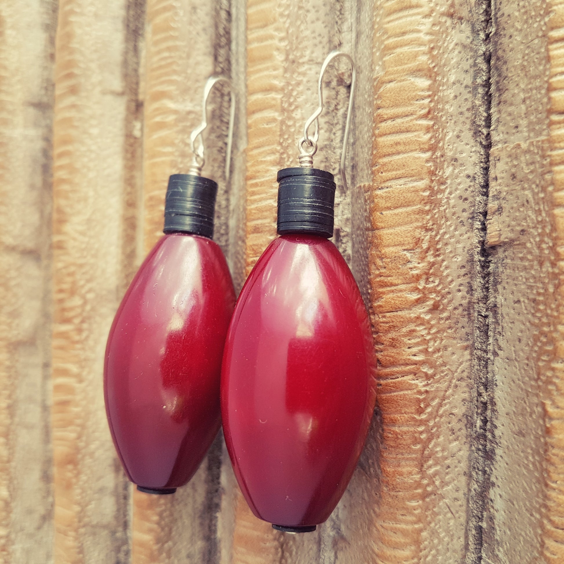 Resin (Indonesia)/ Bakelite (Africa)/ Sterling silver hooks