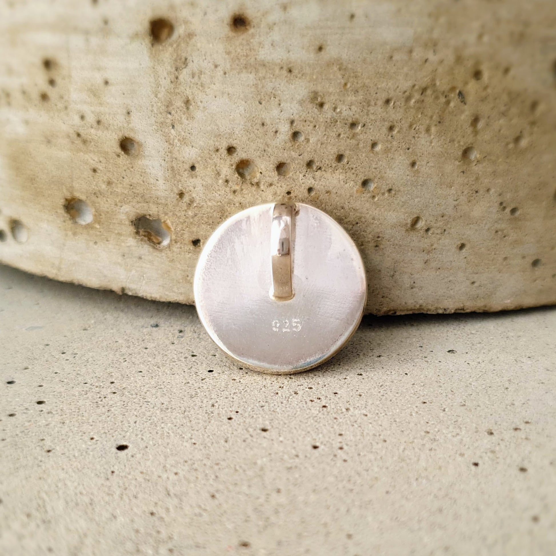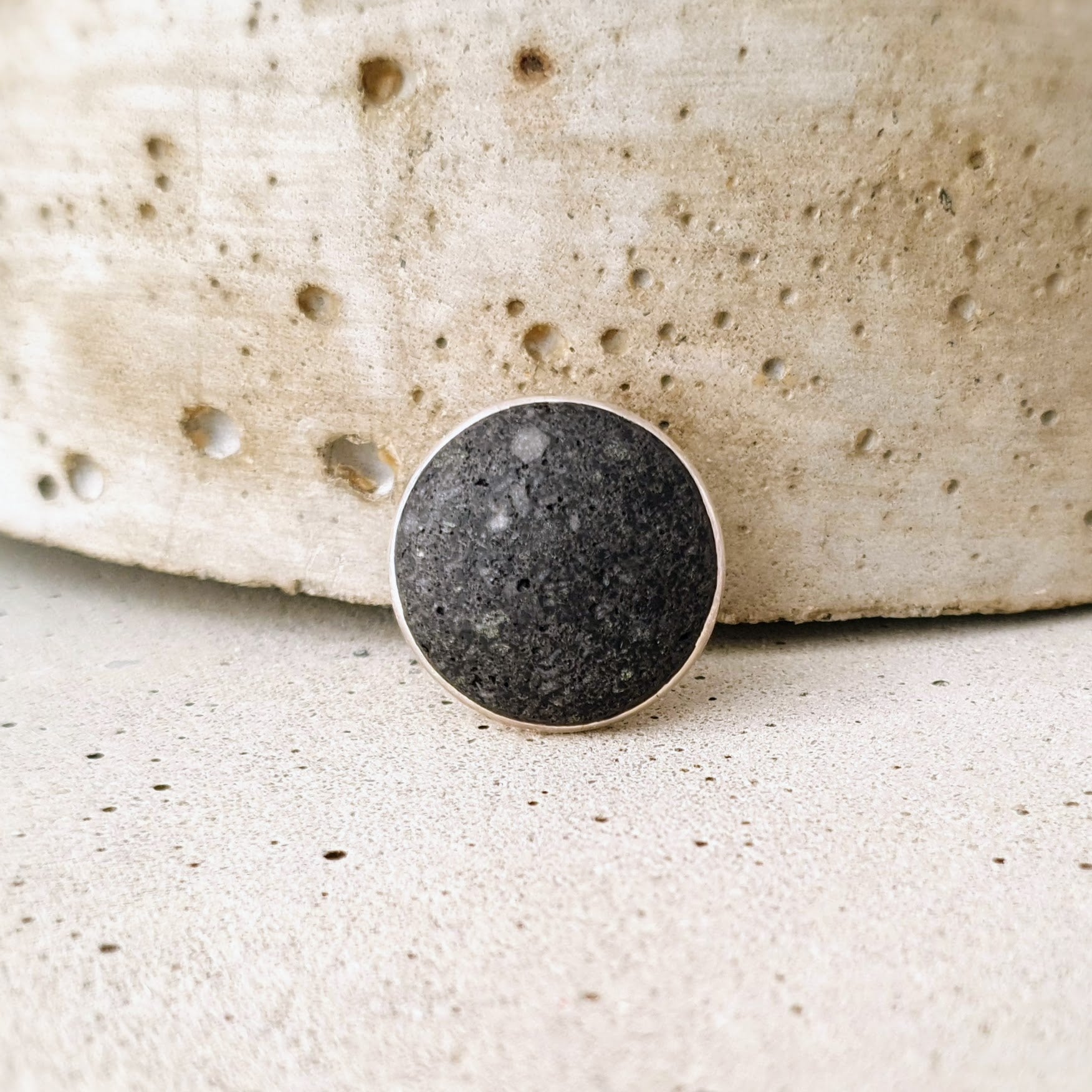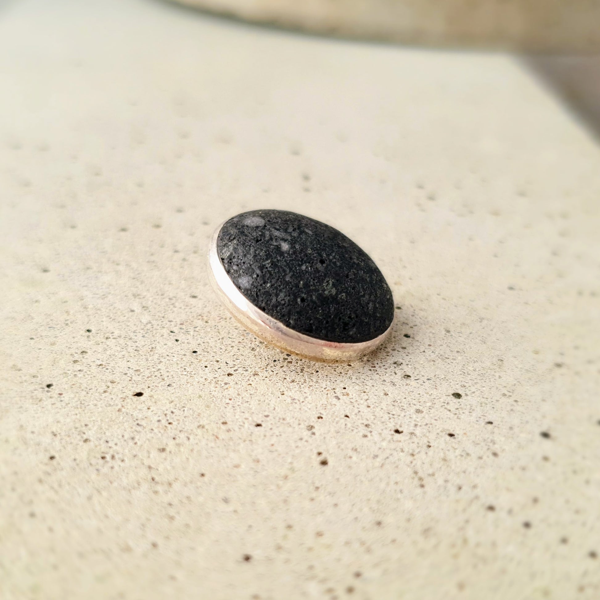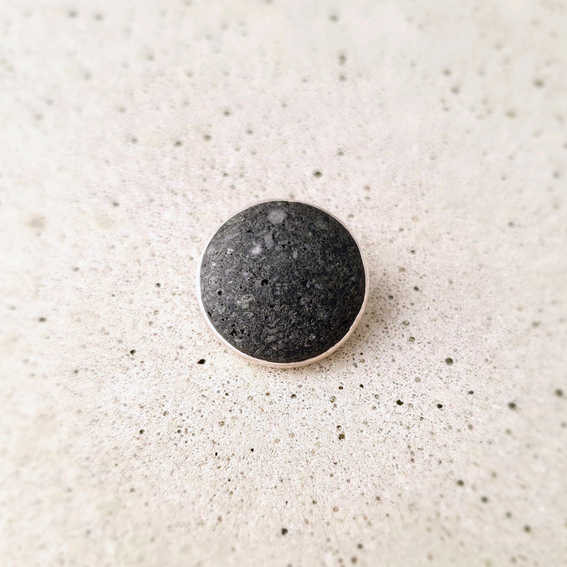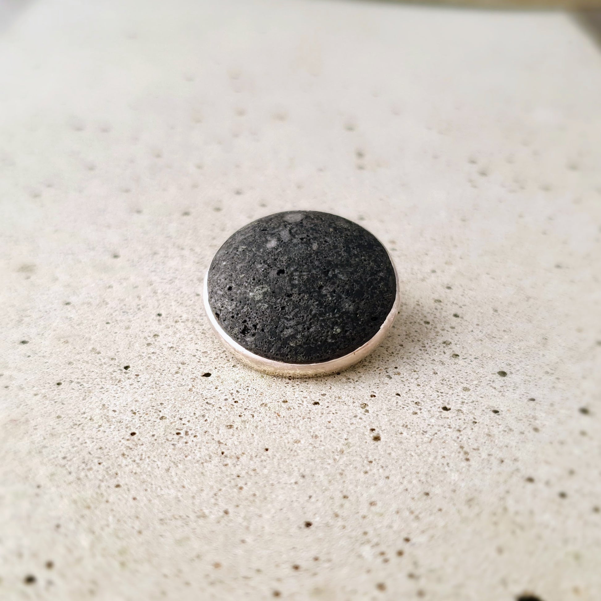 Kleiner runder Kettenanhänger aus Sterlingsilber mit schwarzem Lavastein.