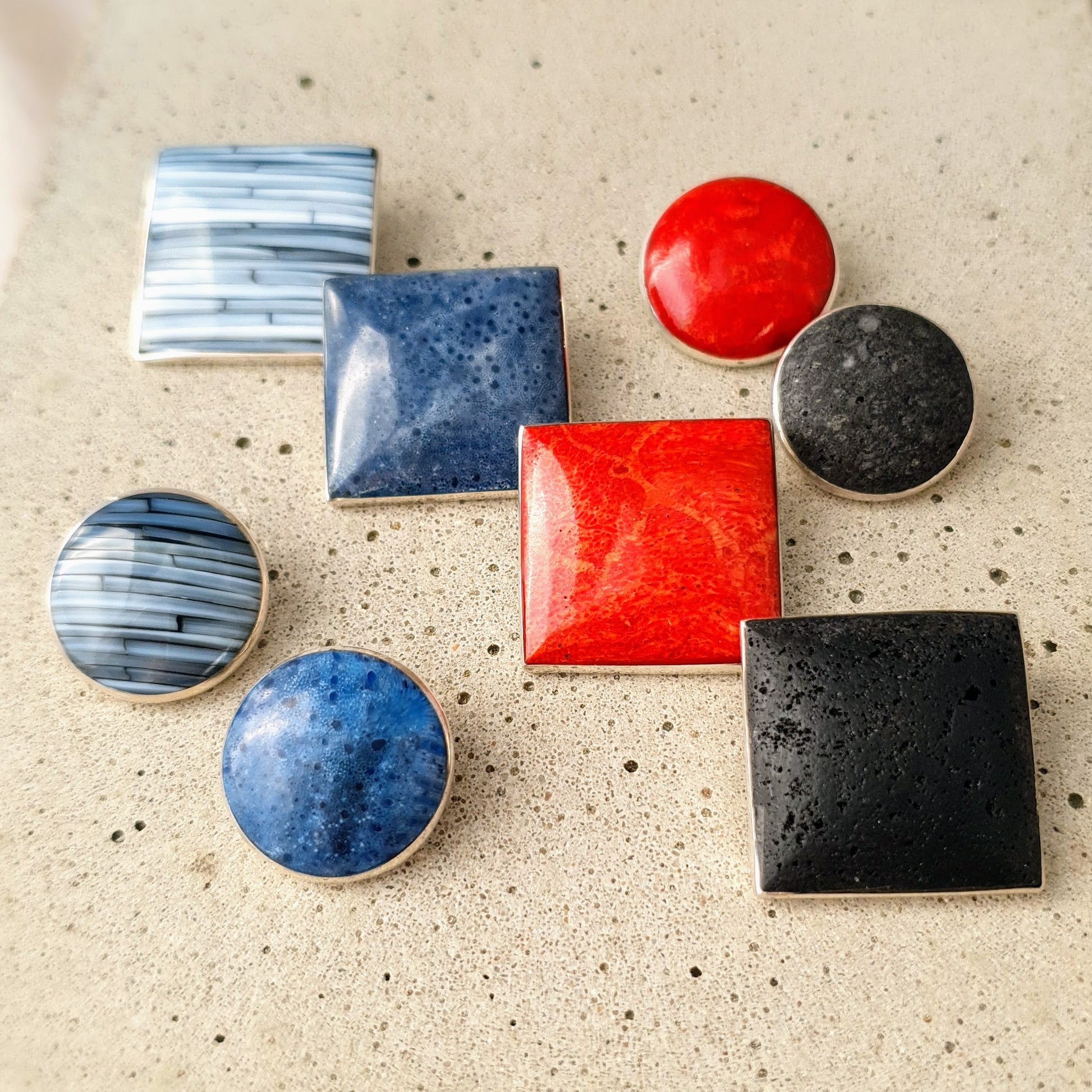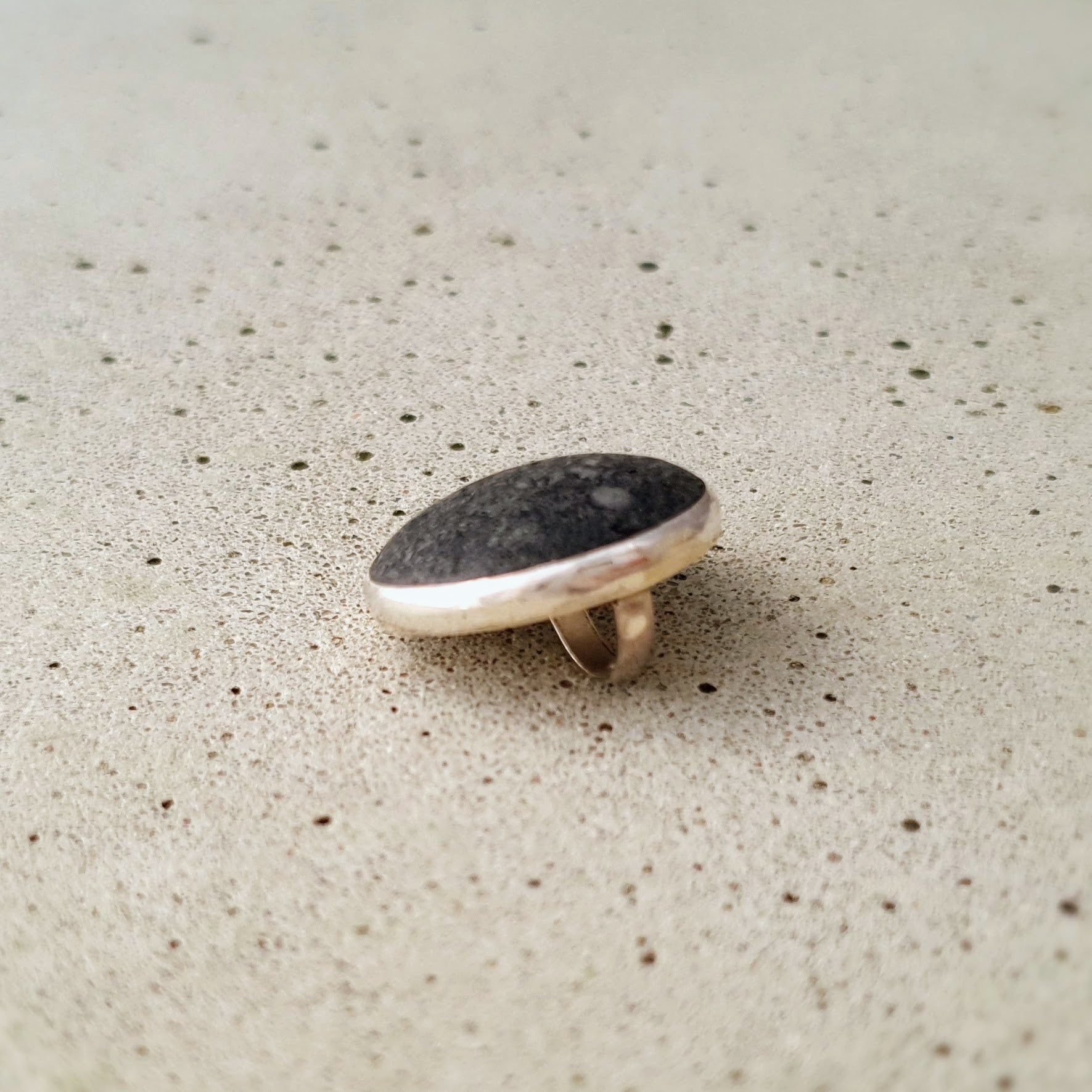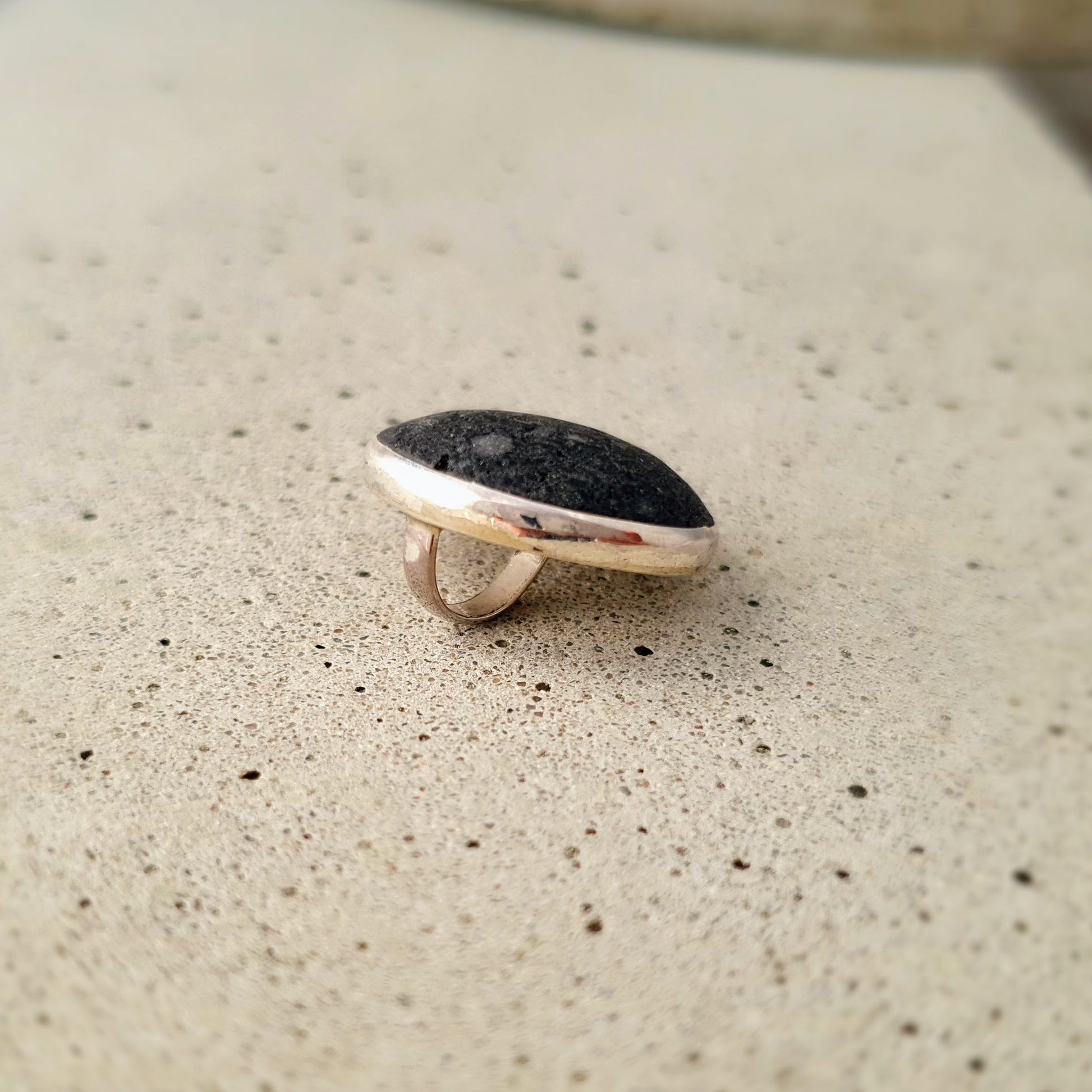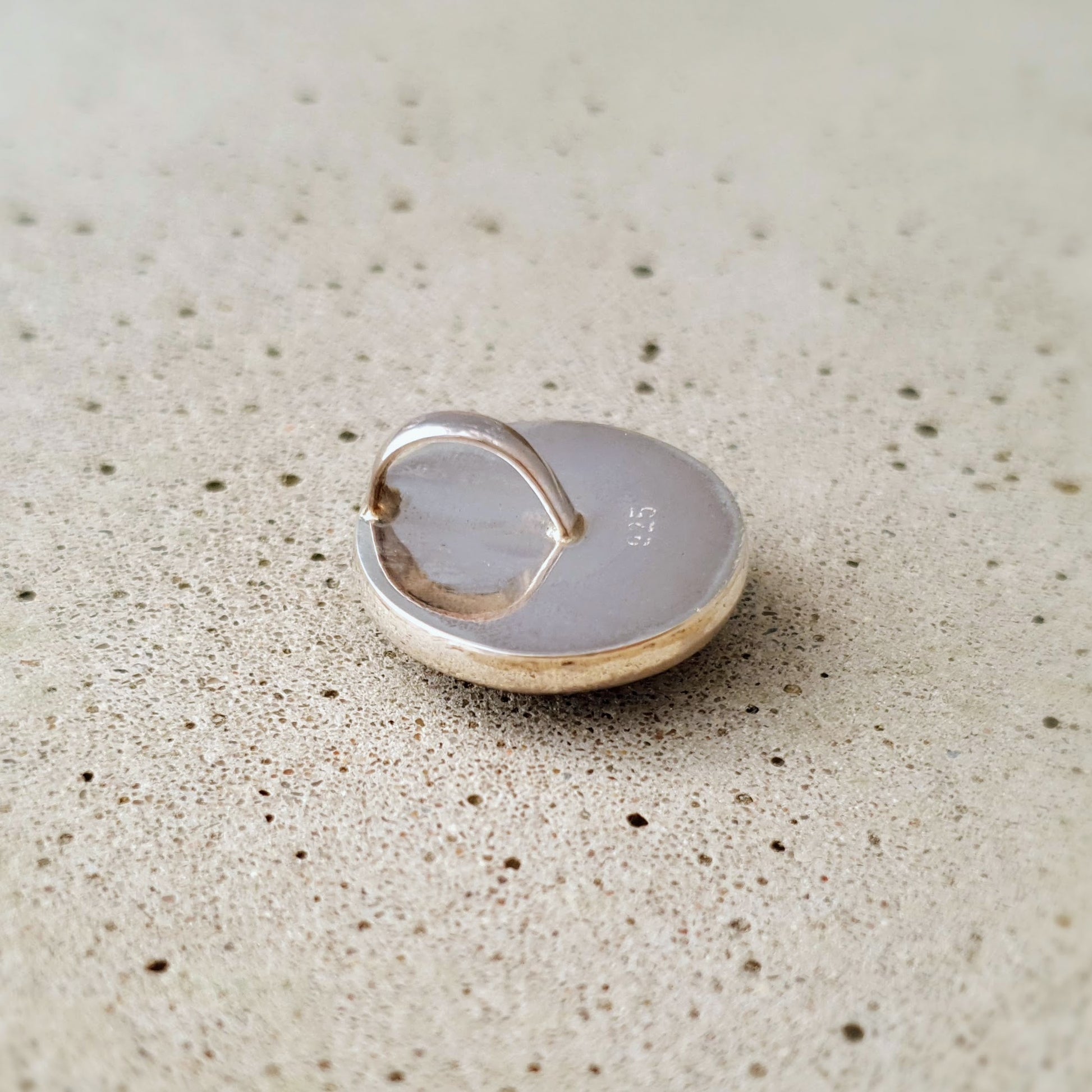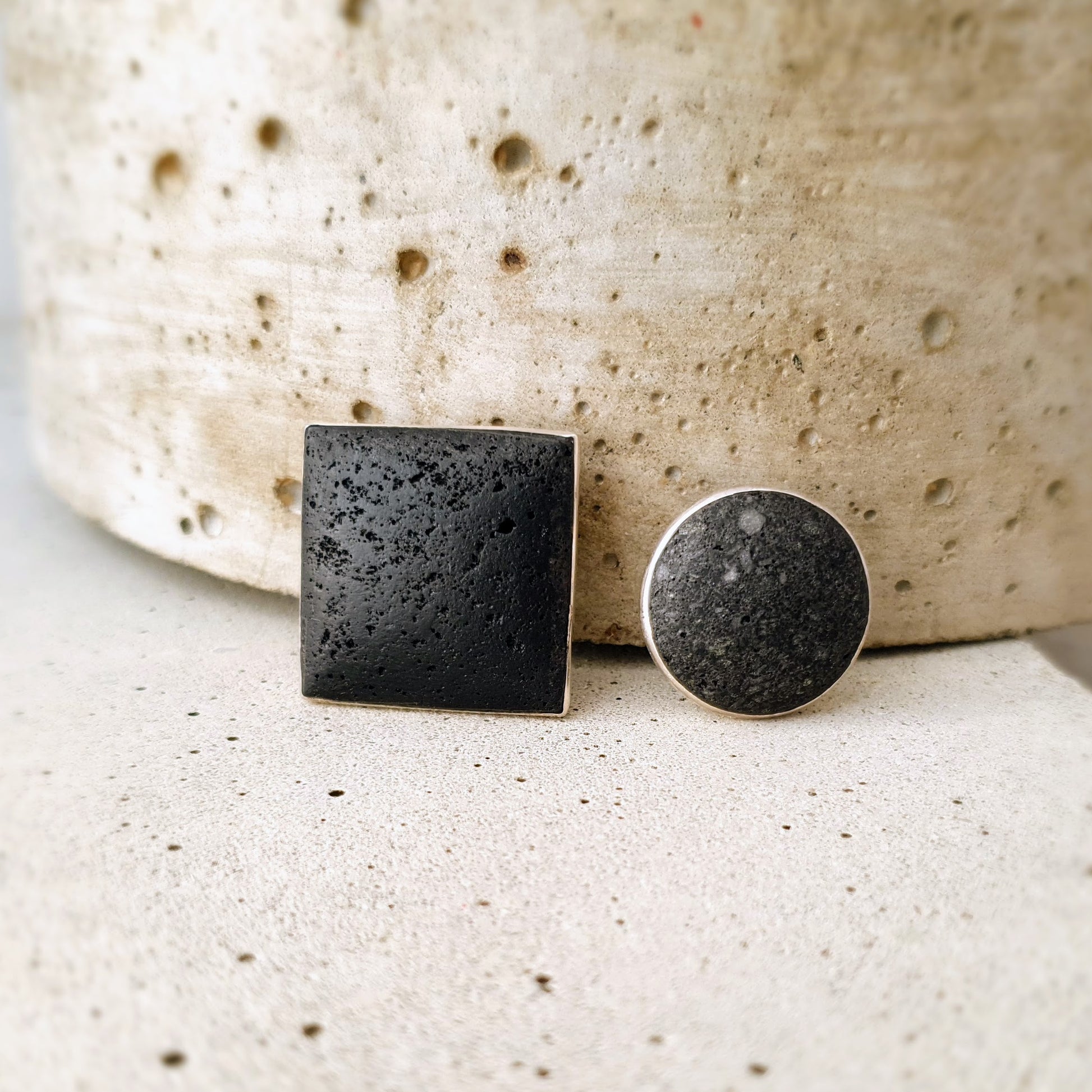 Kleiner runder Kettenanhänger aus Sterlingsilber mit schwarzem Lavastein.