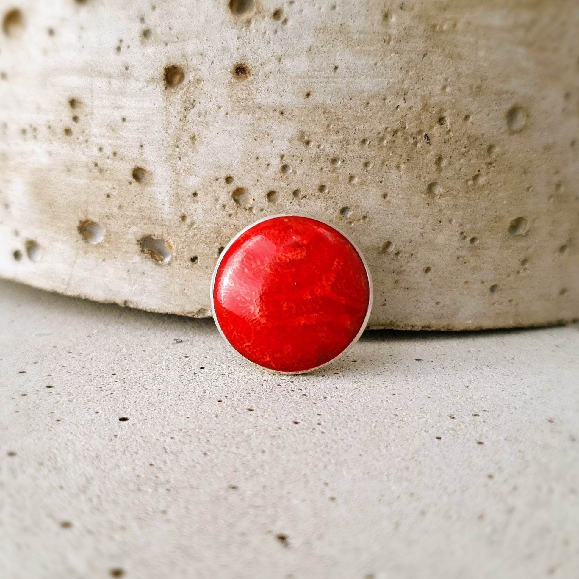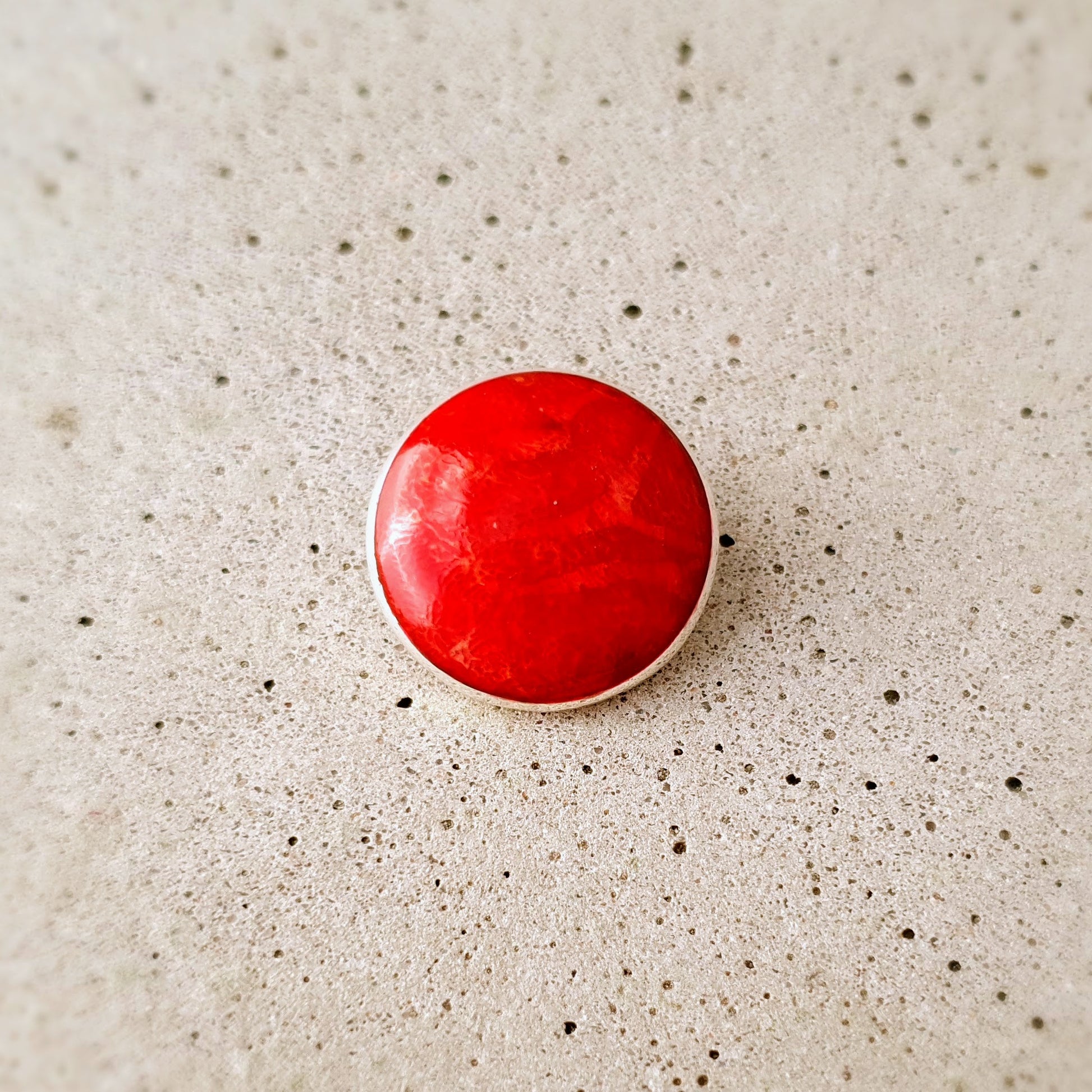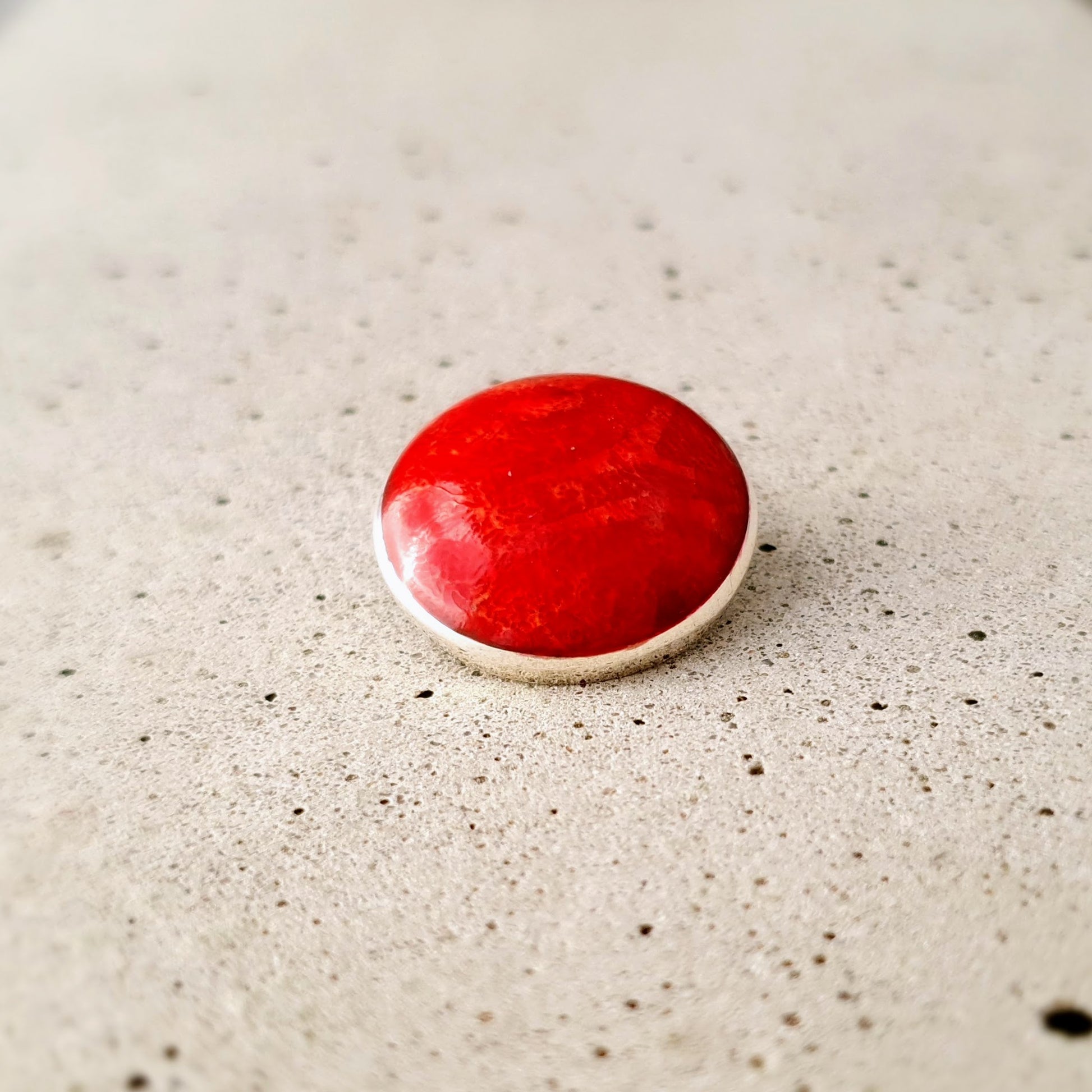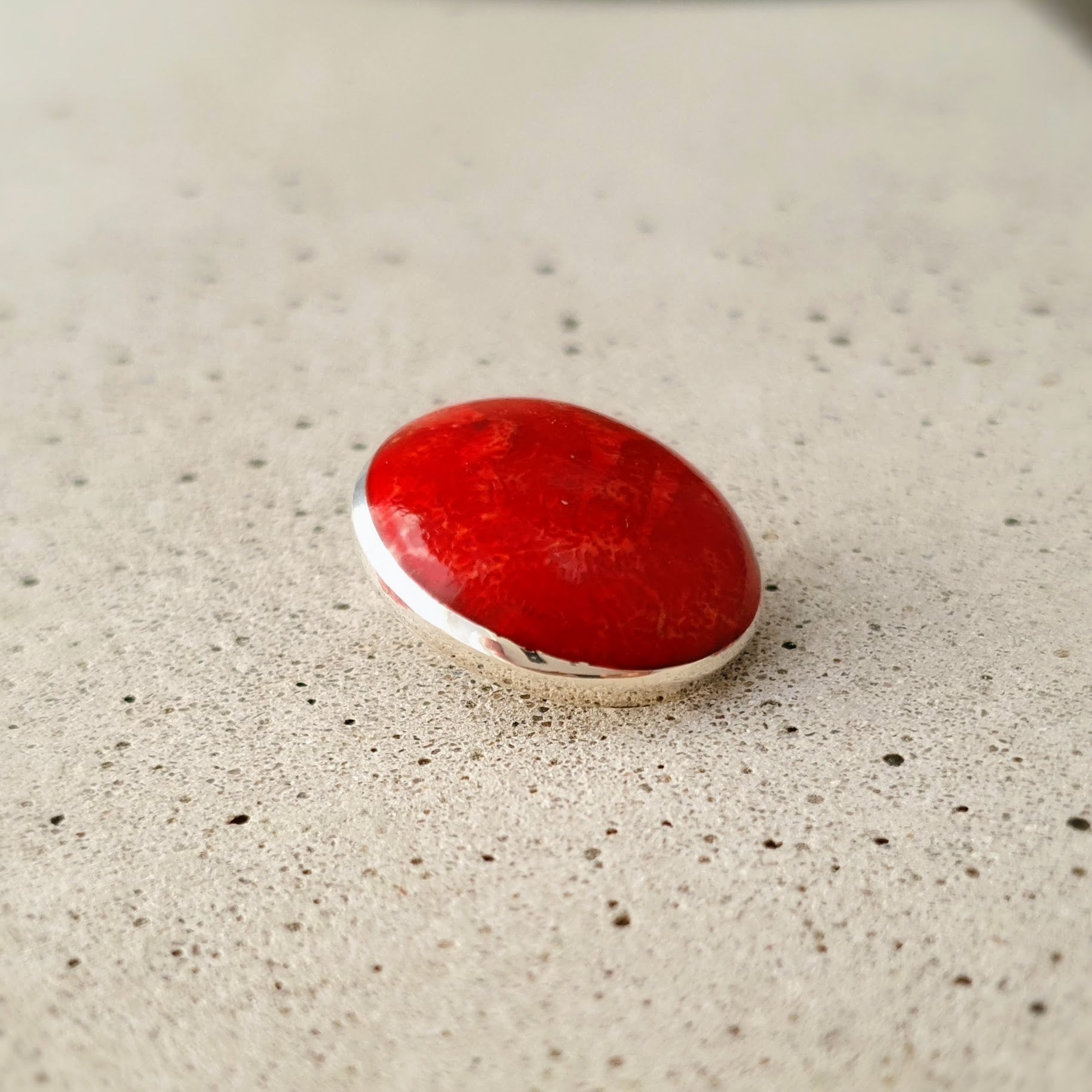 Kleiner runder Kettenanhänger aus Sterlingsilber mit roter Schaumkoralle.