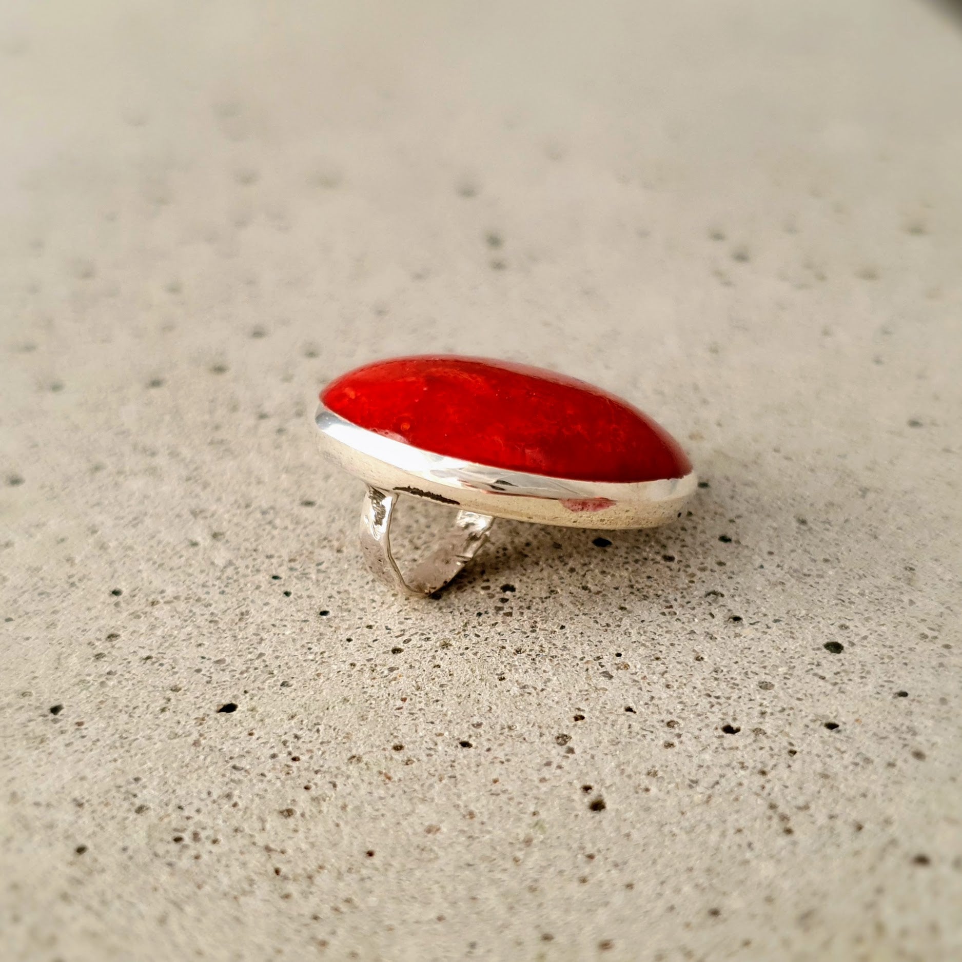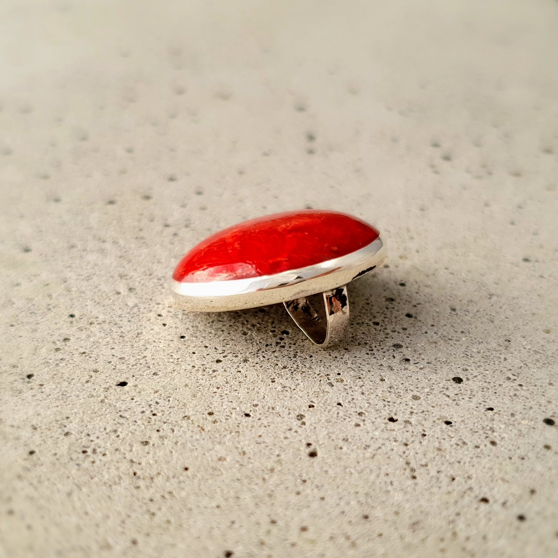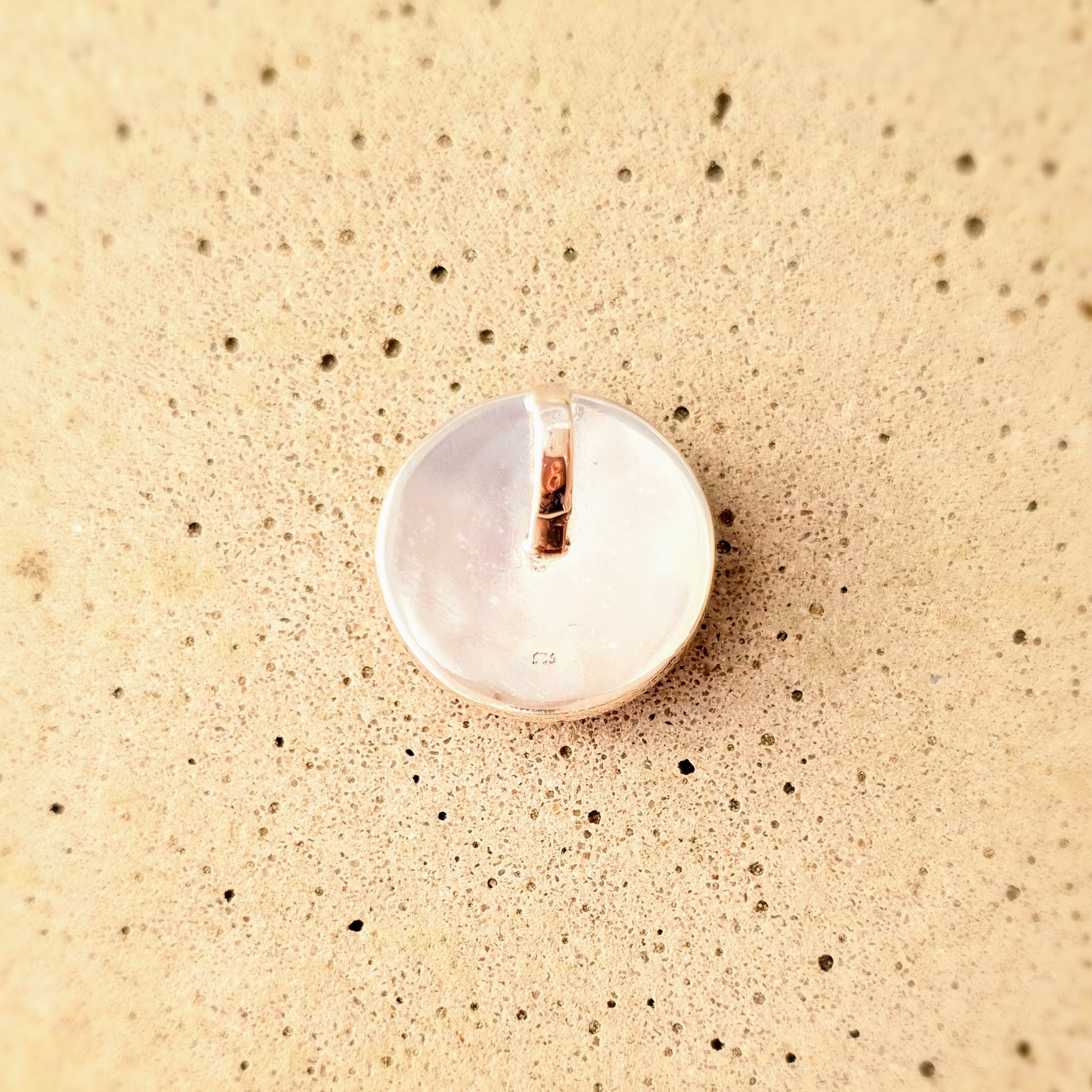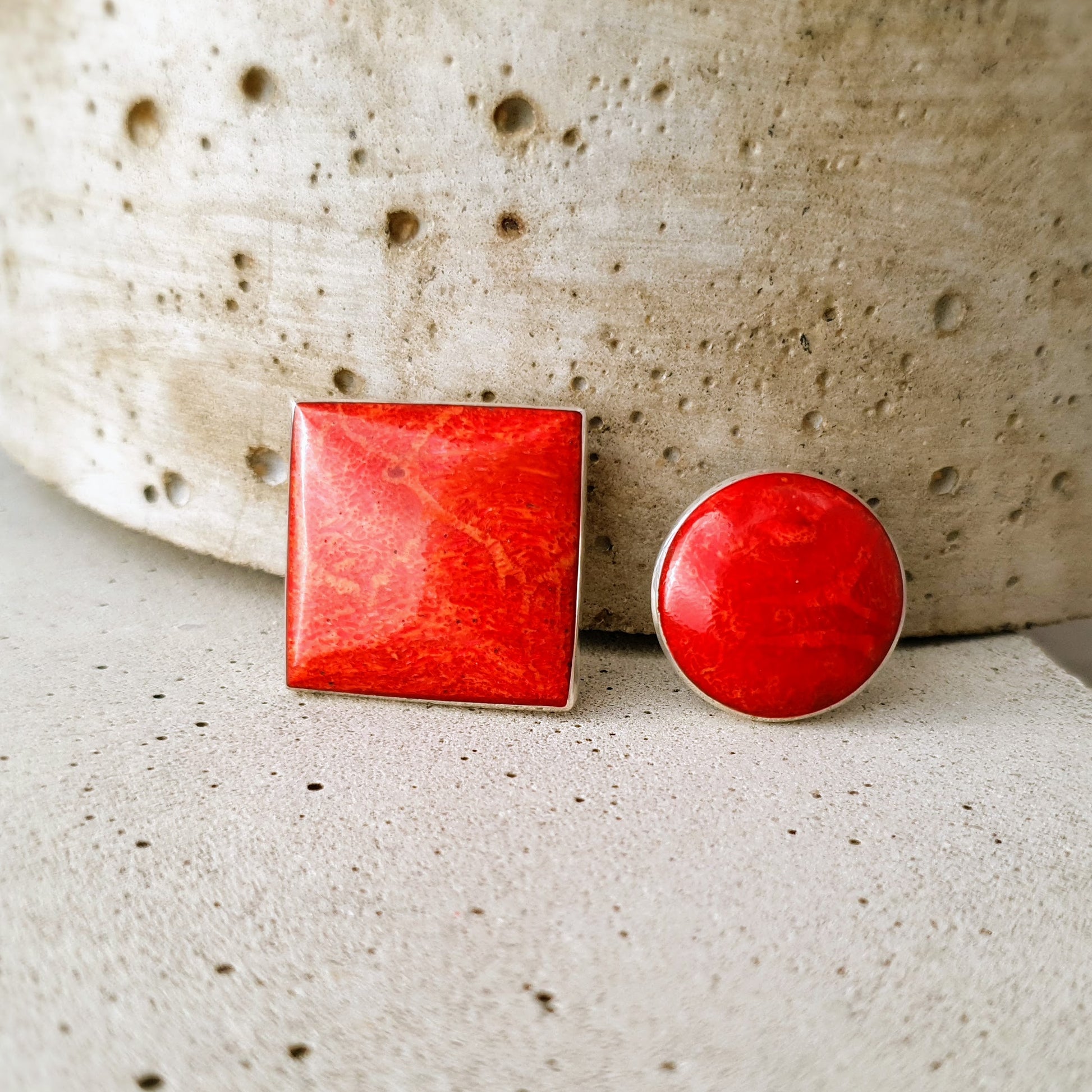 Kleiner runder Kettenanhänger aus Sterlingsilber mit roter Schaumkoralle.