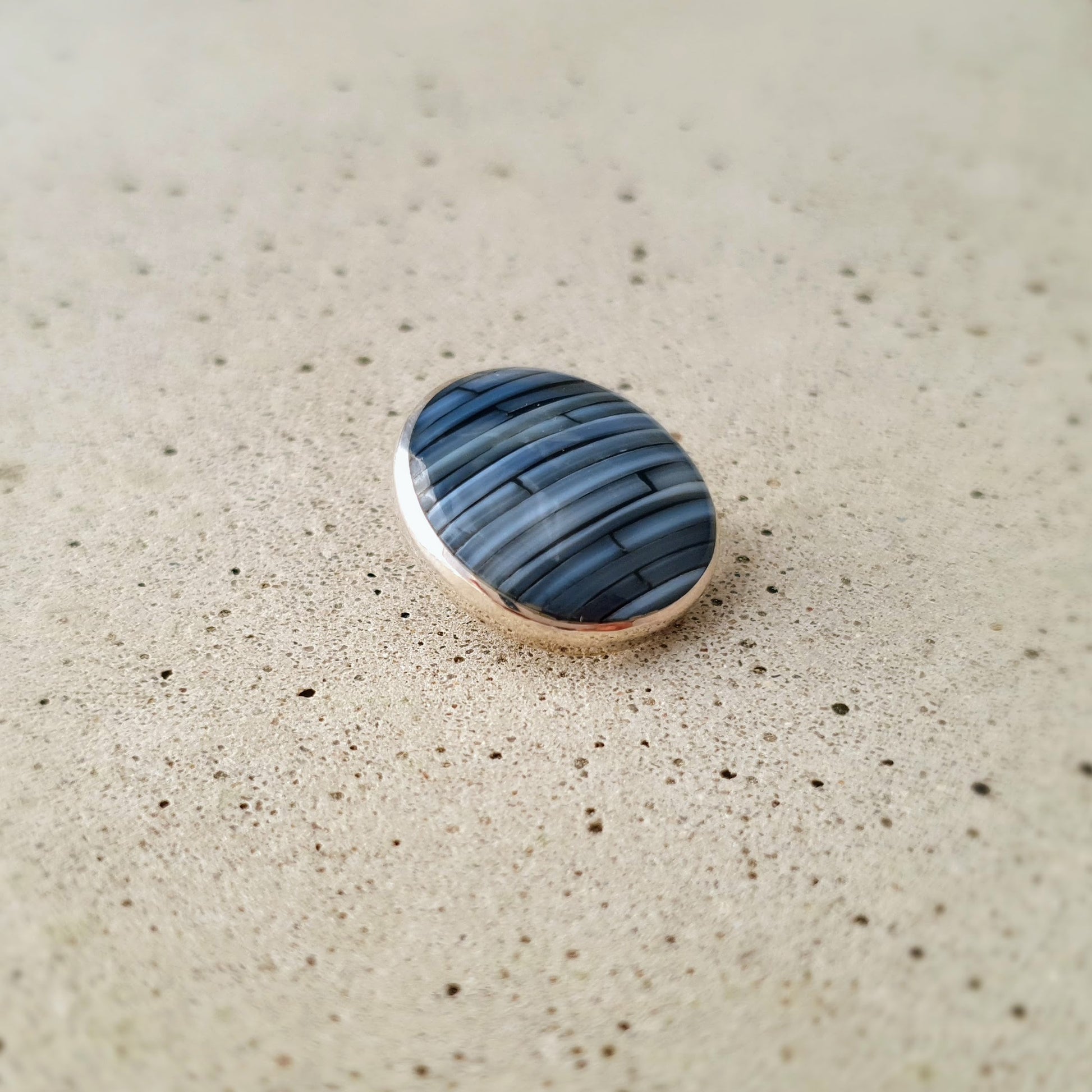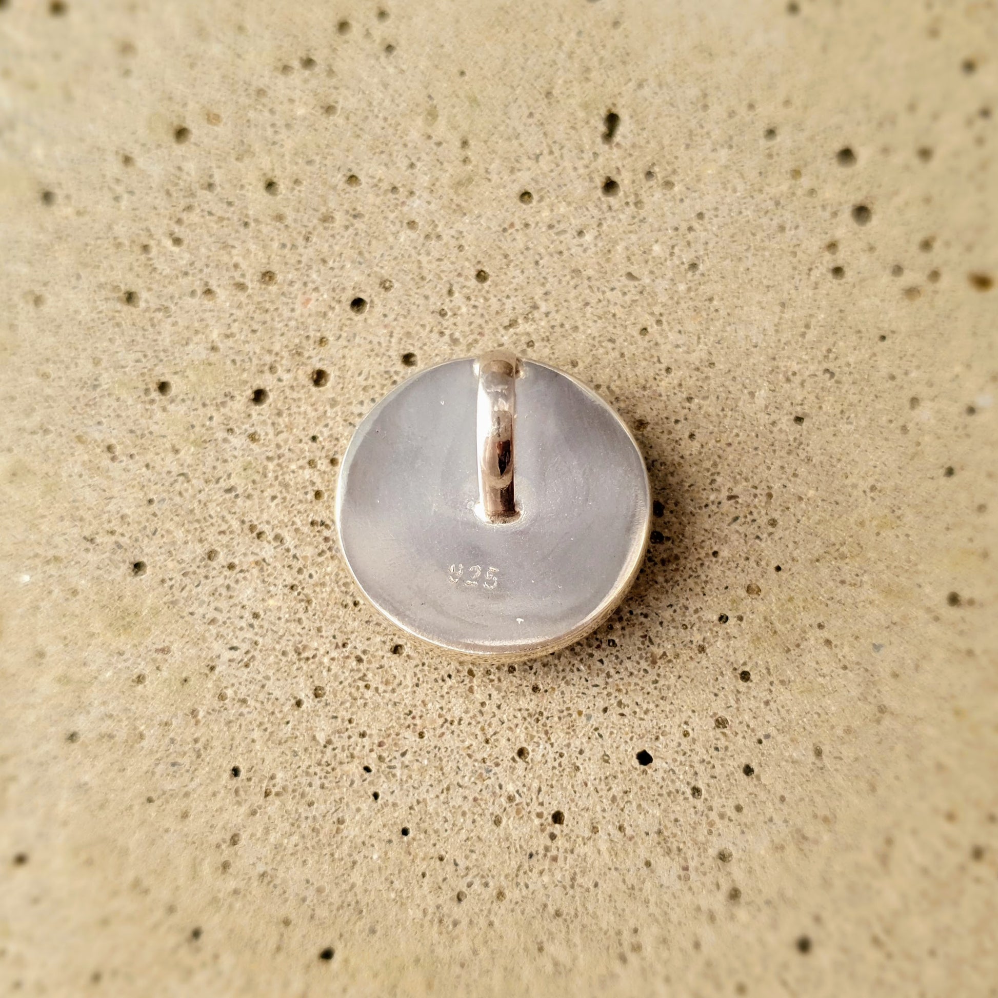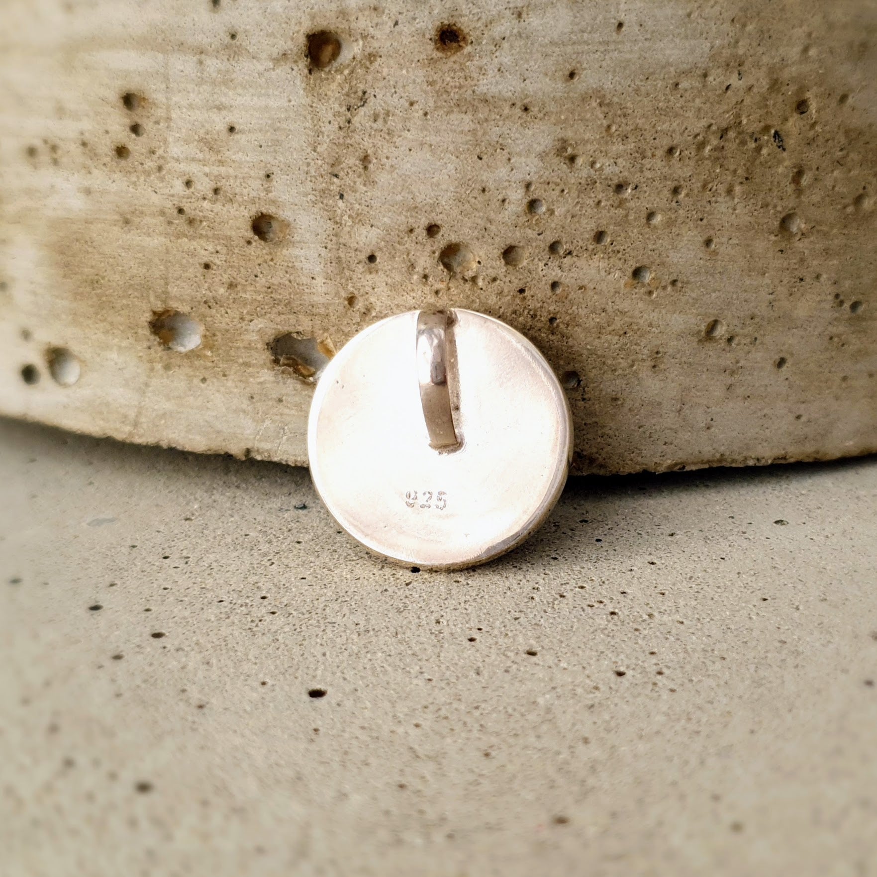 Kleiner runder Kettenanhänger aus Sterlingsilber mit Perlmuttmosaik.