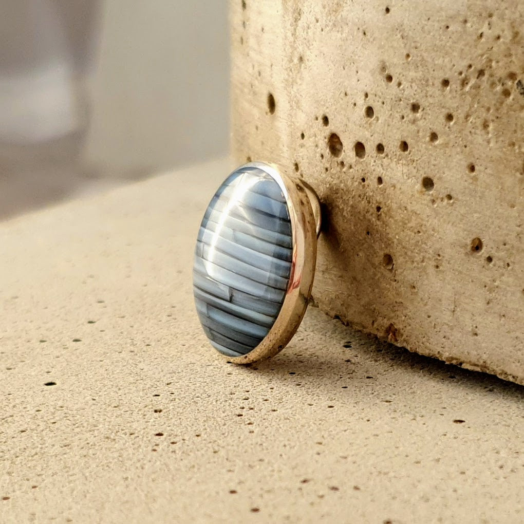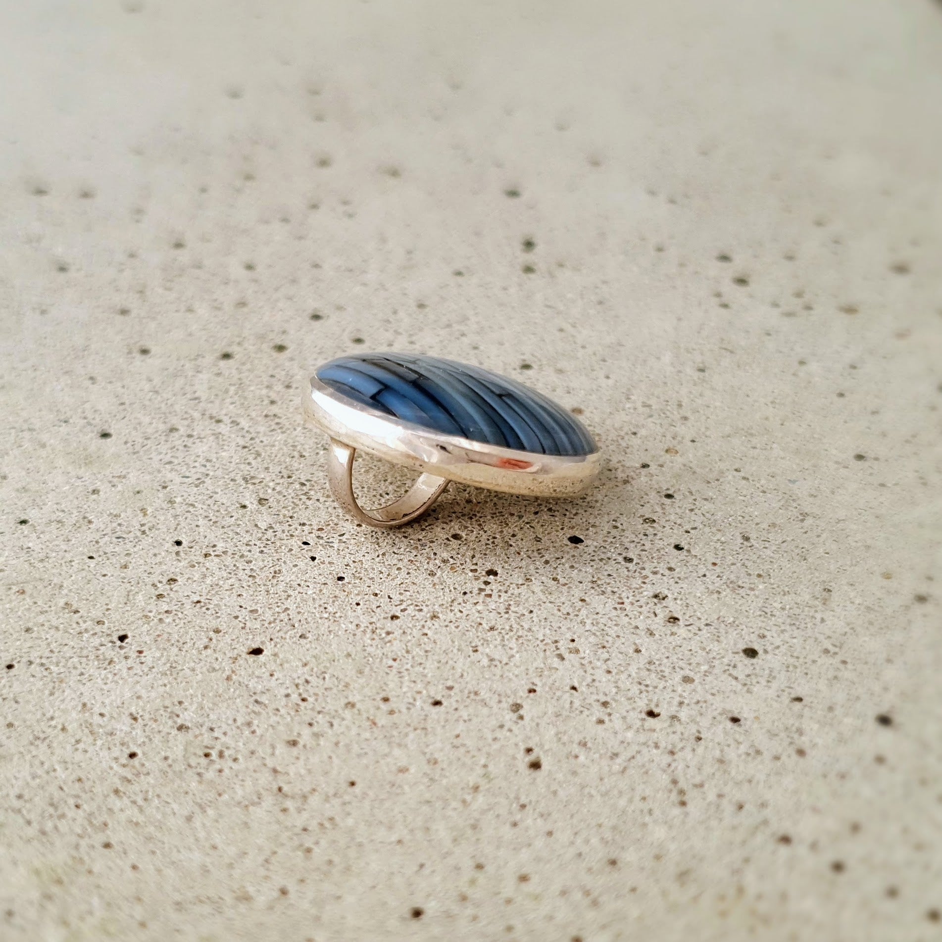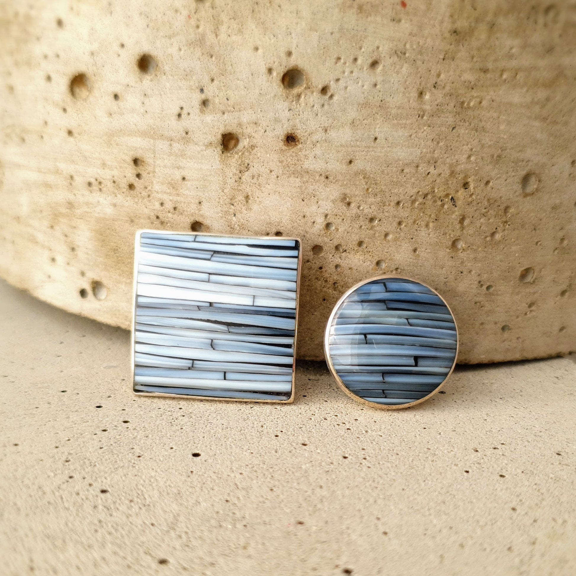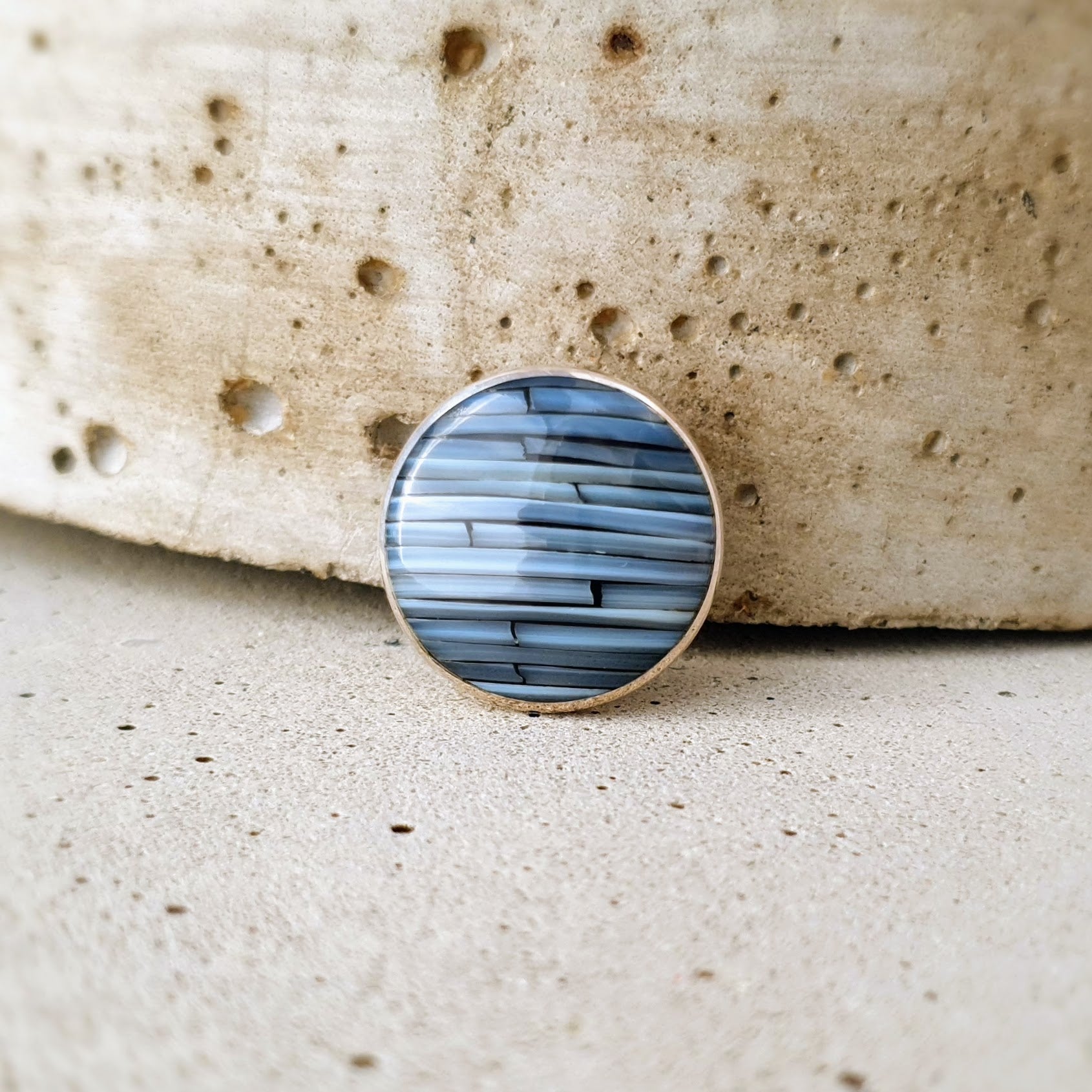 Kleiner runder Kettenanhänger aus Sterlingsilber mit Perlmuttmosaik.