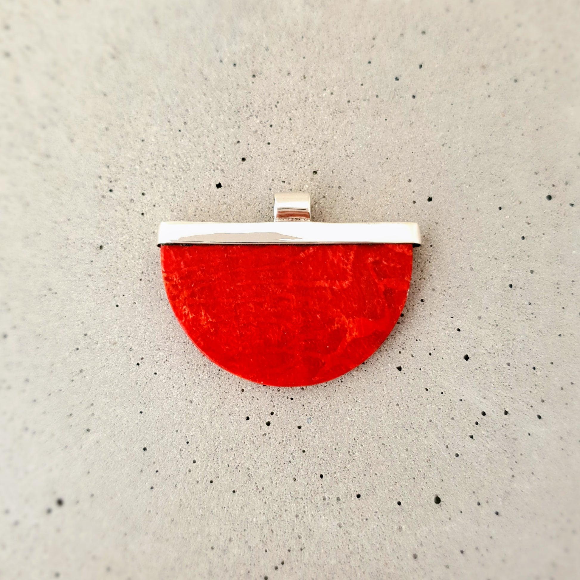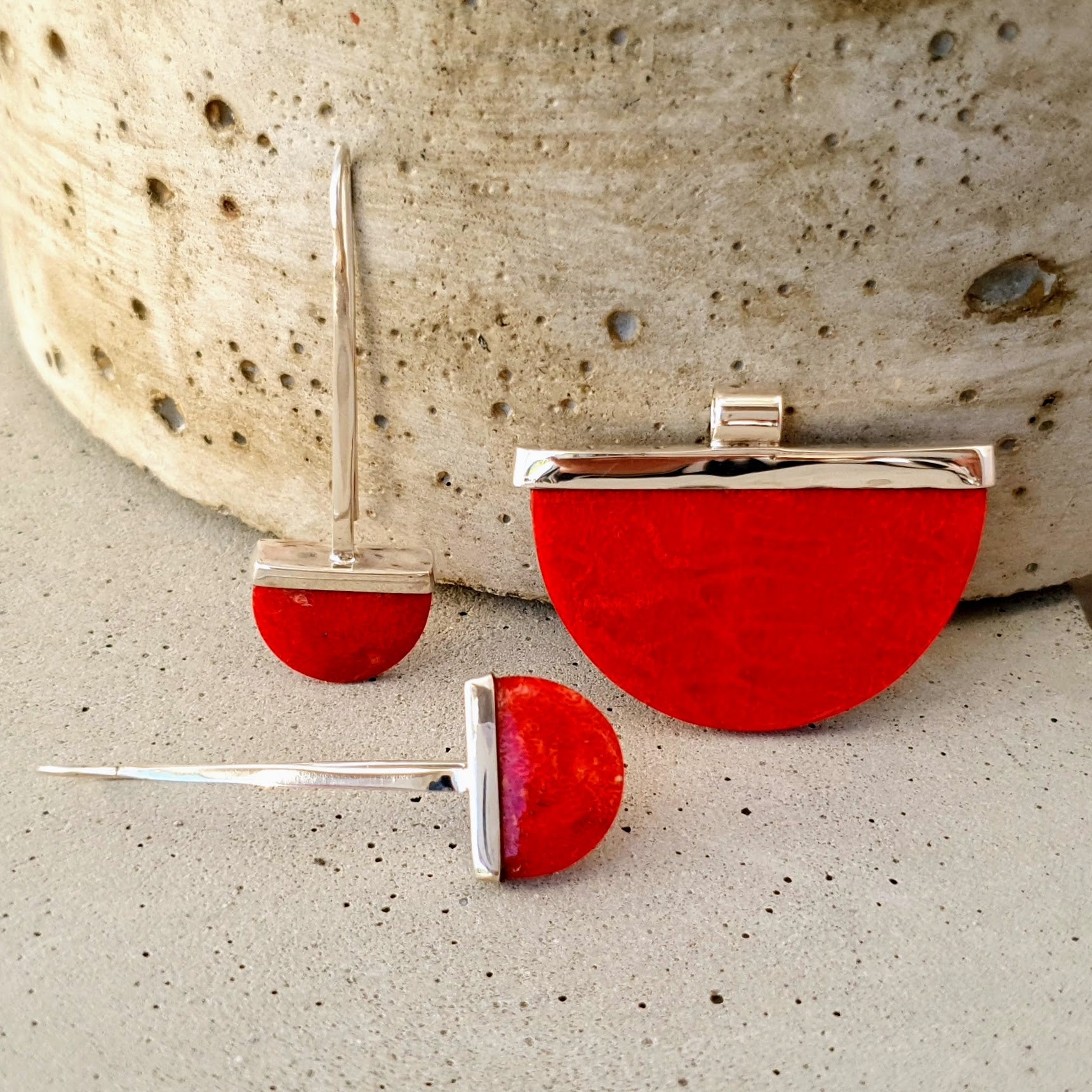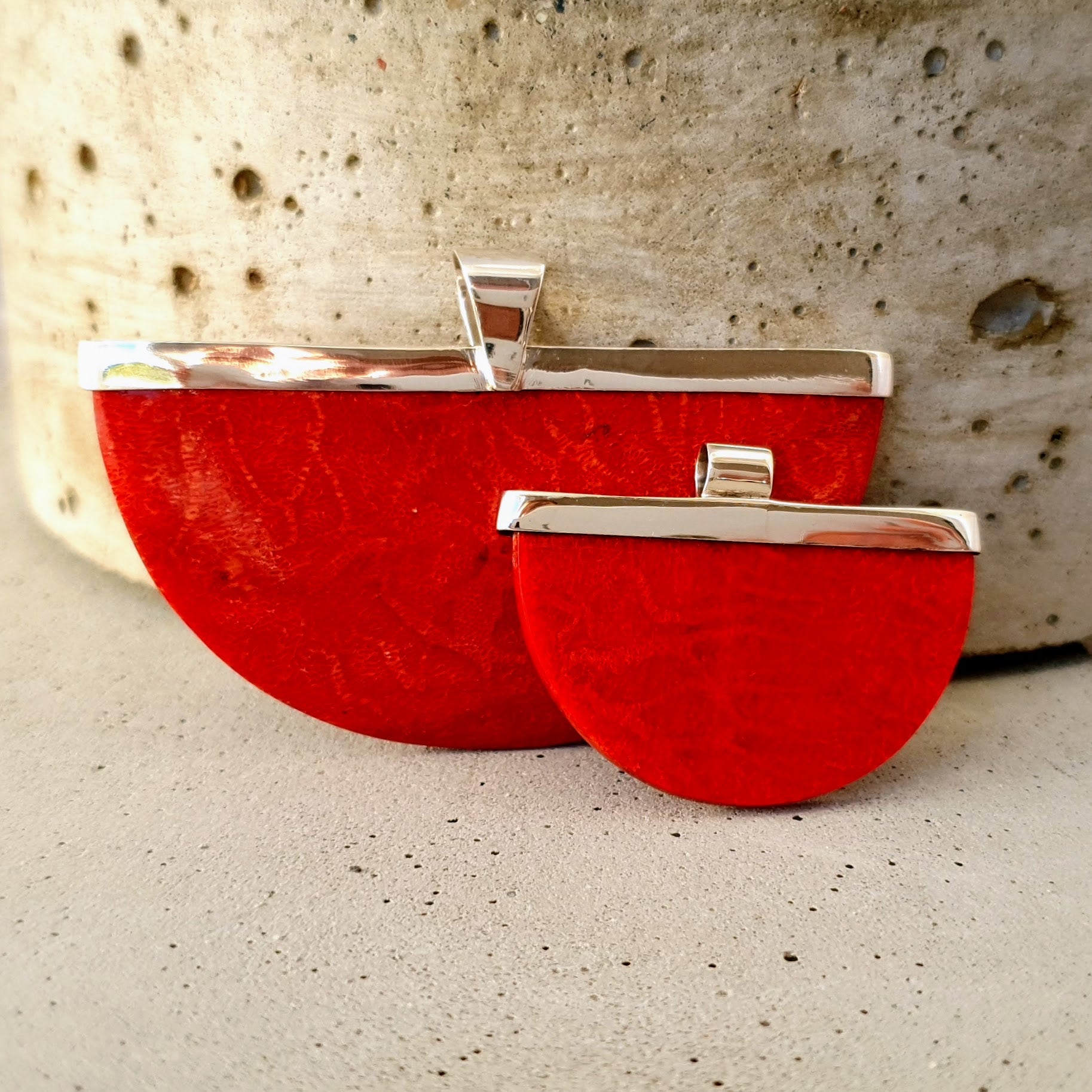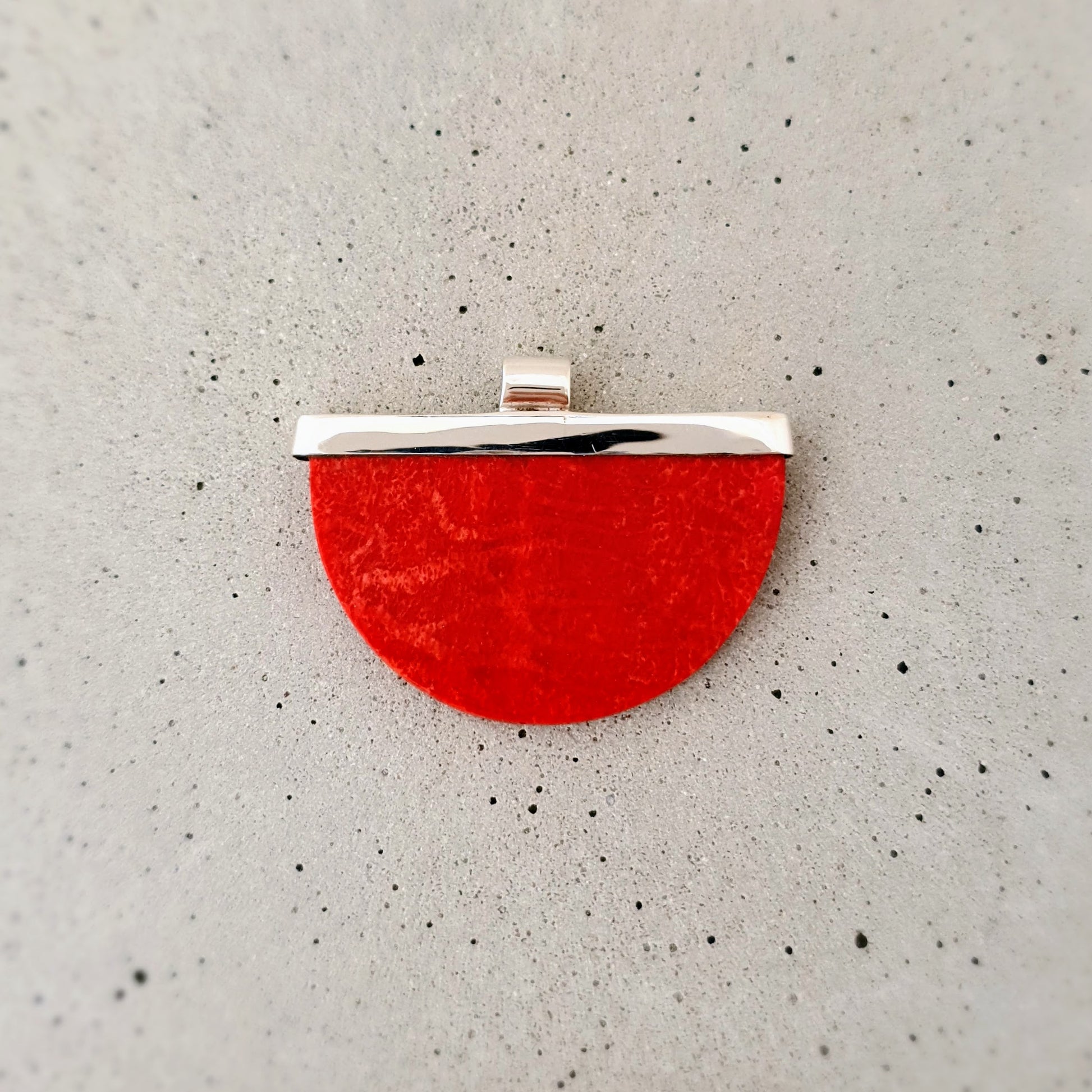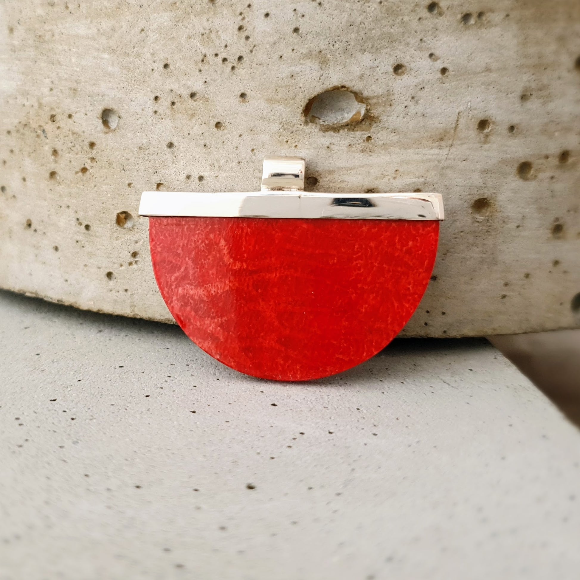 Halbrunder Kettenanhänger aus Sterlingsilber mit roter Schaumkoralle.