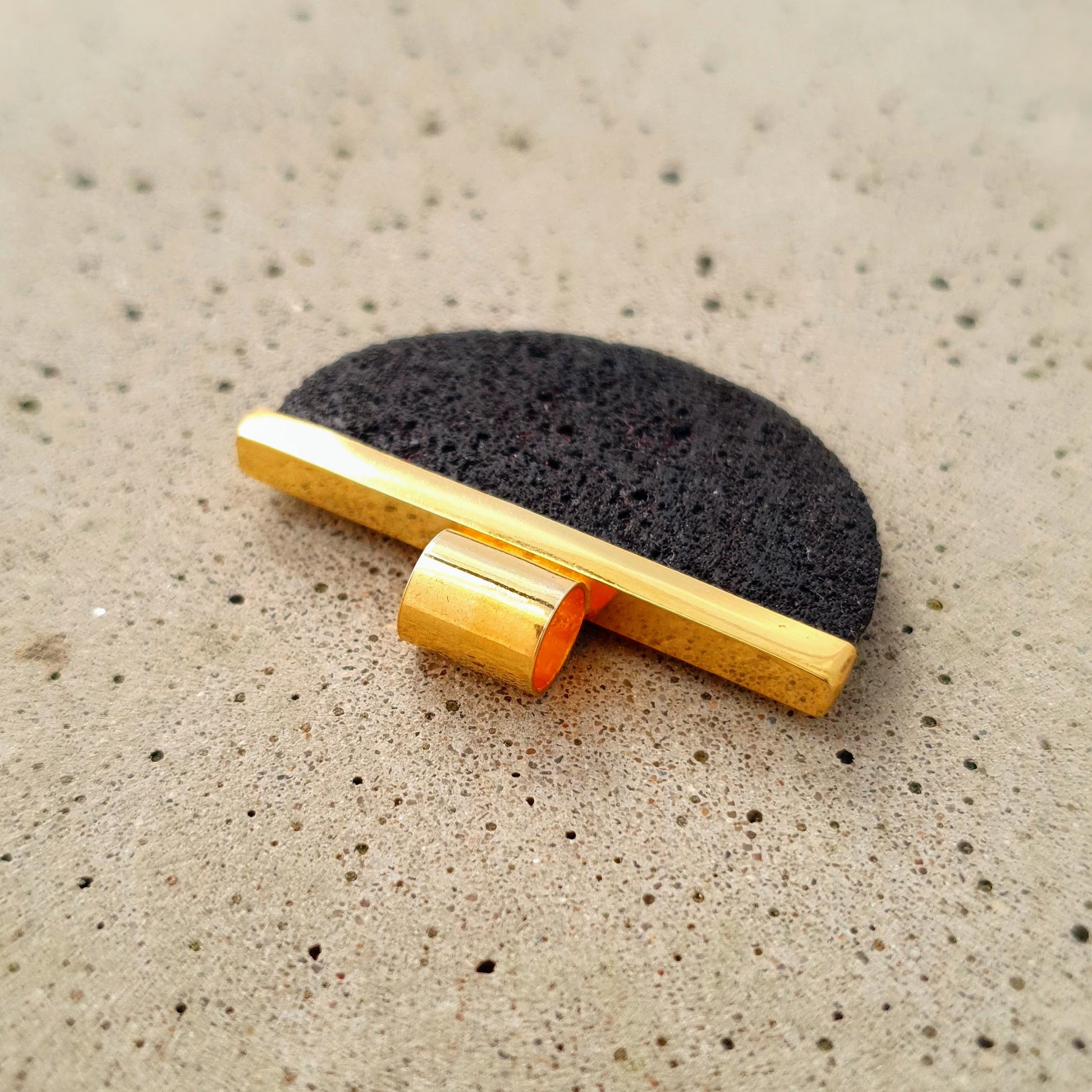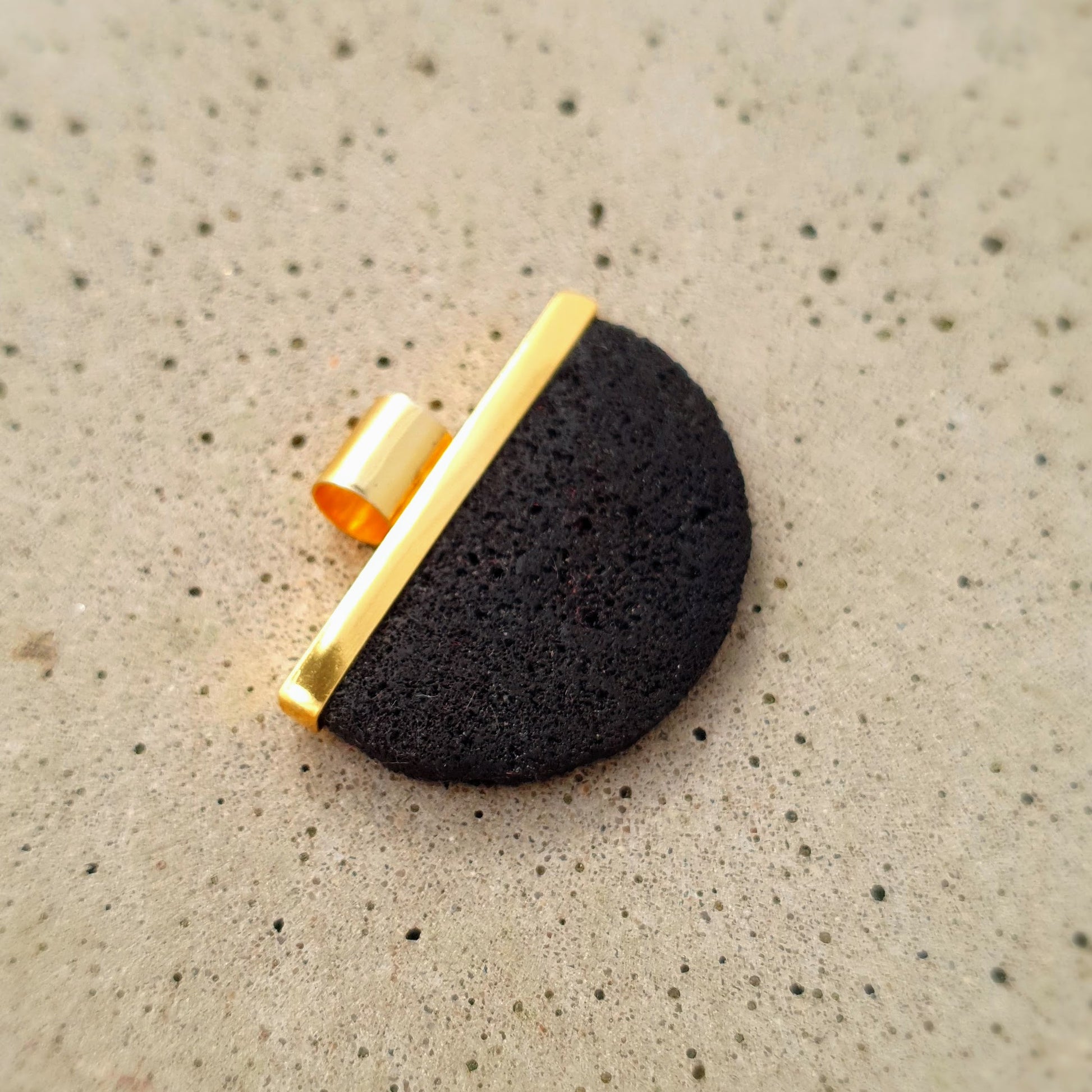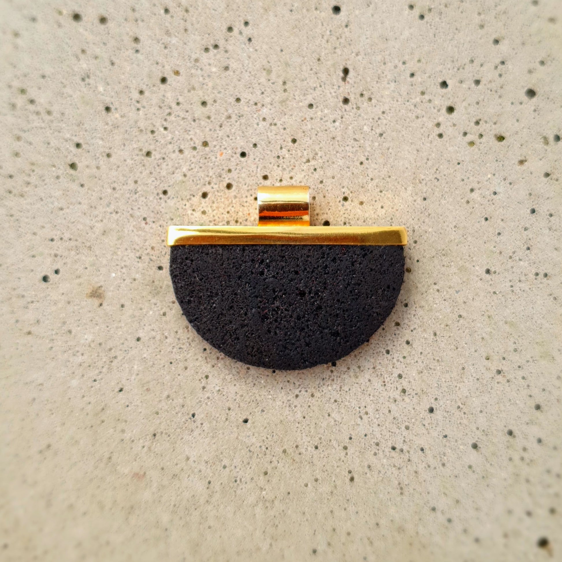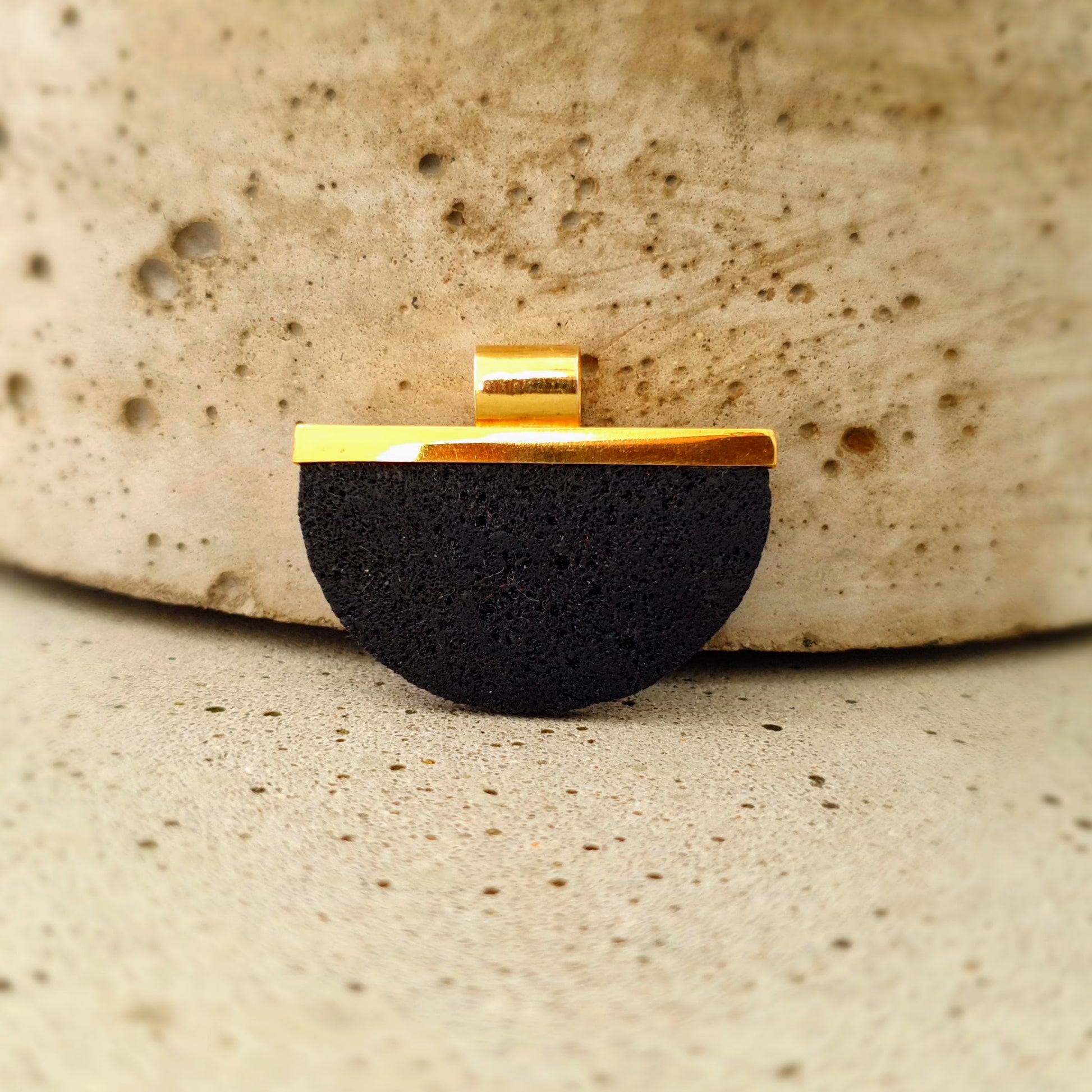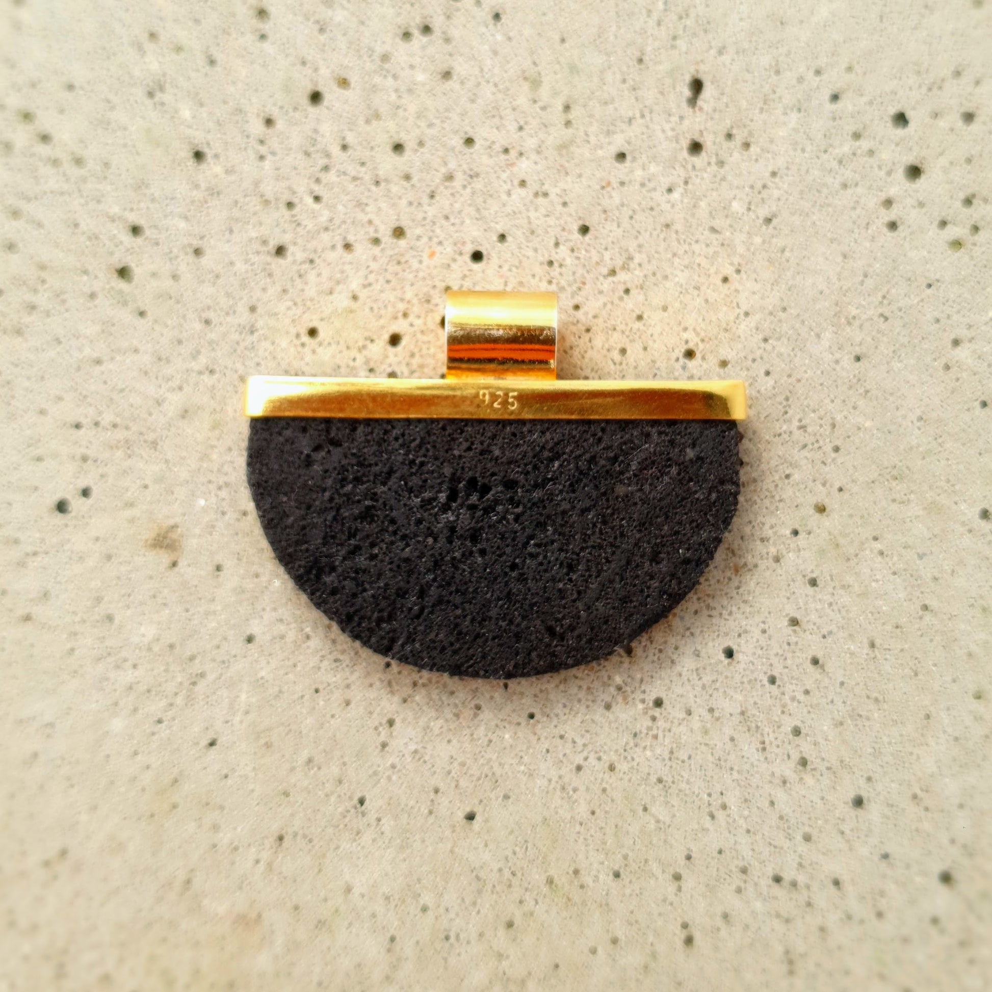 Kleiner halbrunder Anhänger aus vergoldetem Sterlingsilber mit schwarzem Lavastein.