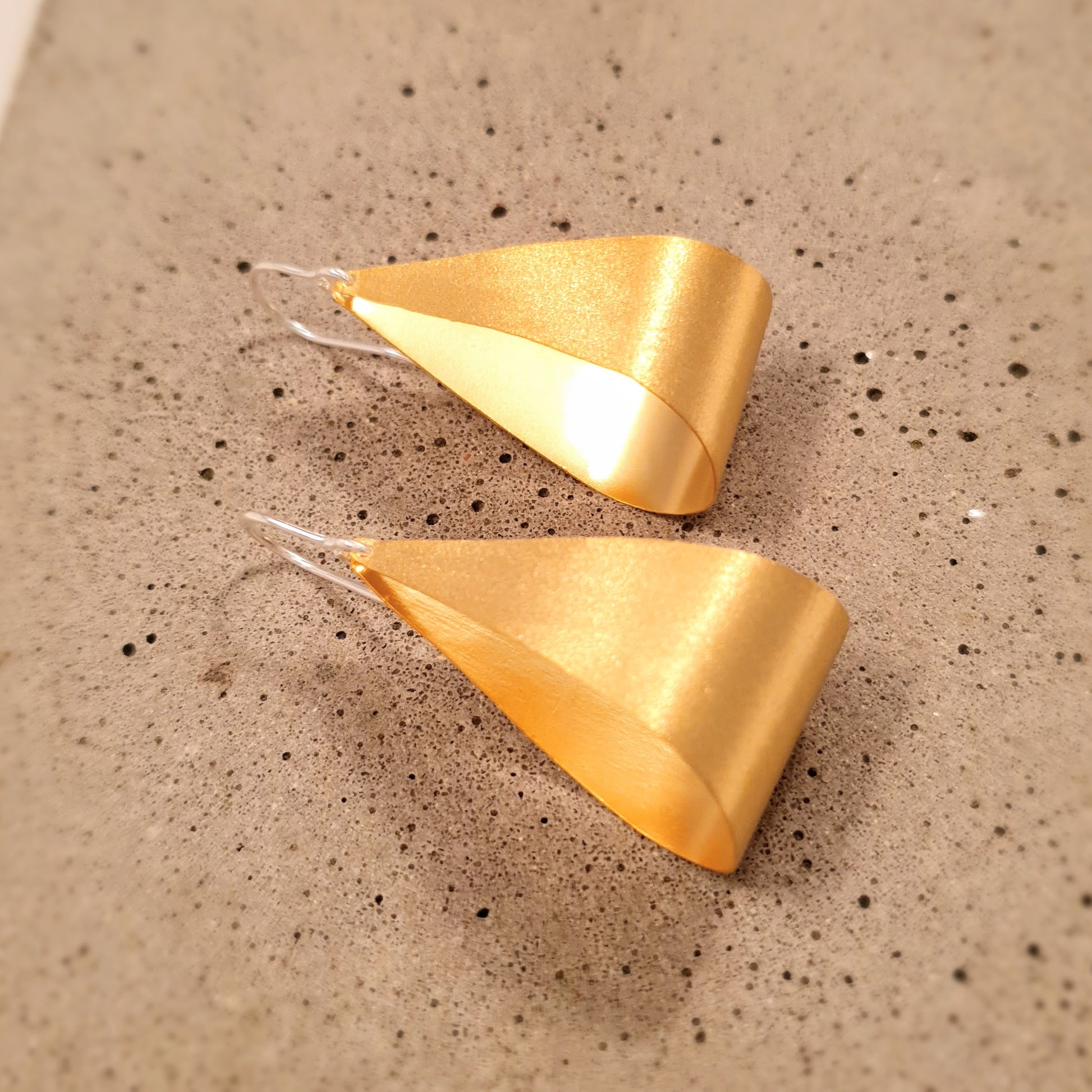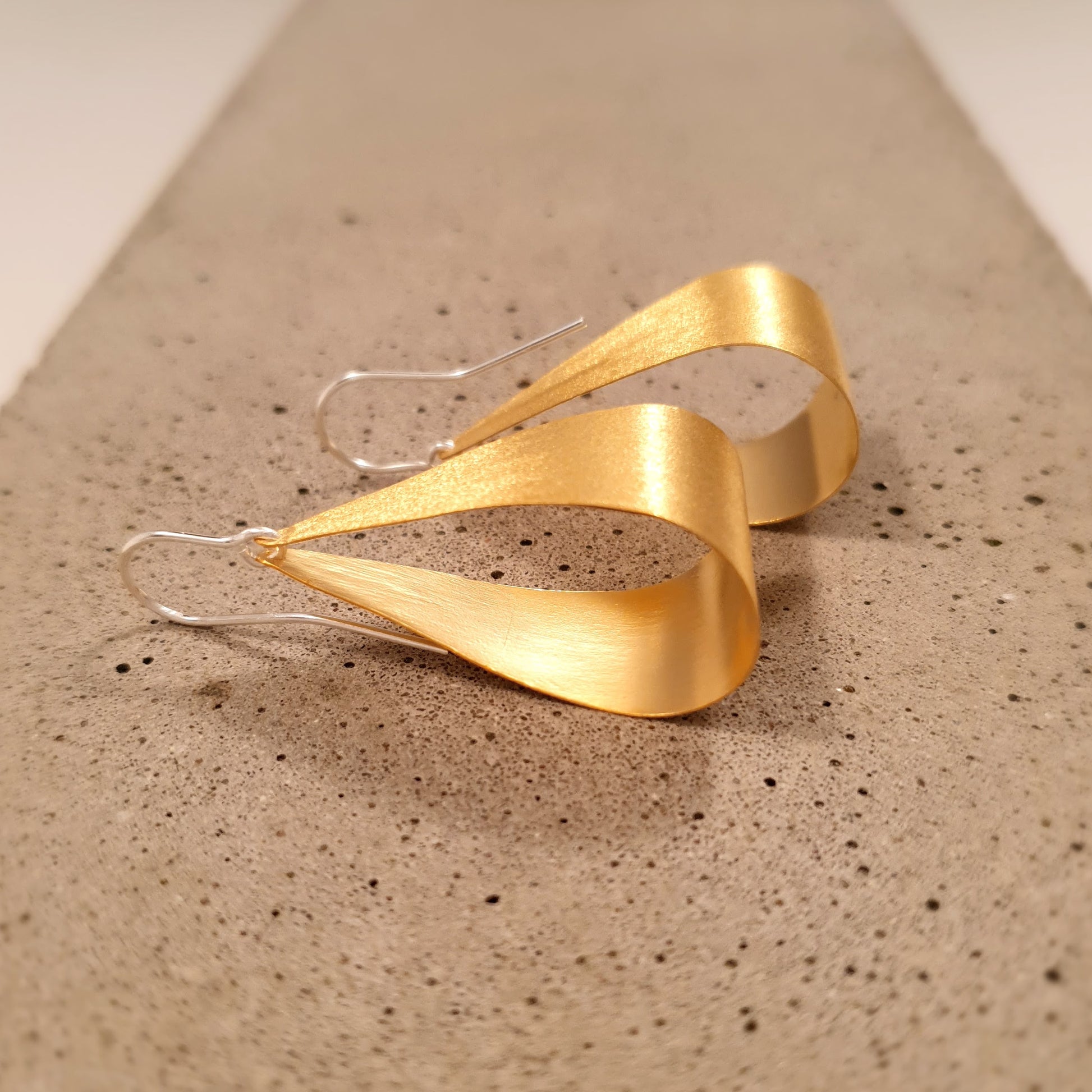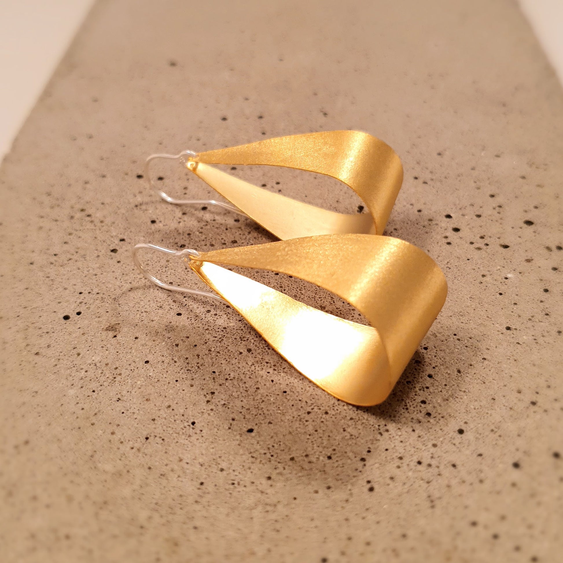 Large curved earrings made of gold-plated and matted 925 sterling silver.