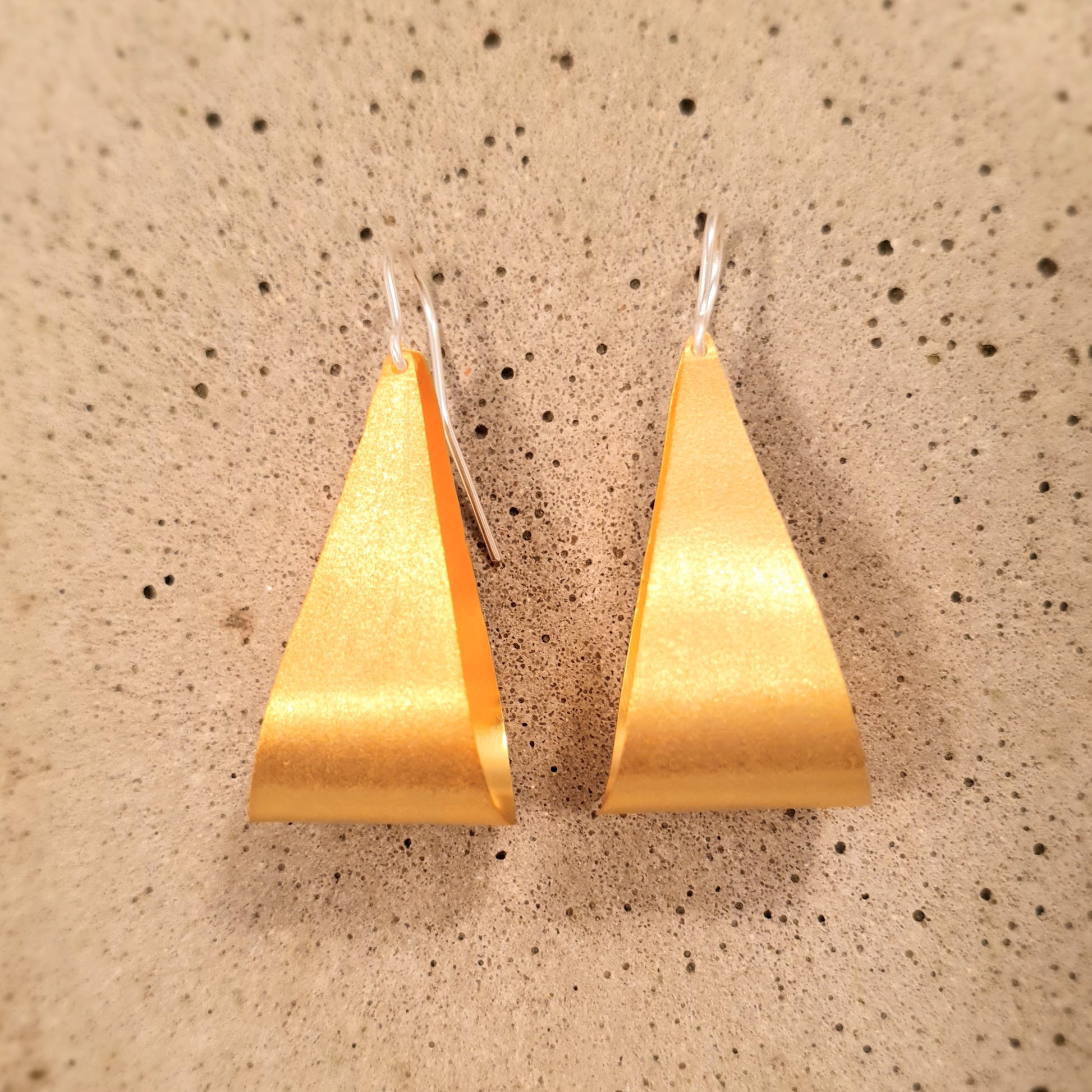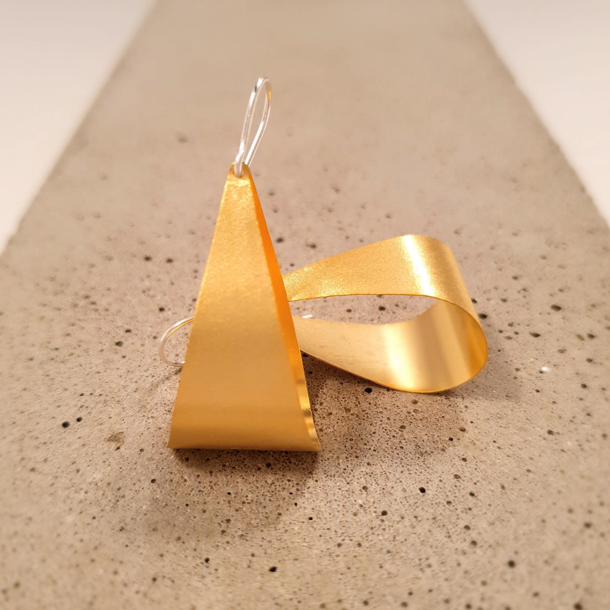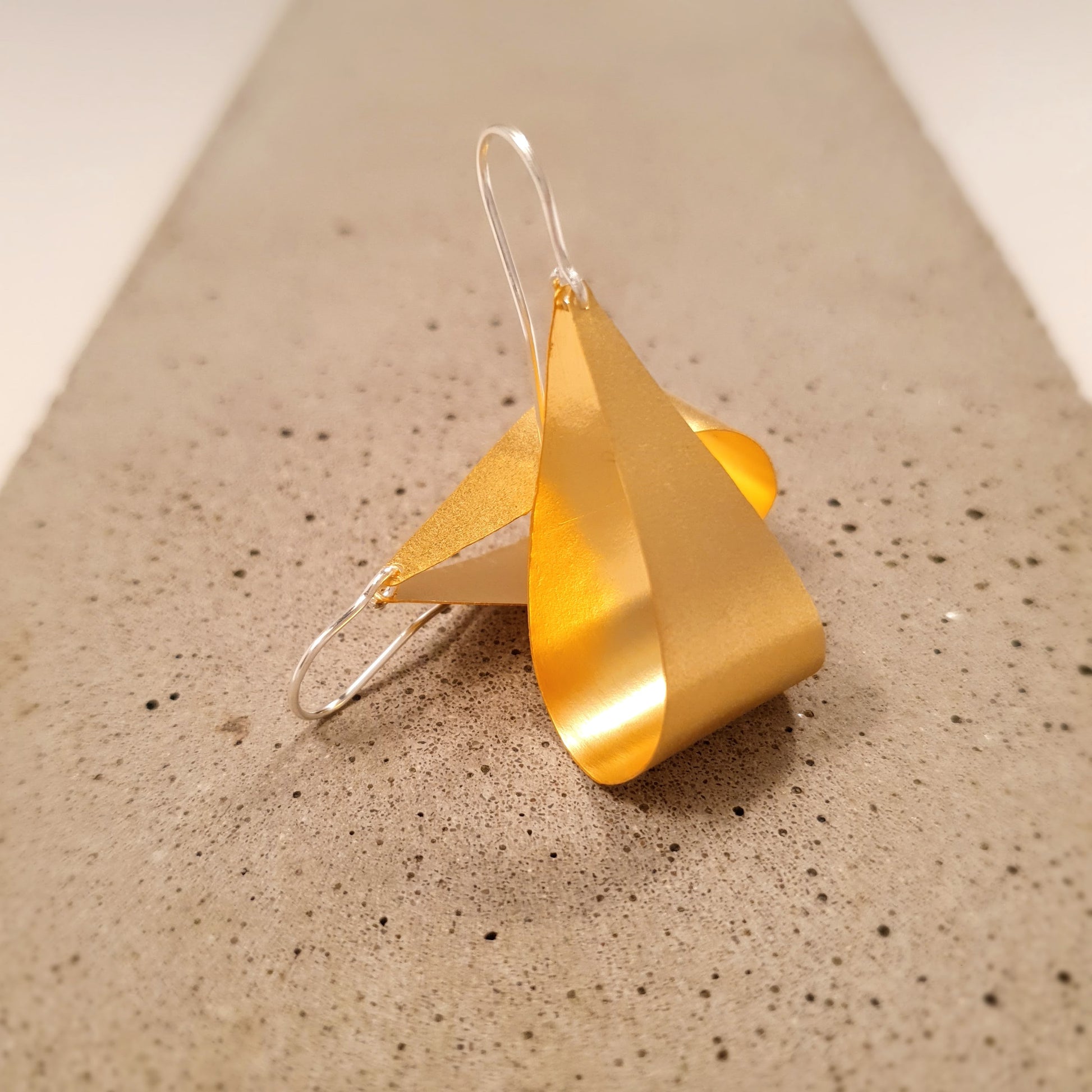 Large curved earrings made of gold-plated and matted 925 sterling silver.