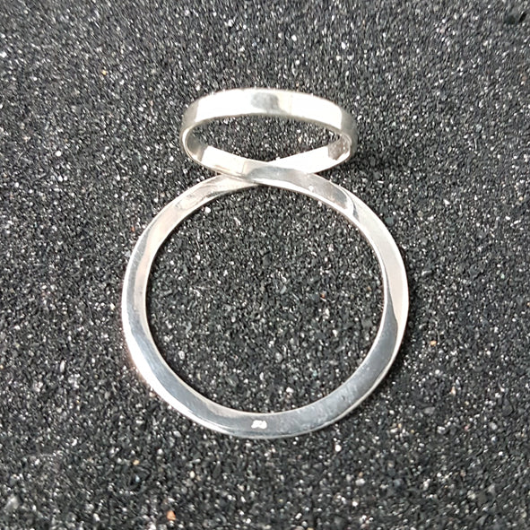 Geometric round ring made of matt 925 sterling silver and size-adjustable ring band.