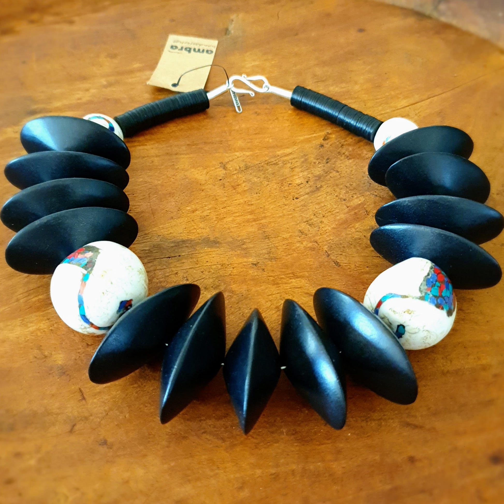 Ebony (Africa)/ Naga Conch Shells (Nepal)/ Bakelite (Africa)