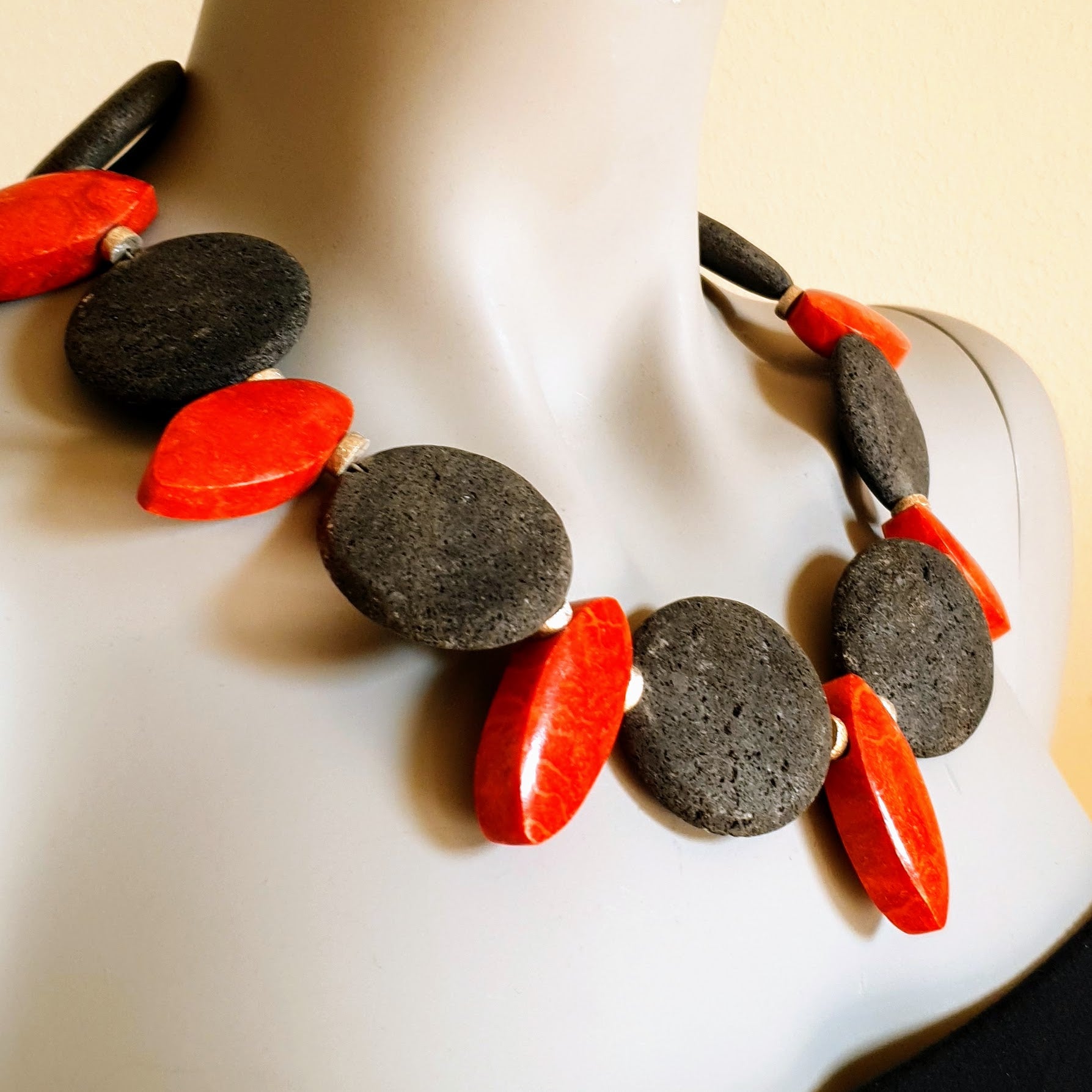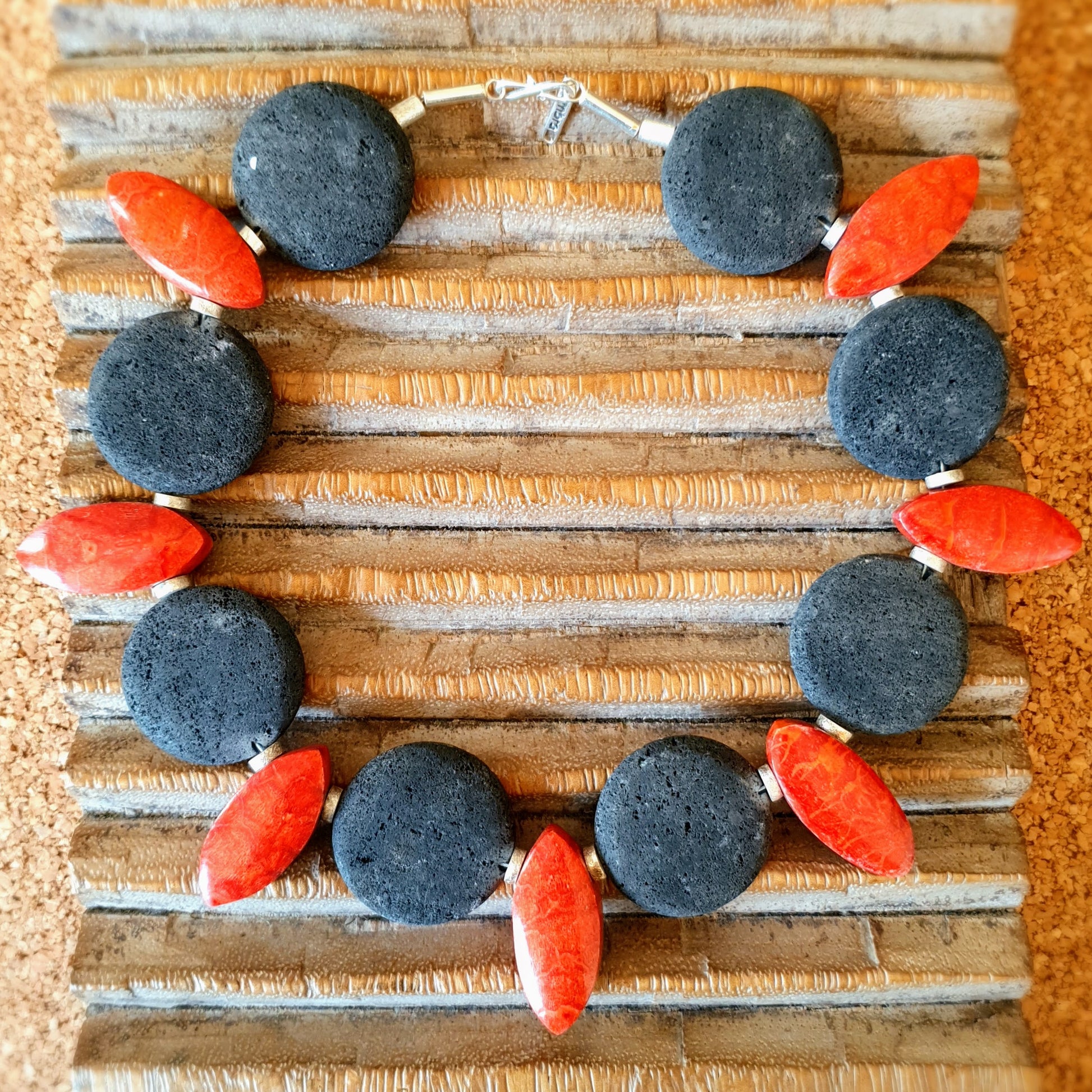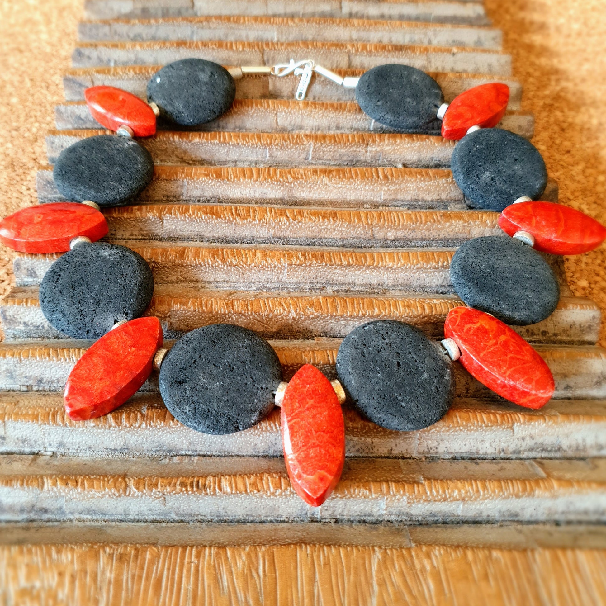 Necklace | Foam coral | Lava | Matte silver