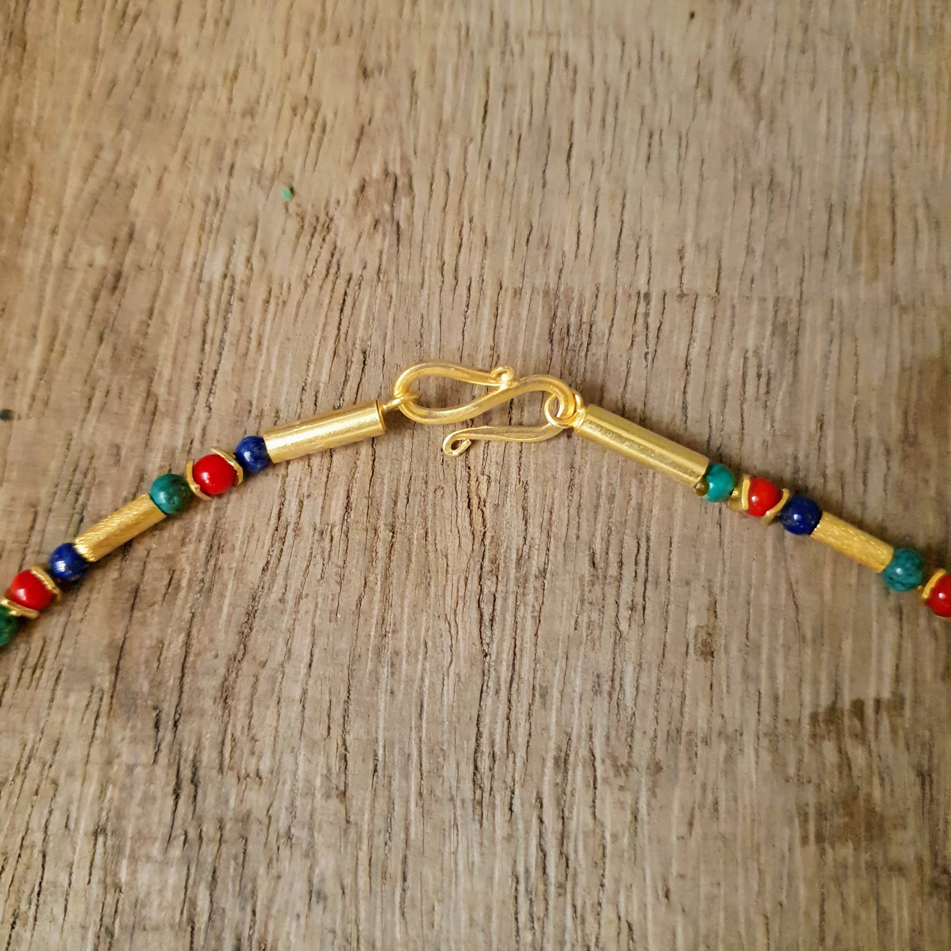 Halskette│Lapis│Türkis│Koralle│Vergoldetes Silber