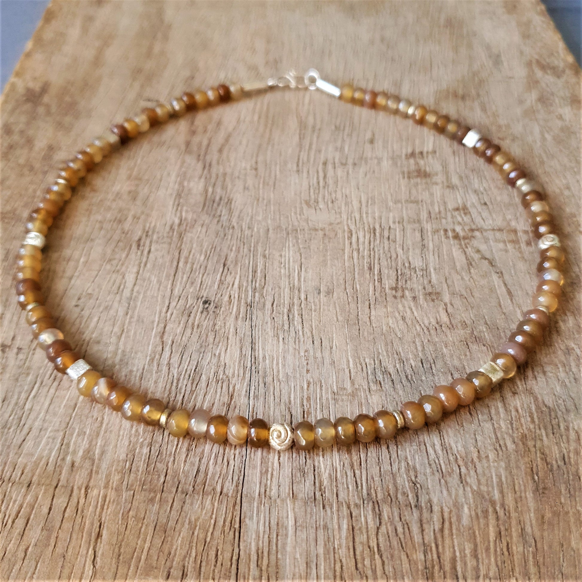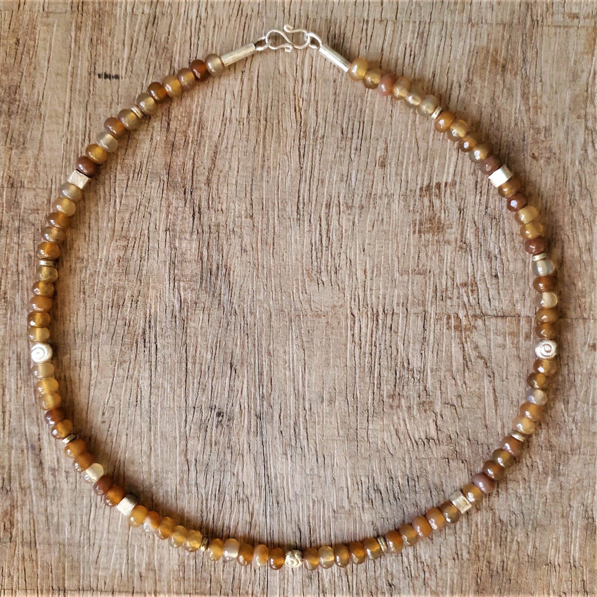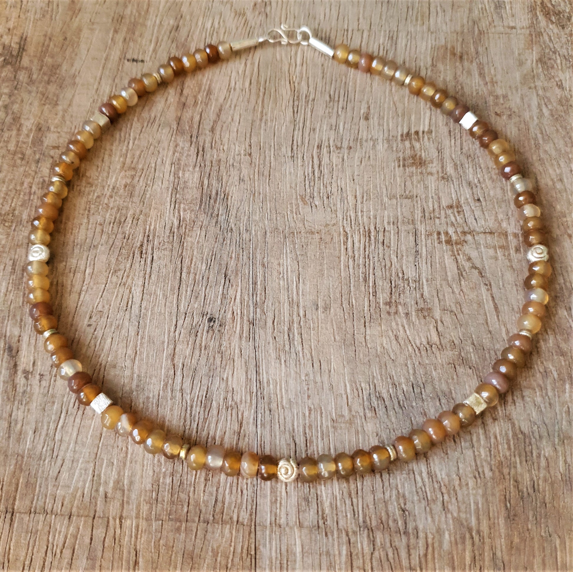 Handcrafted necklace with brown faceted smoky quartz stones and matted silver beads with silver clasp by ambra Schmuck.