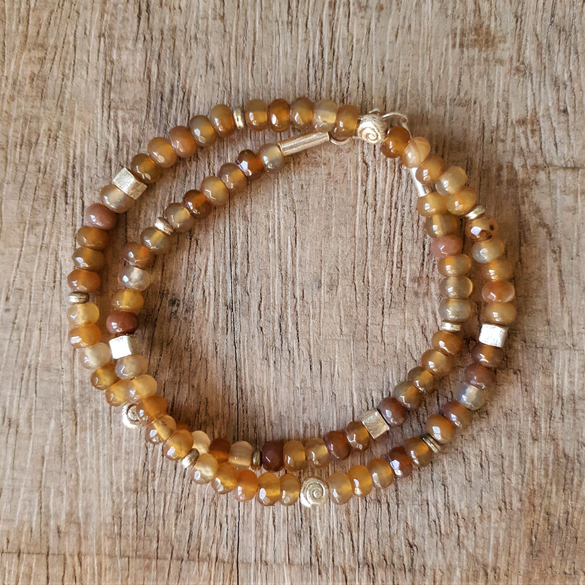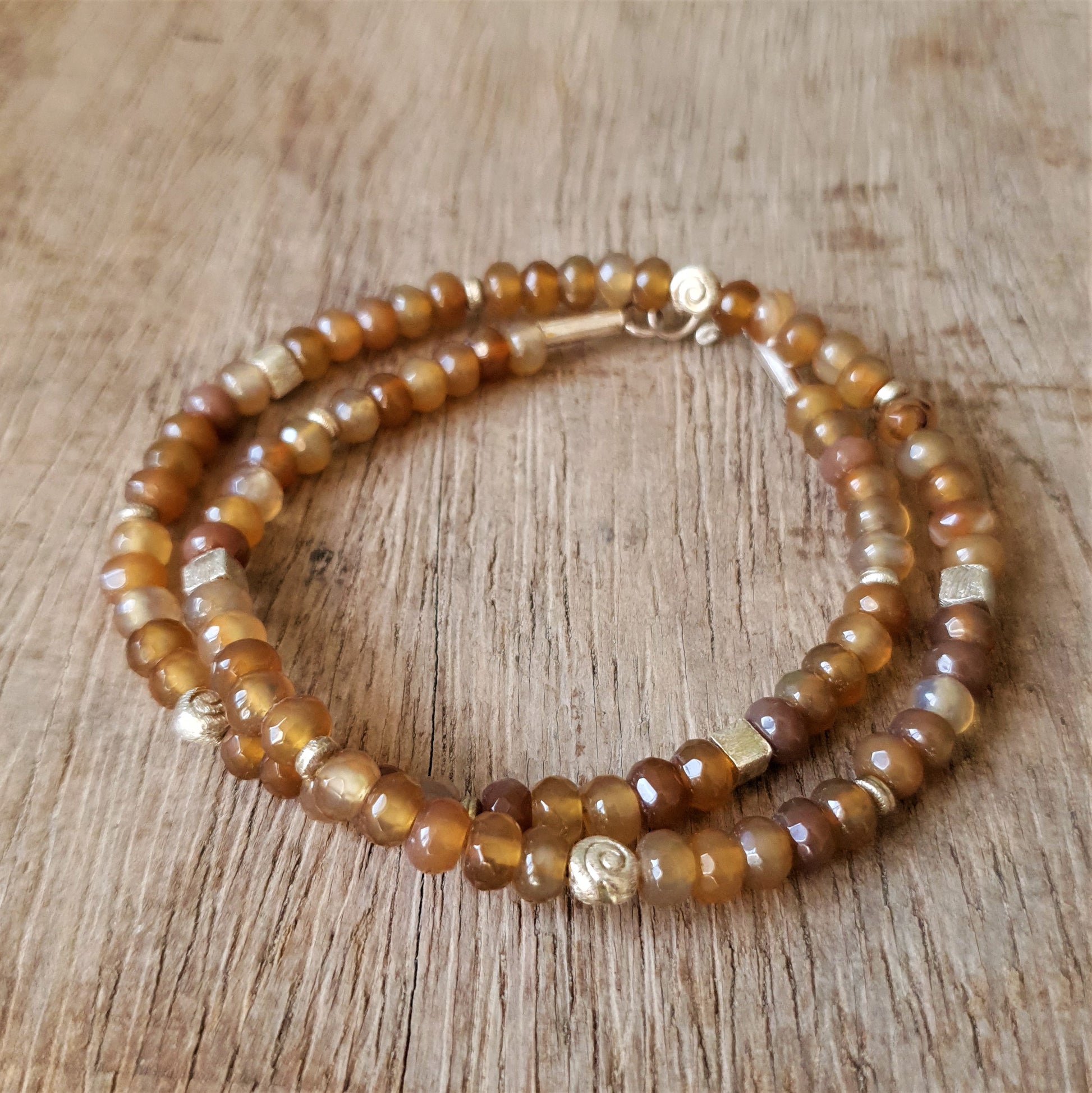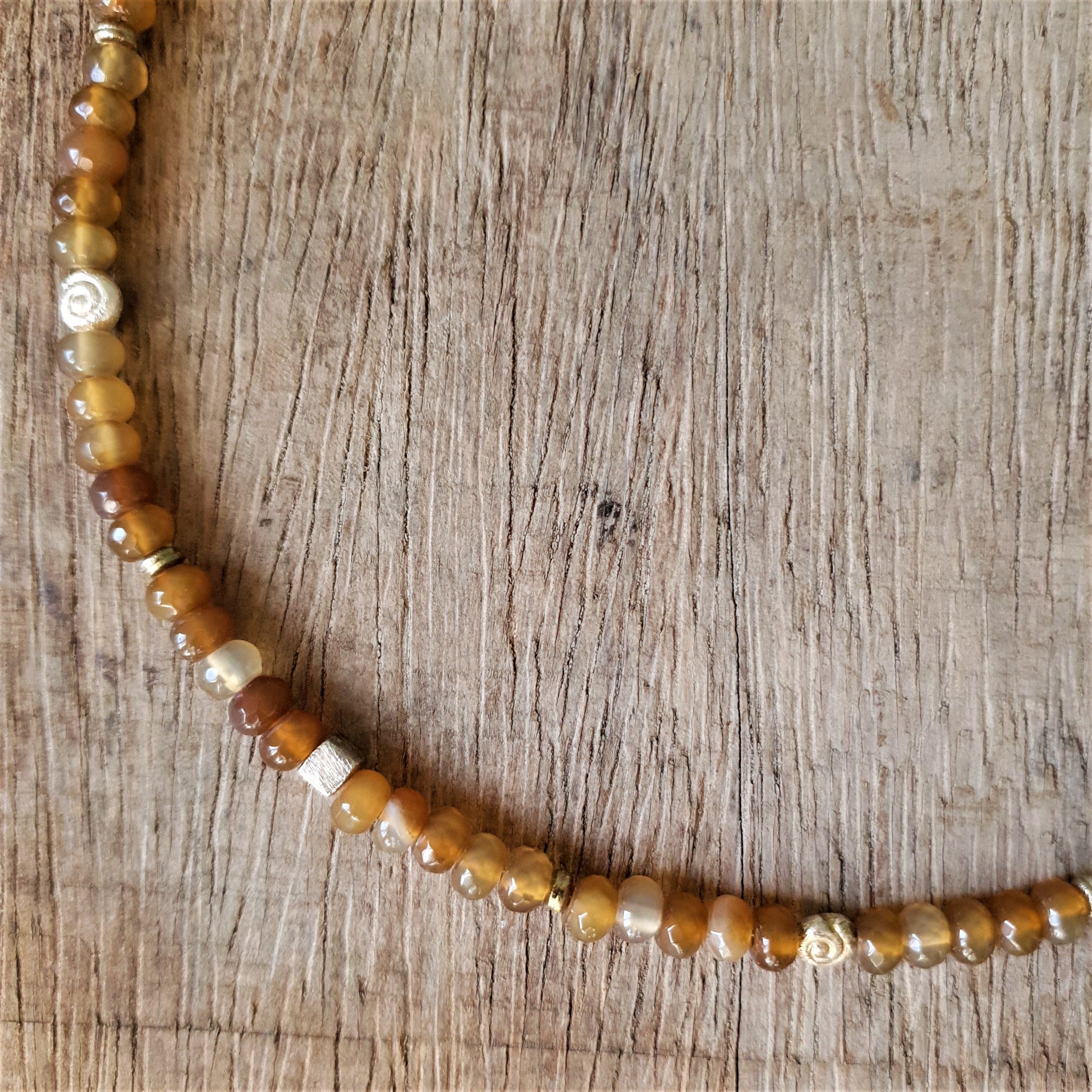 Handcrafted necklace with brown faceted smoky quartz stones and matted silver beads with silver clasp by ambra Schmuck.