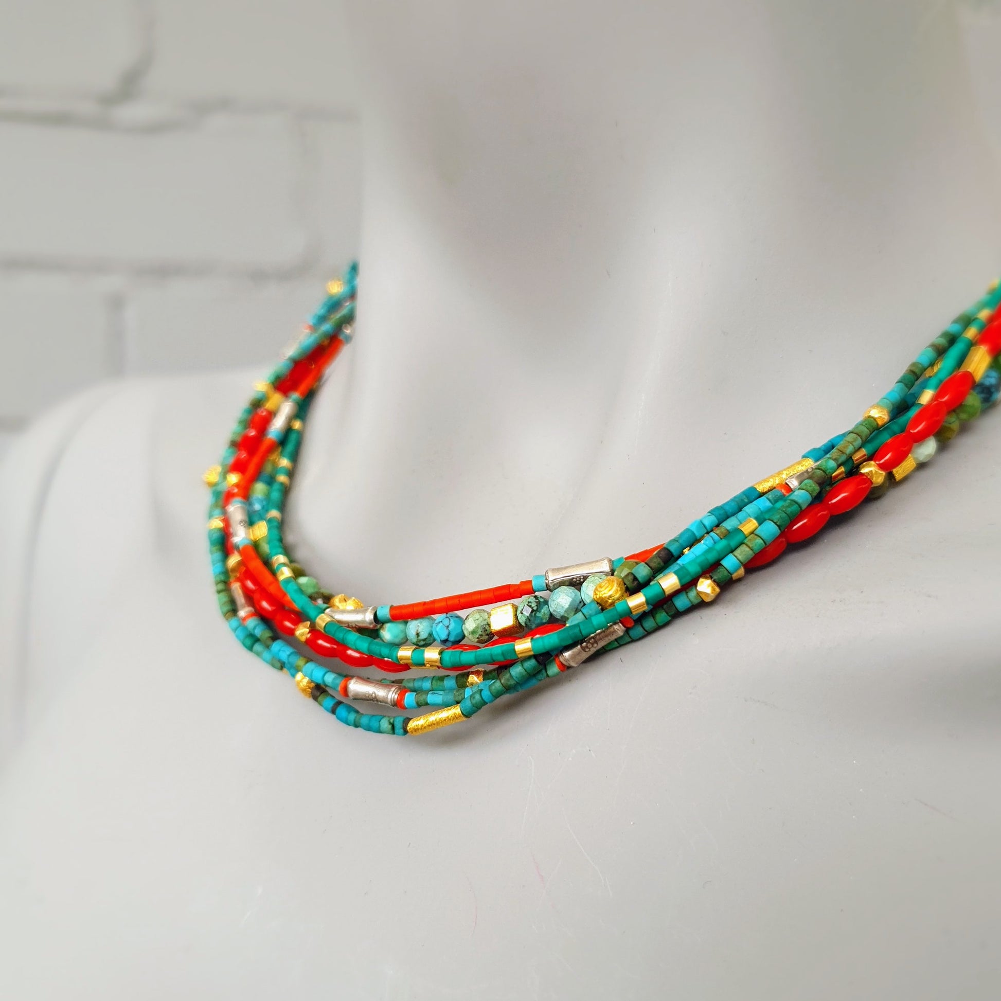 Necklace | Turquoise | Coral | Burmese silver