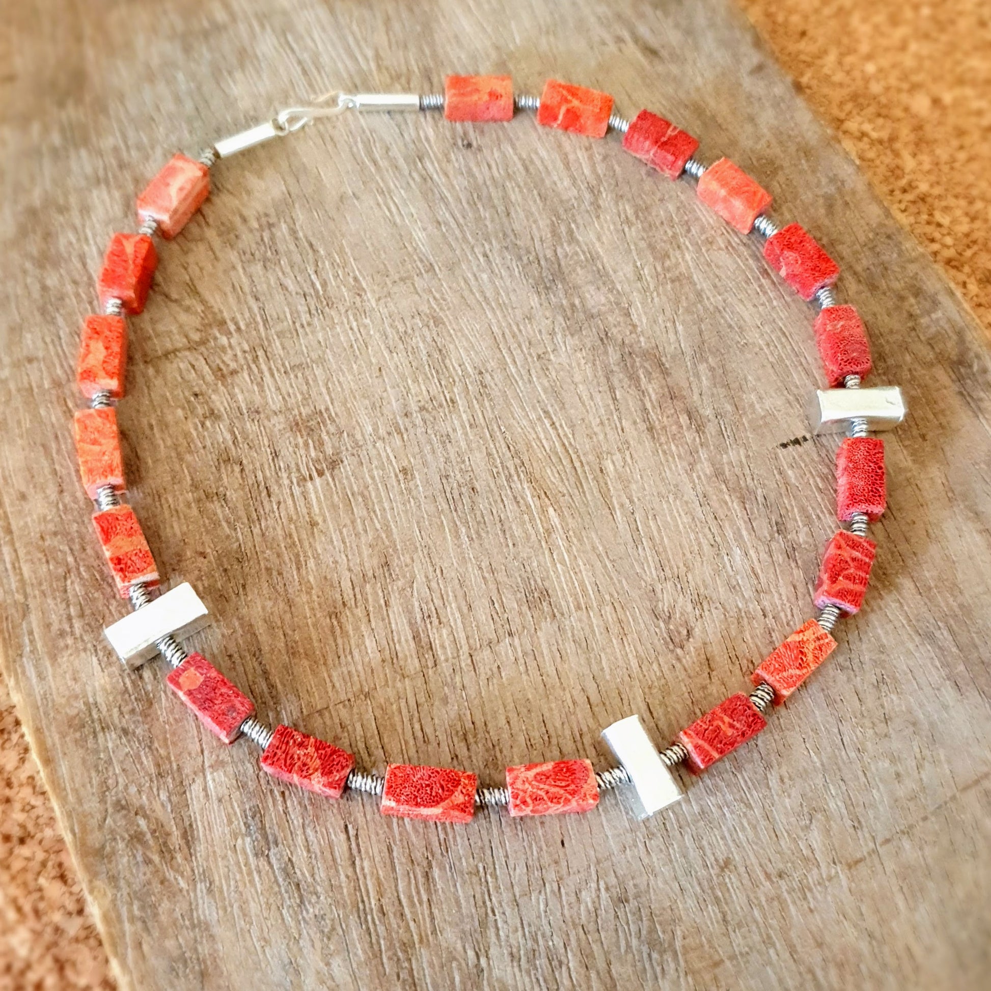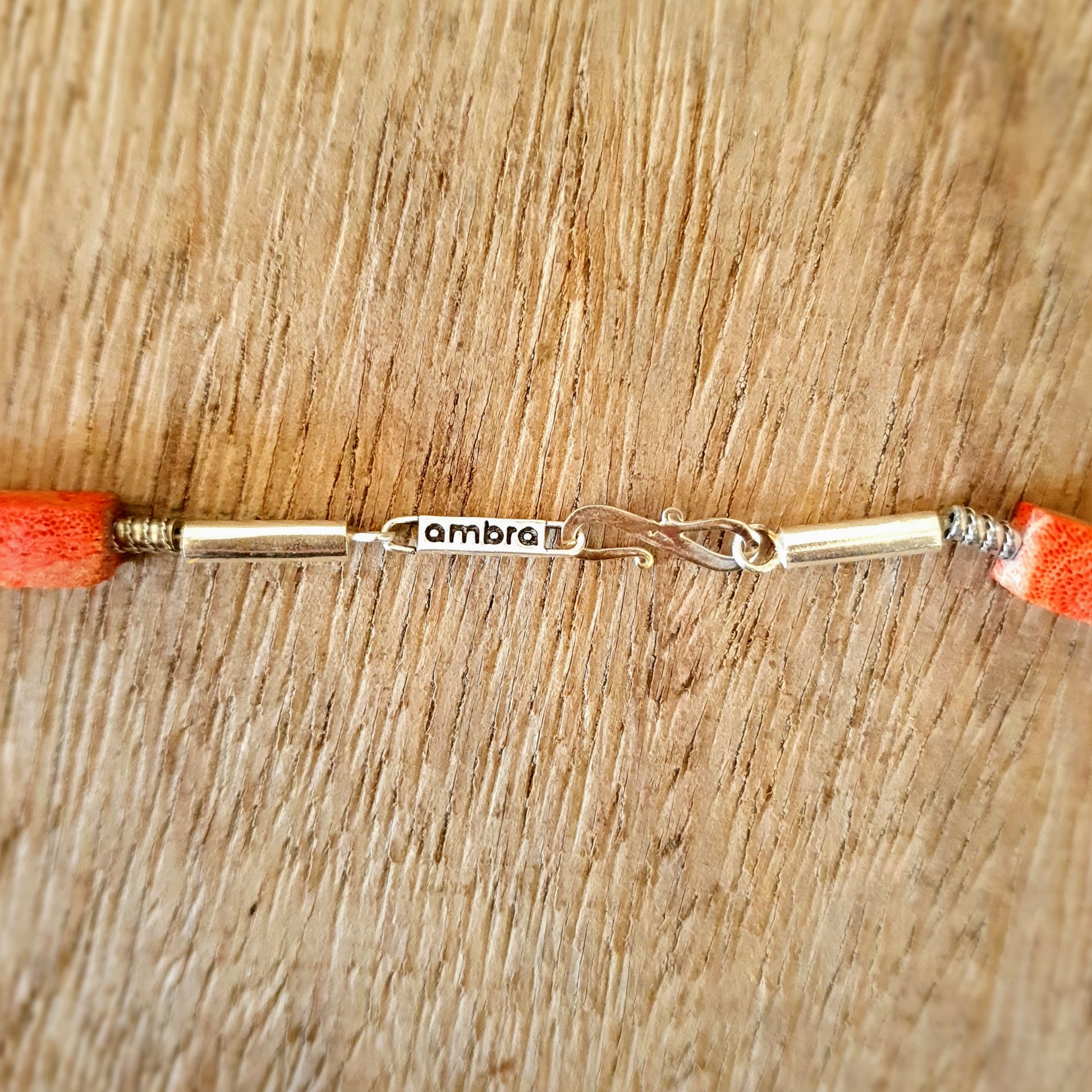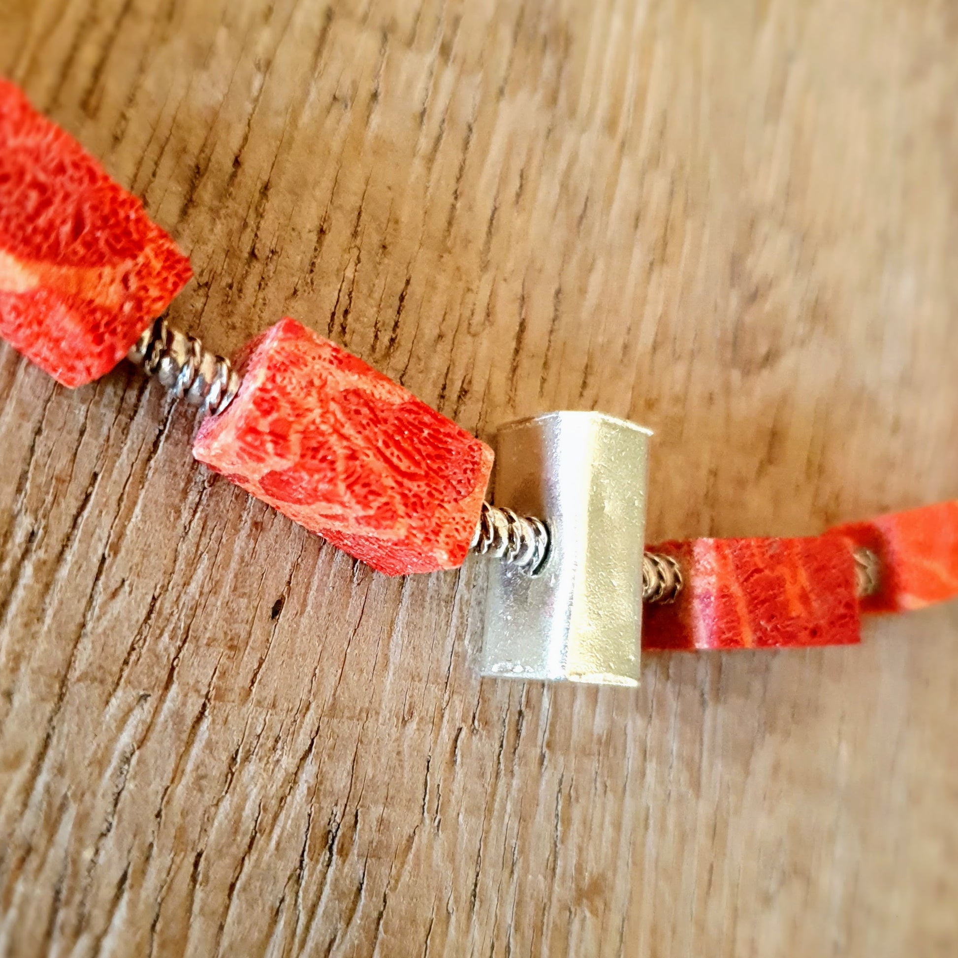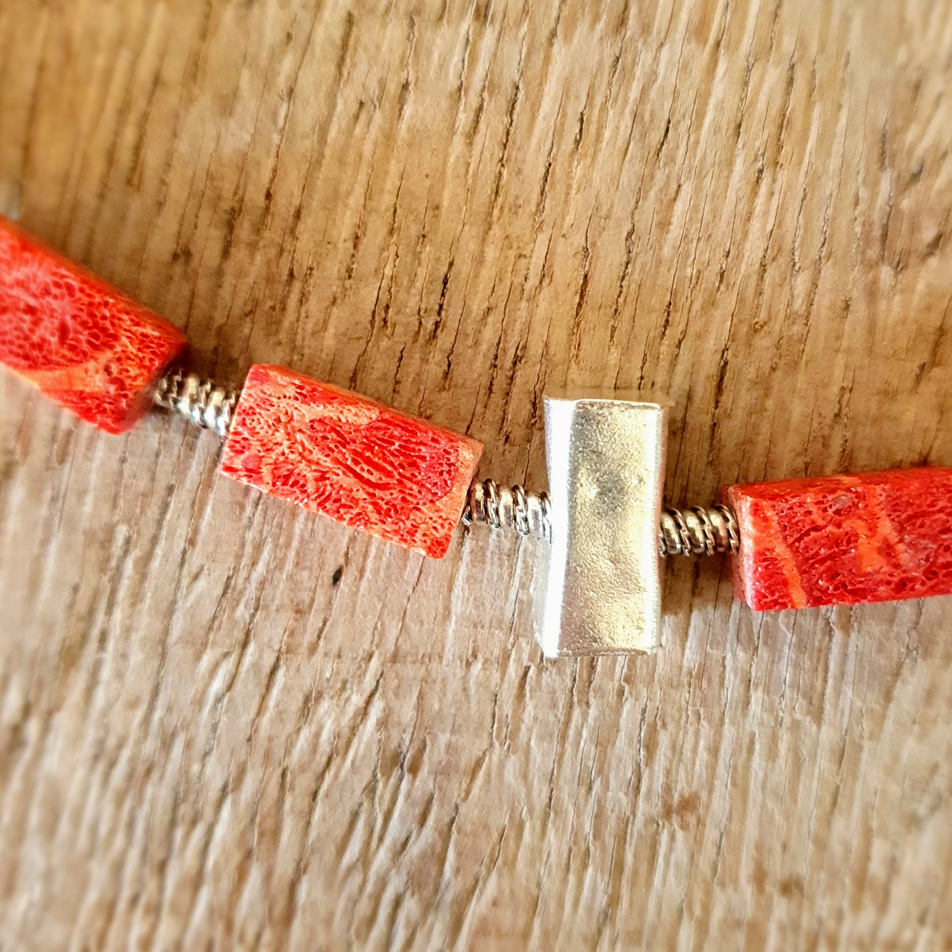 Handcrafted necklace with red foam coral and silver beads from Burma and Indonesia with silver clasp by ambra Schmuck.