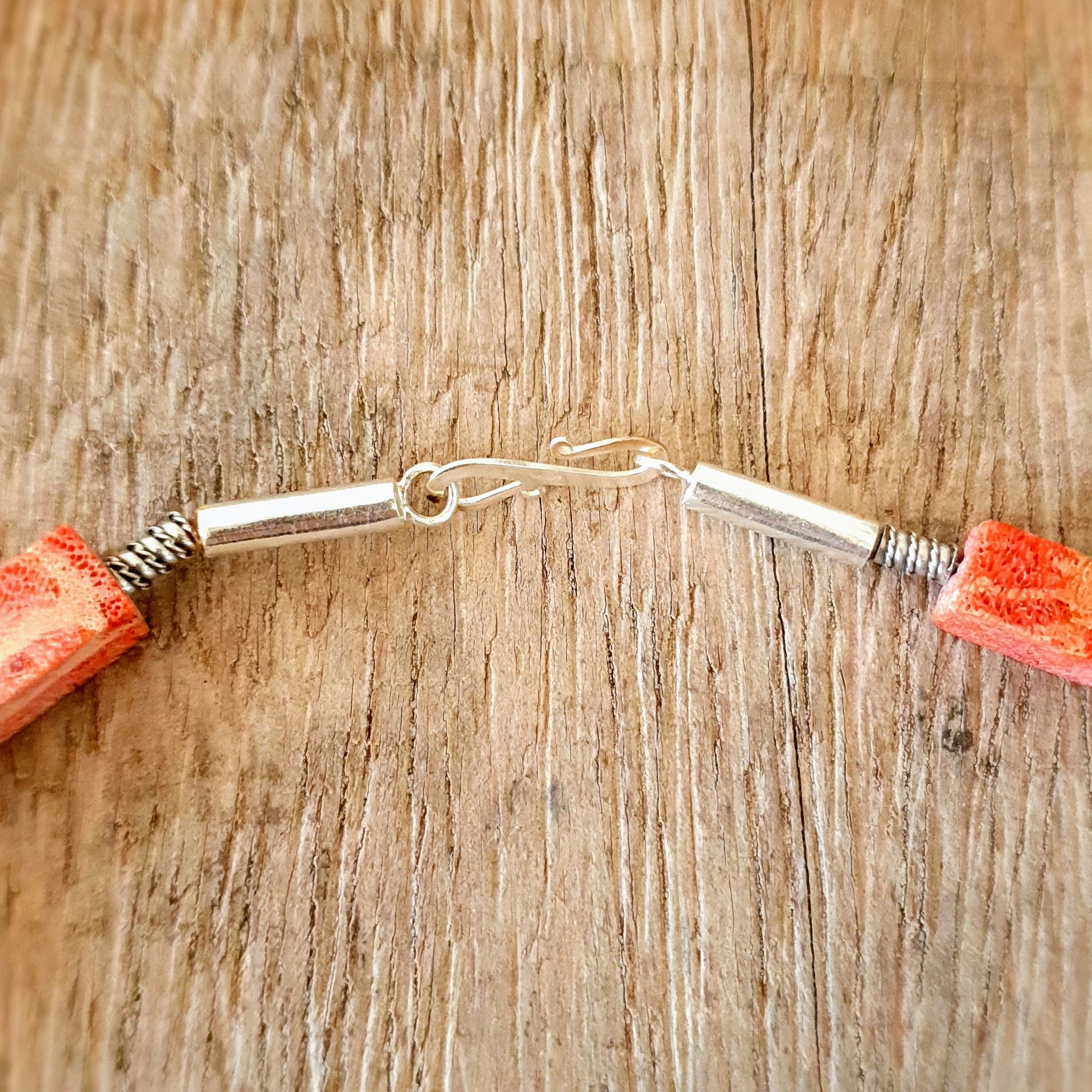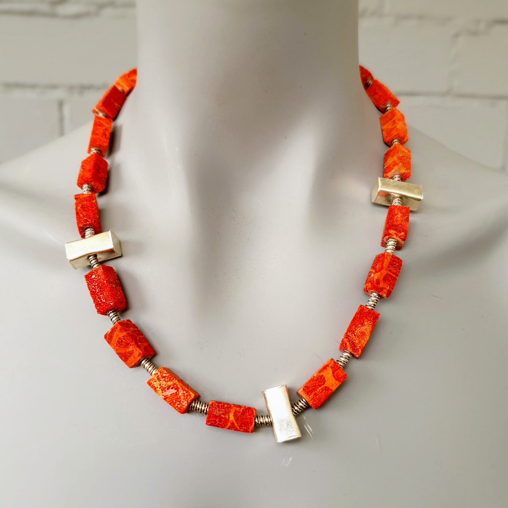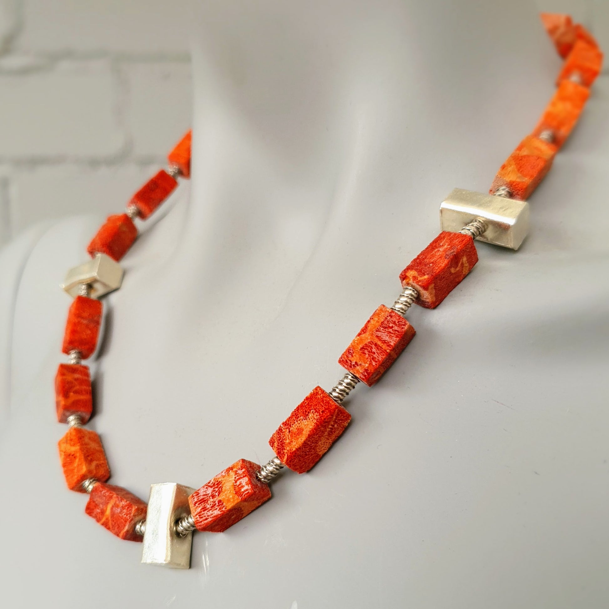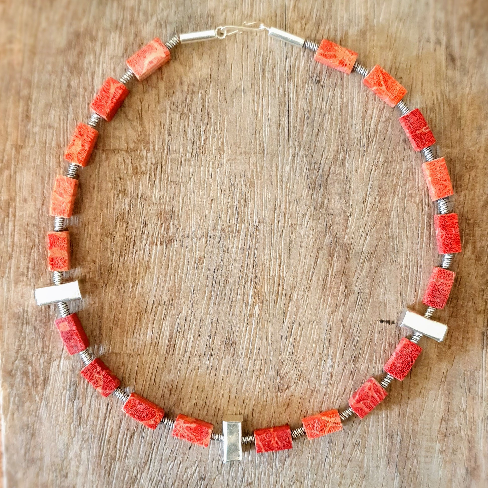 Handcrafted necklace with red foam coral and silver beads from Burma and Indonesia with silver clasp by ambra Schmuck.