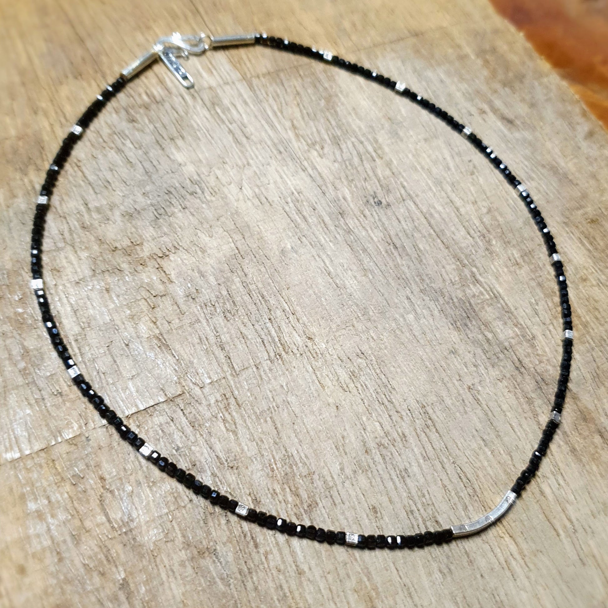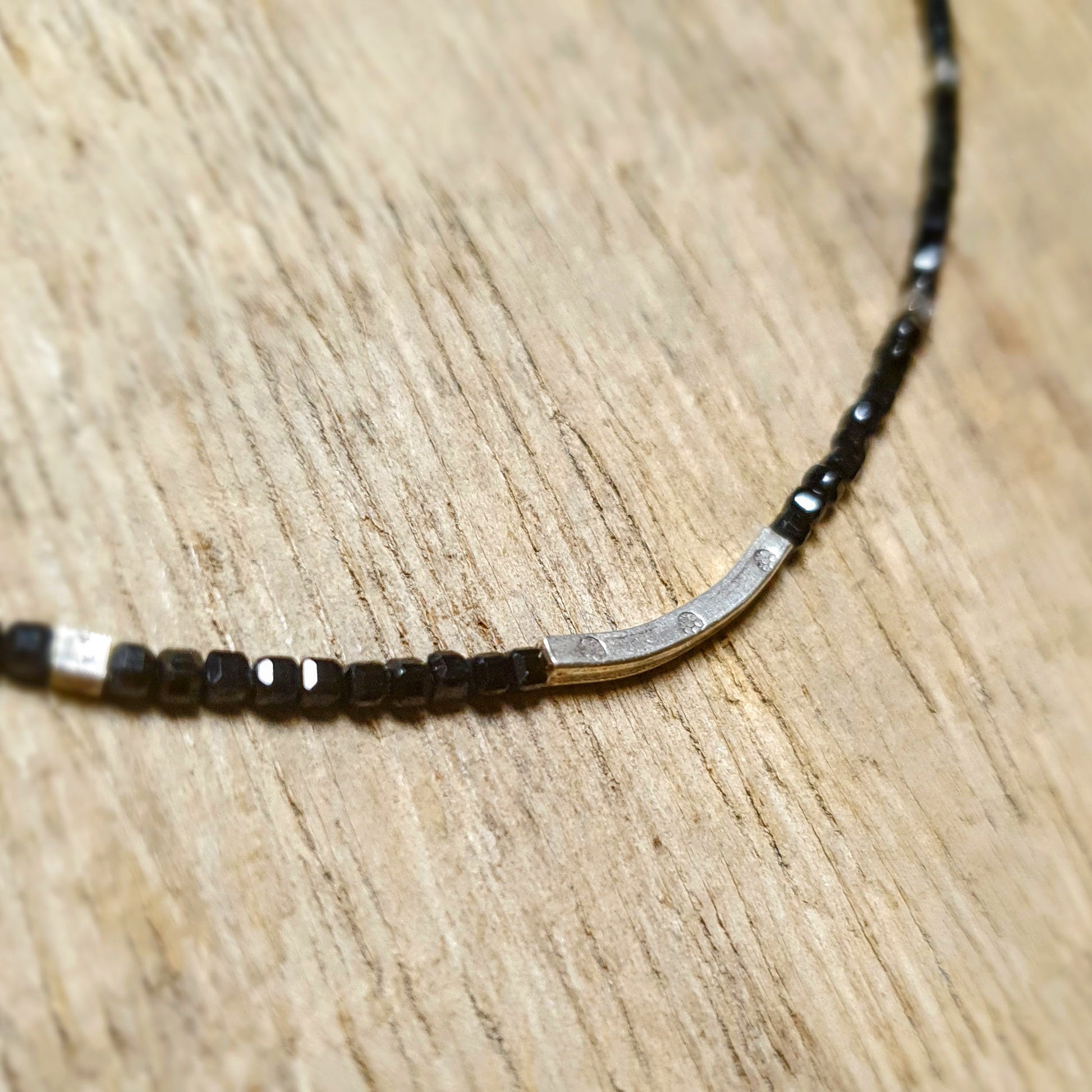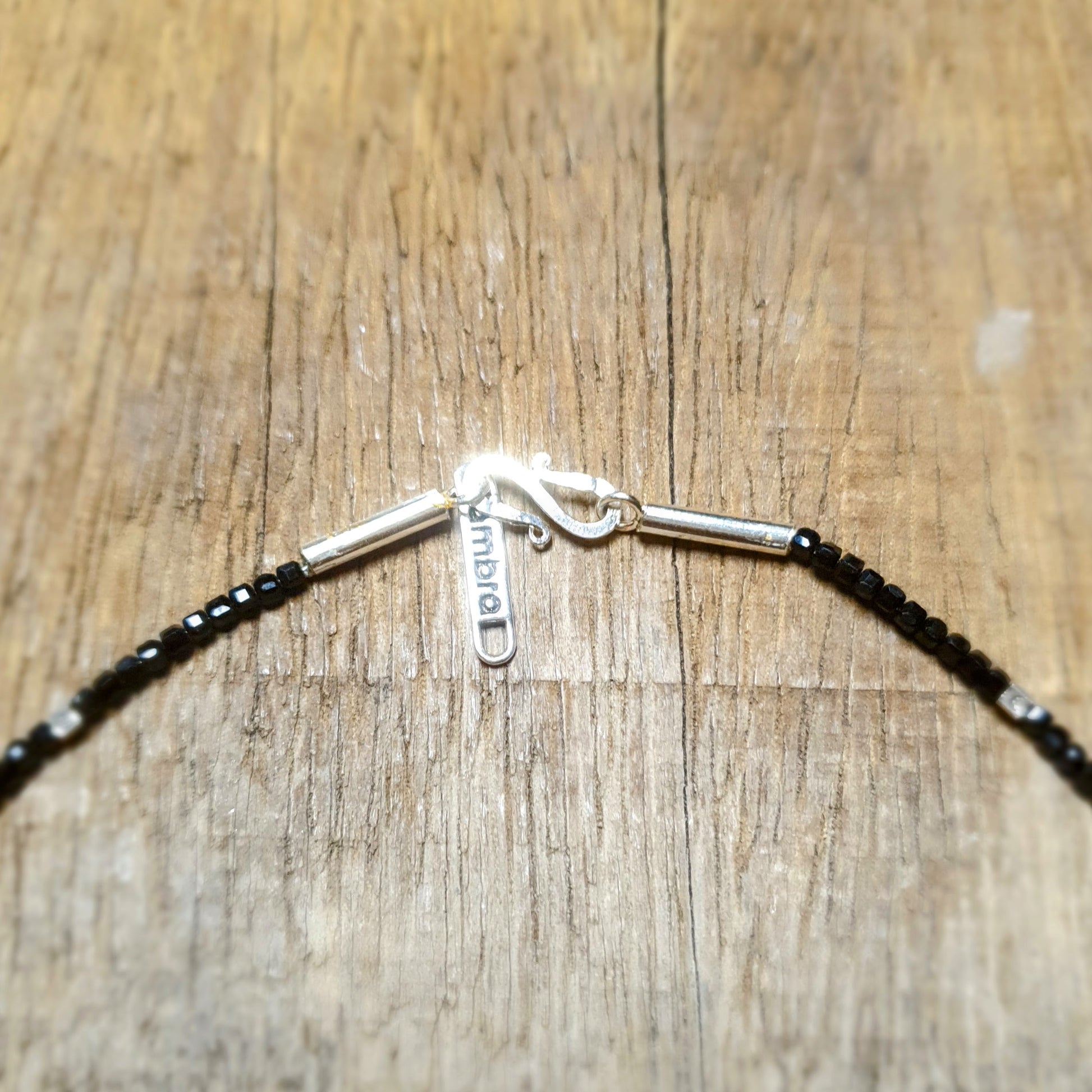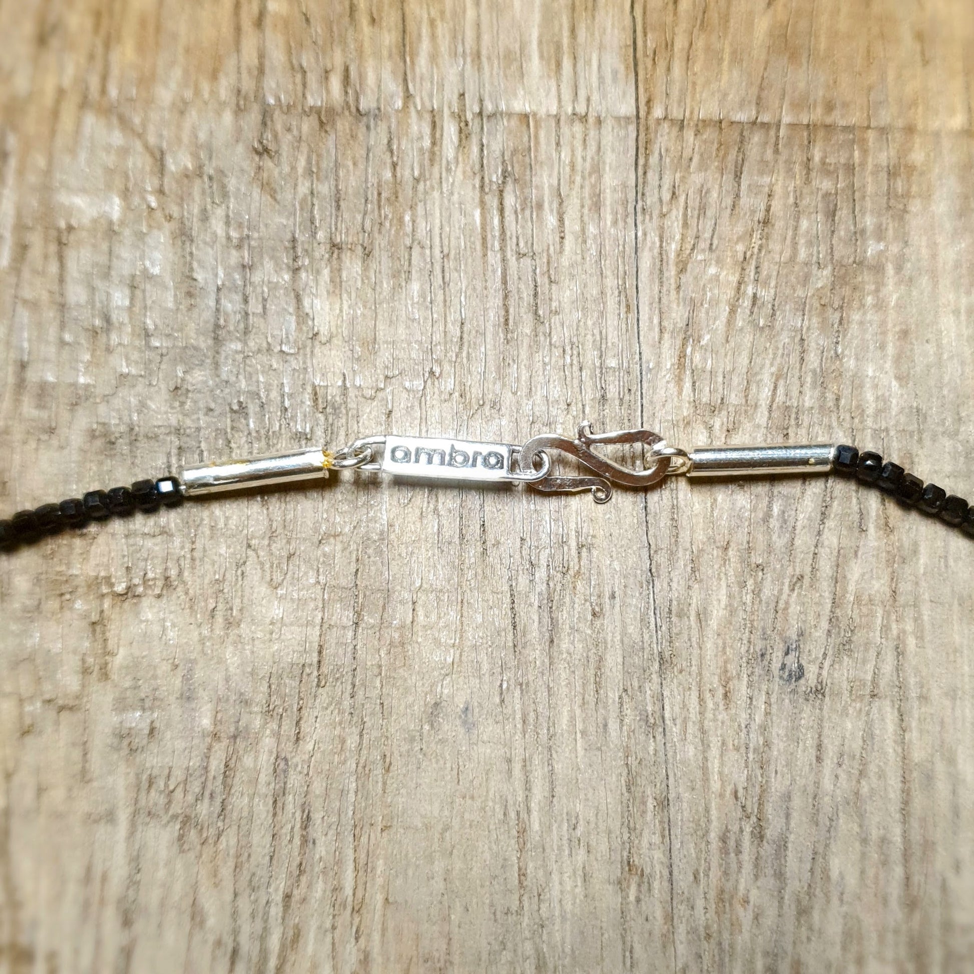 Fine handmade necklace with black faceted tourmaline stones and hammered silver beads from Burma with silver clasp by ambra Schmuck.