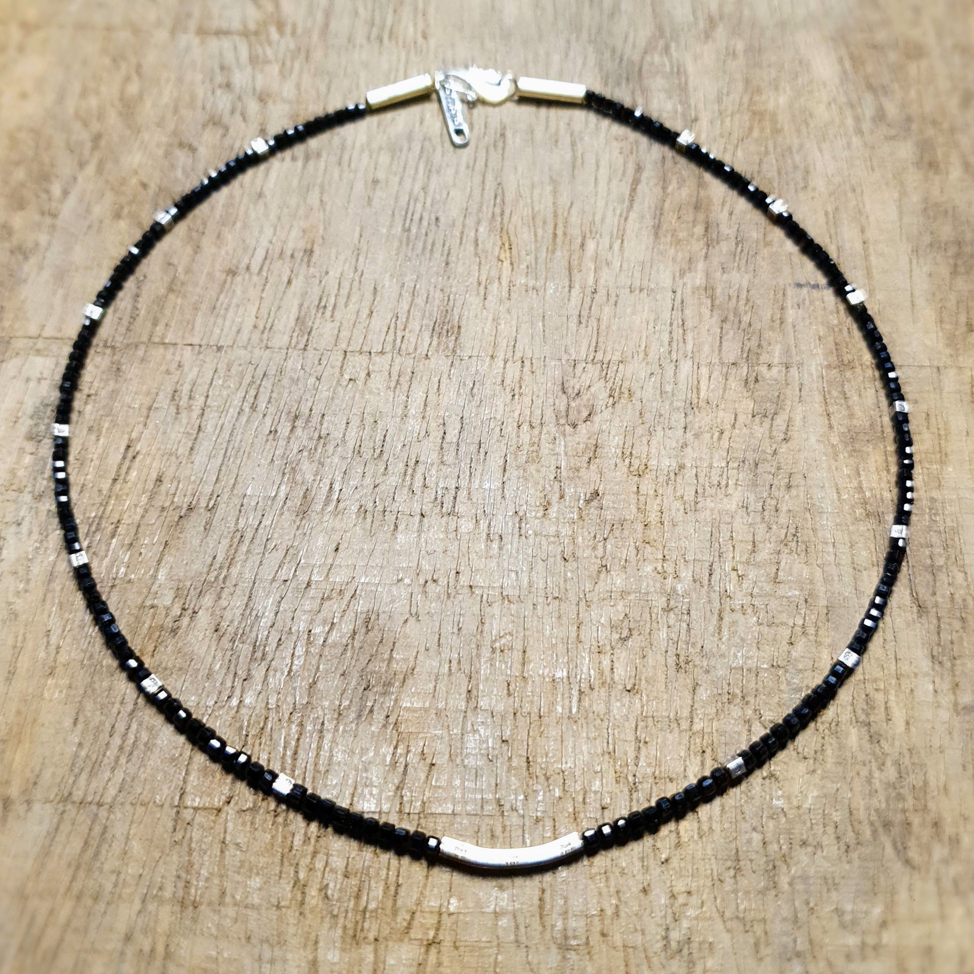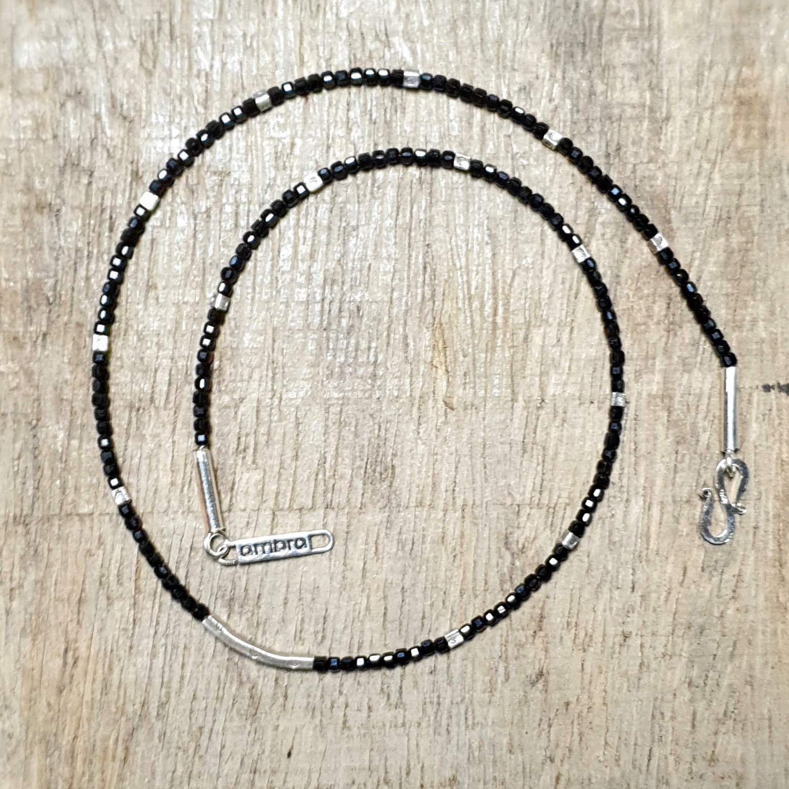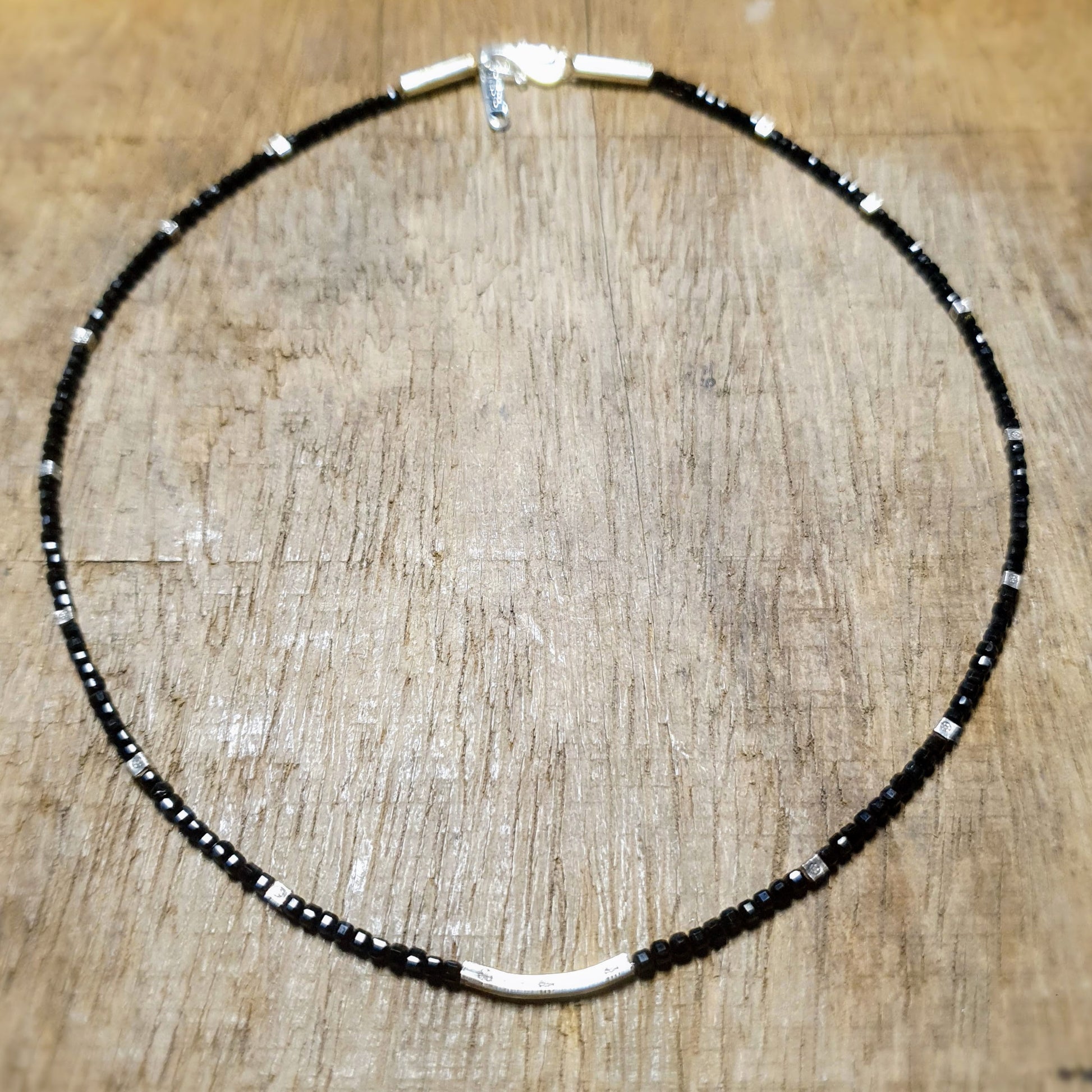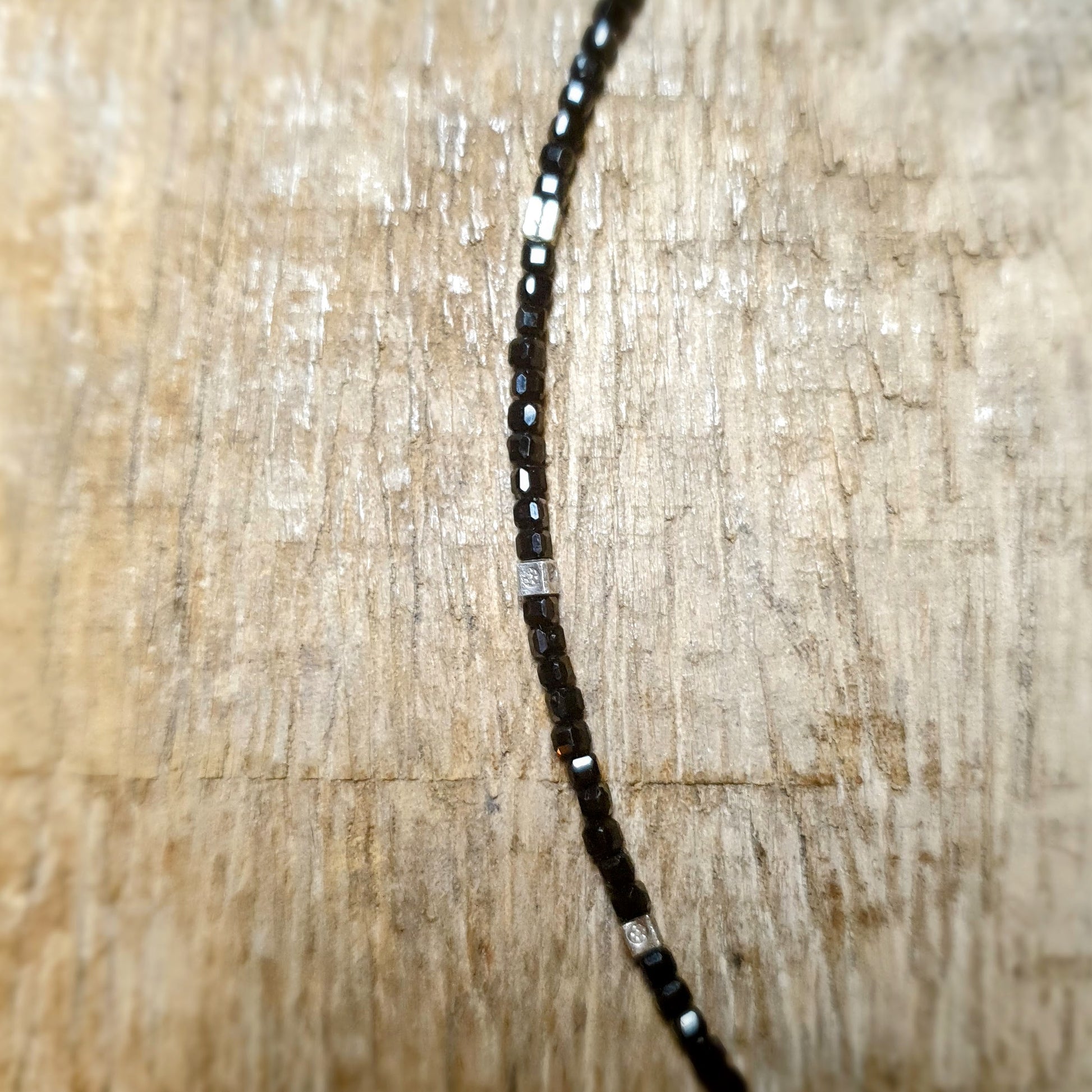 Fine handmade necklace with black faceted tourmaline stones and hammered silver beads from Burma with silver clasp by ambra Schmuck.