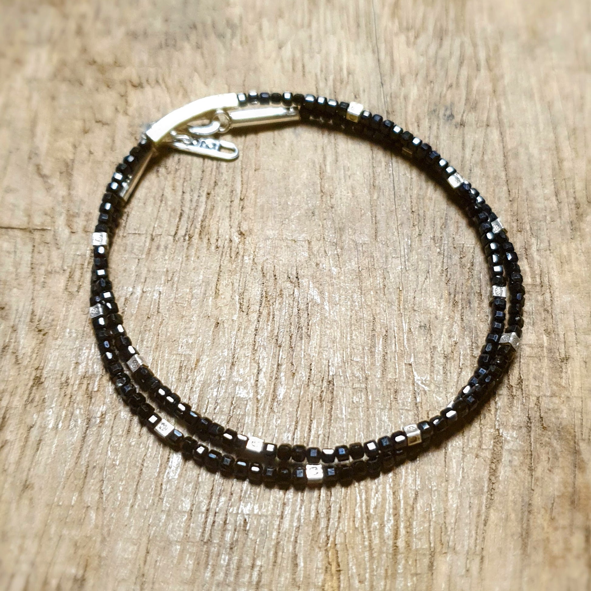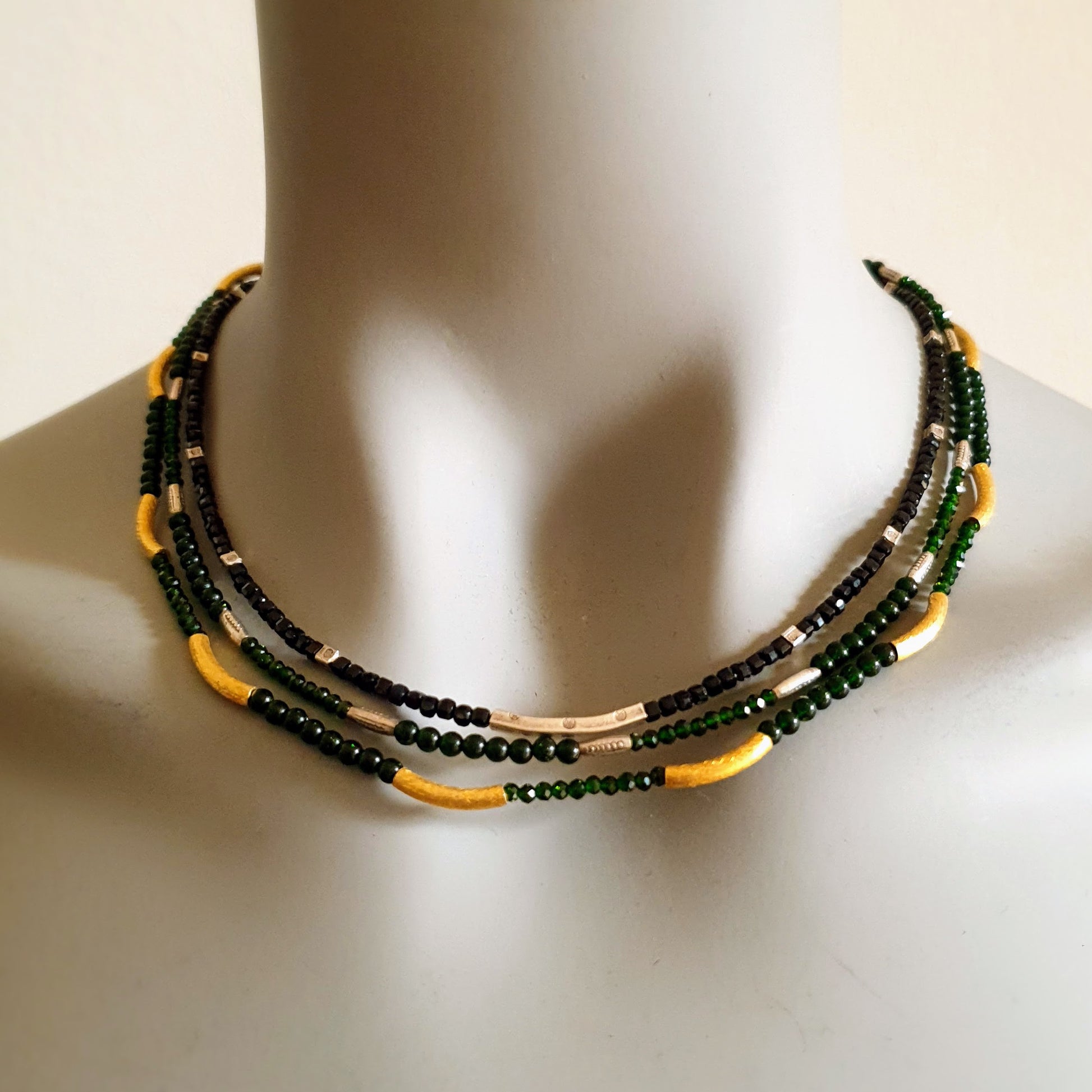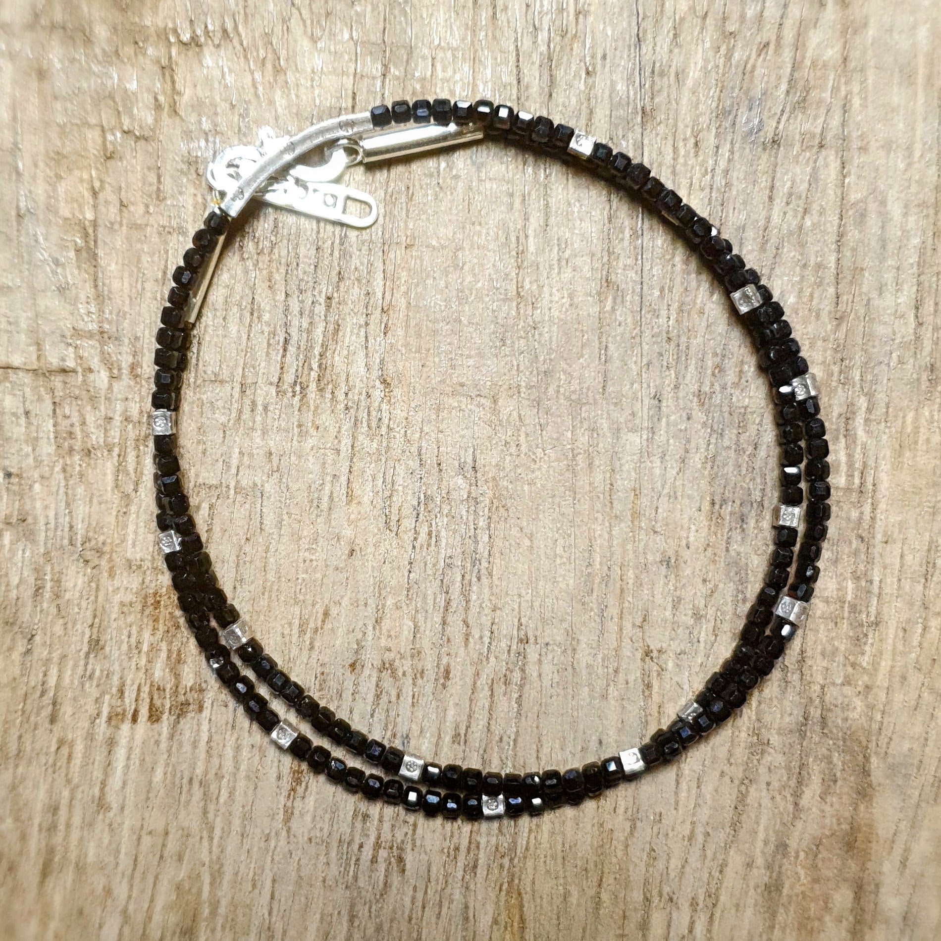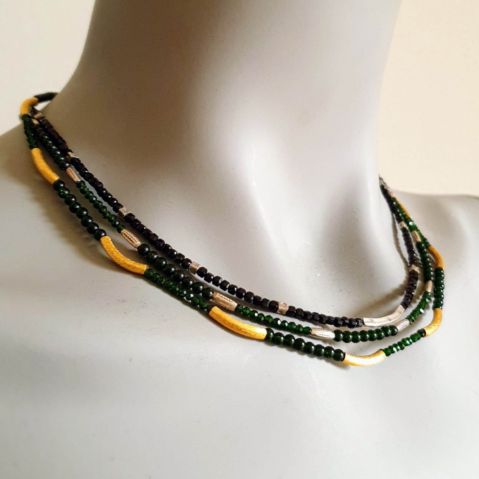 Fine handmade necklace with black faceted tourmaline stones and hammered silver beads from Burma with silver clasp by ambra Schmuck.