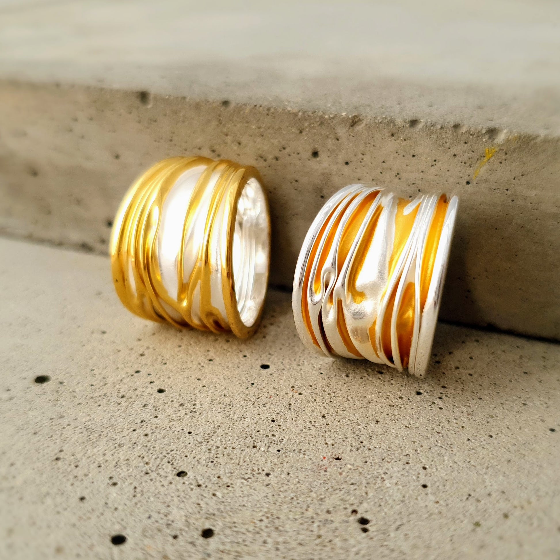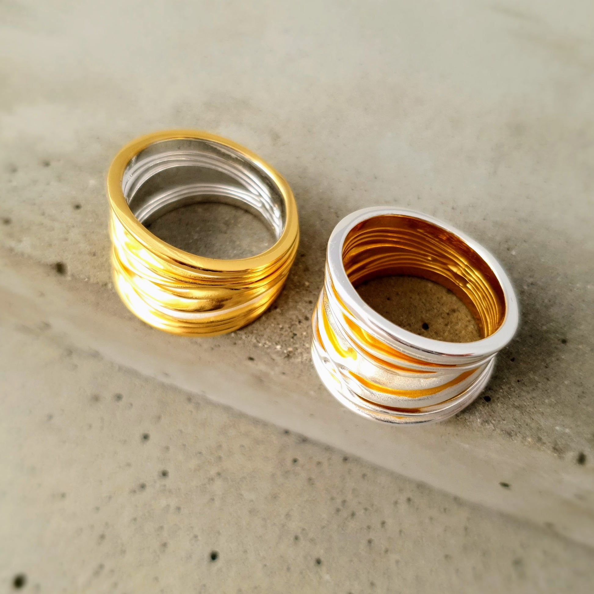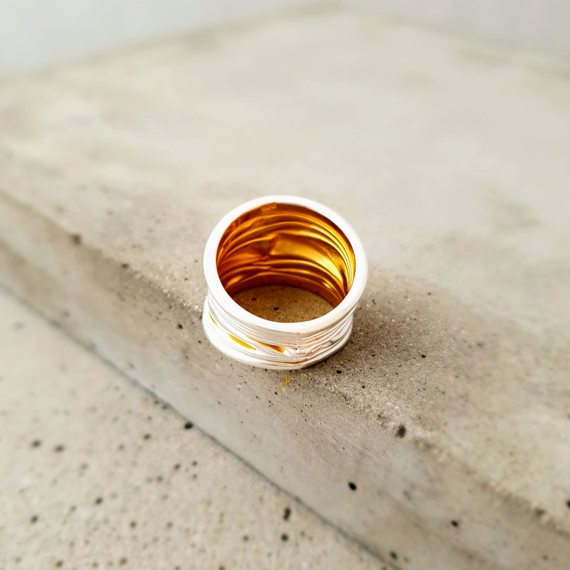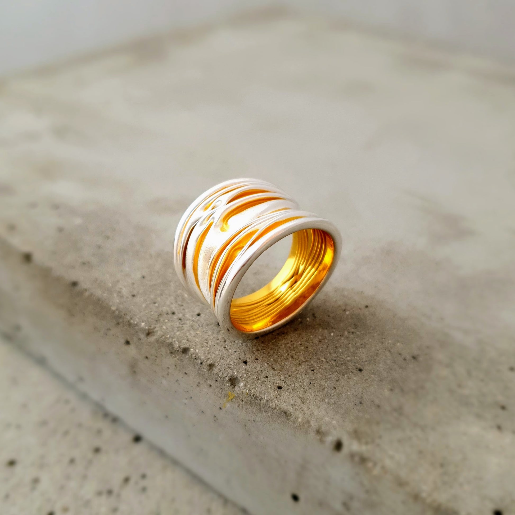 Bicolor-Bandring aus gefaltenem vergoldetem und mattiertem 925er Sterlingsilber.