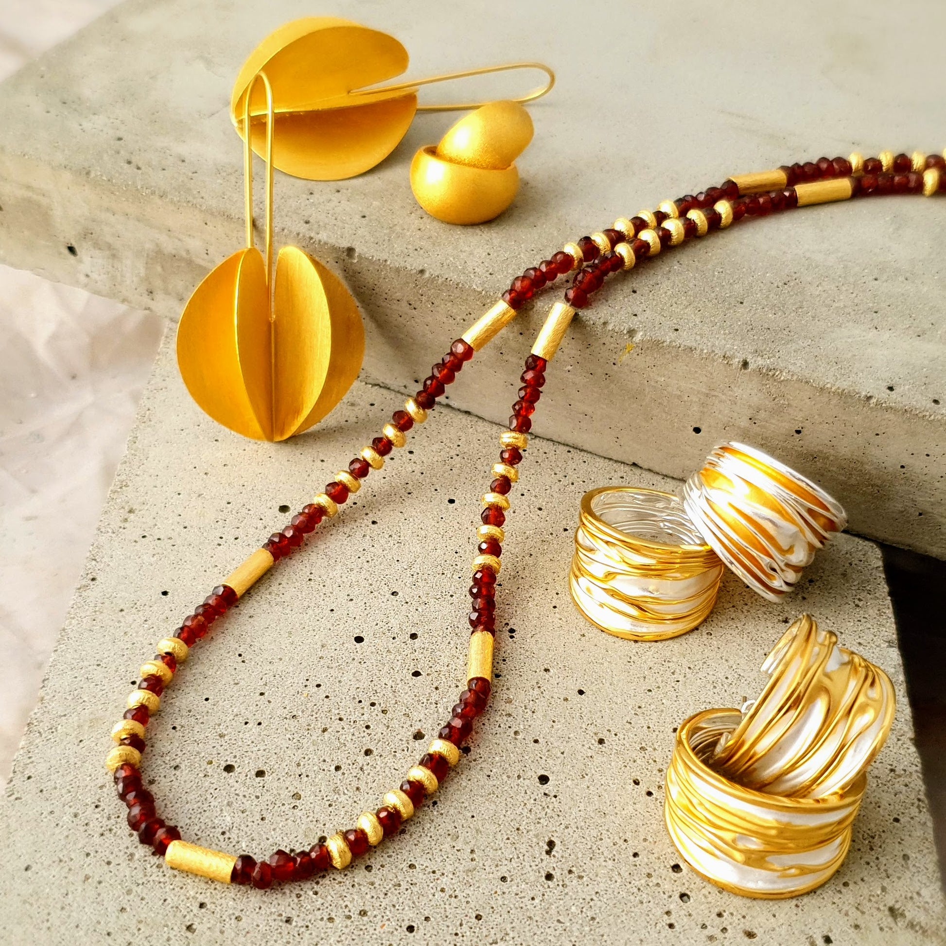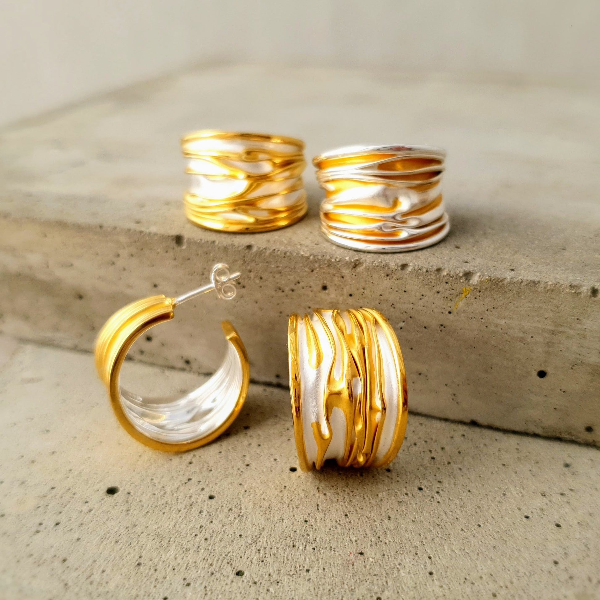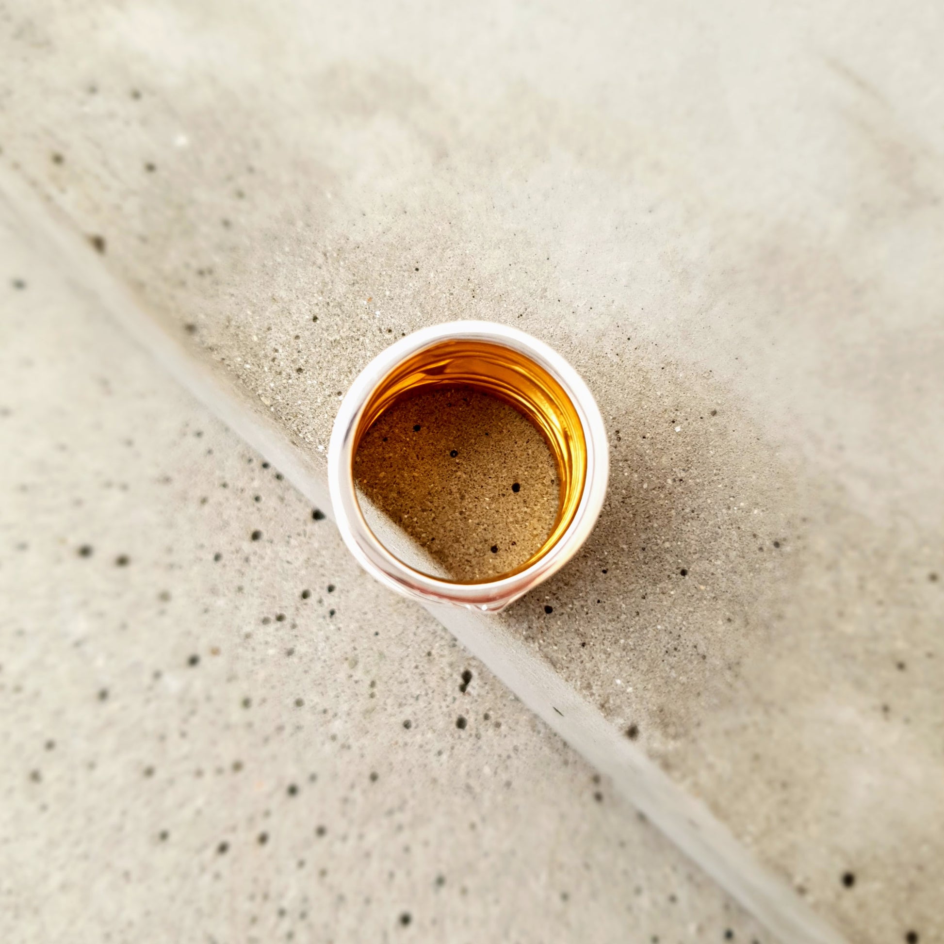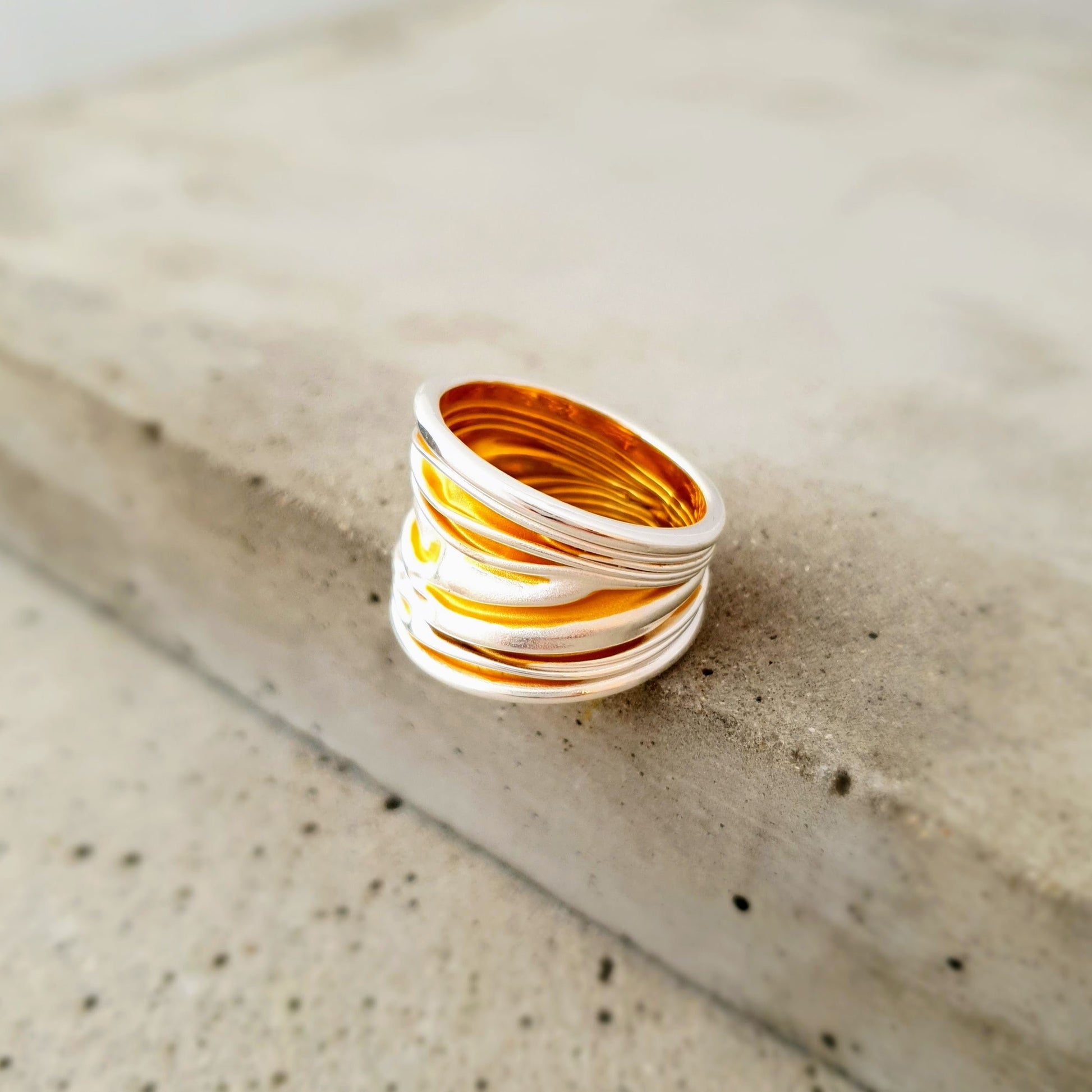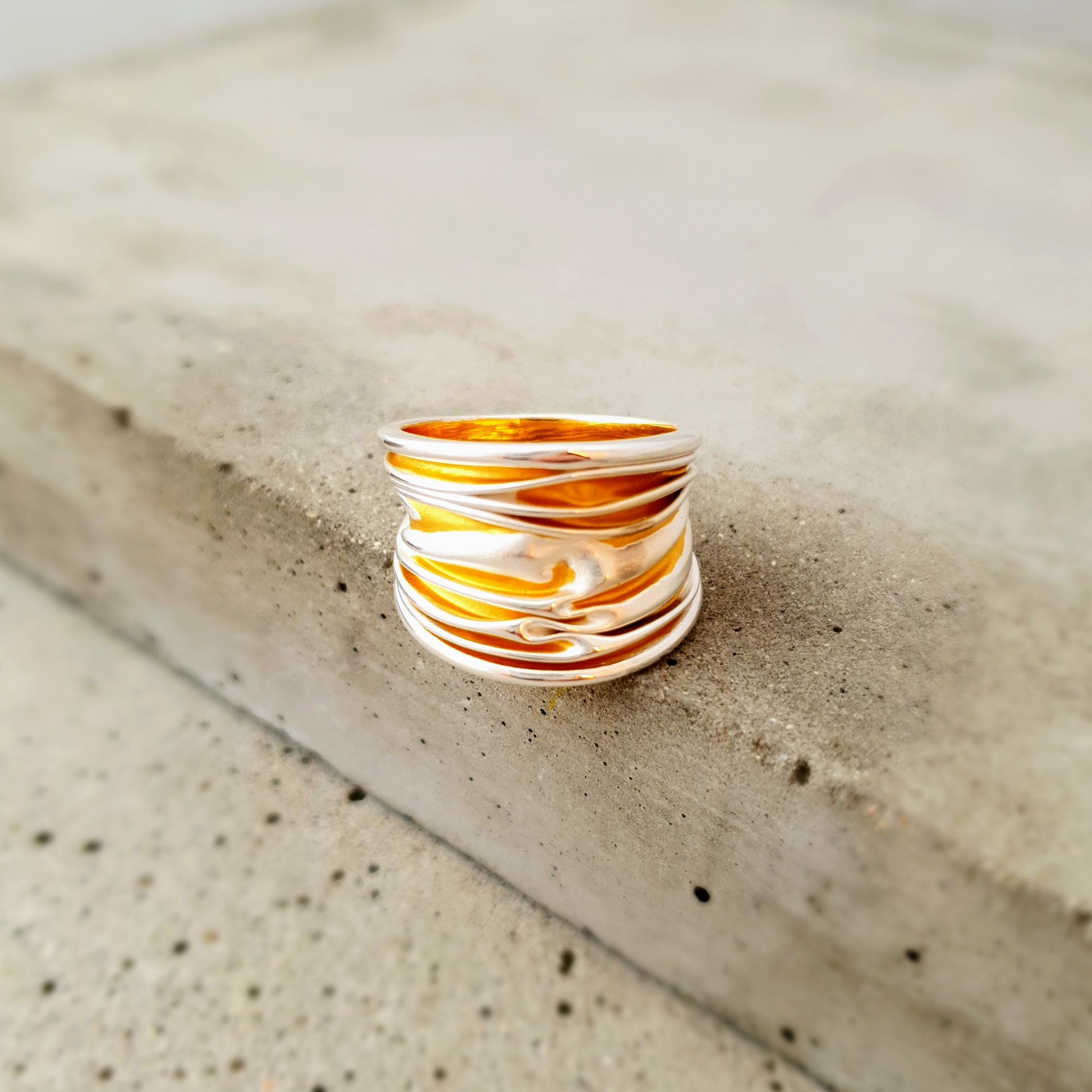 Bicolor-Bandring aus gefaltenem vergoldetem und mattiertem 925er Sterlingsilber.