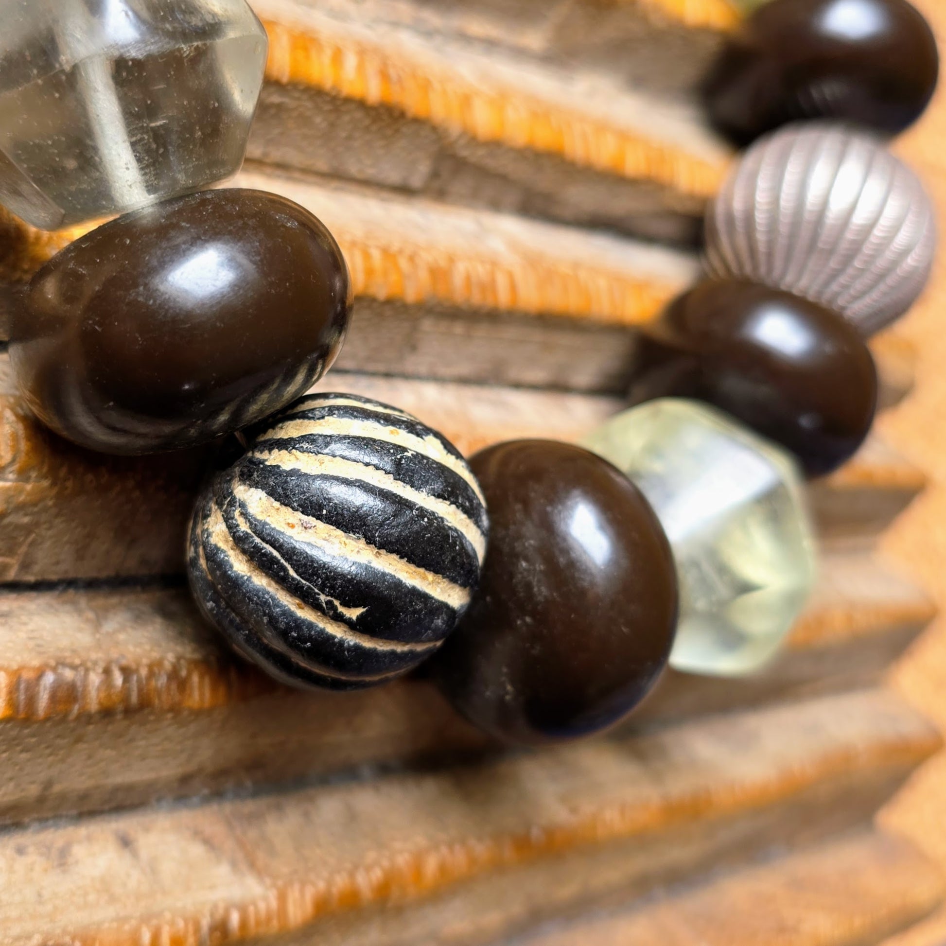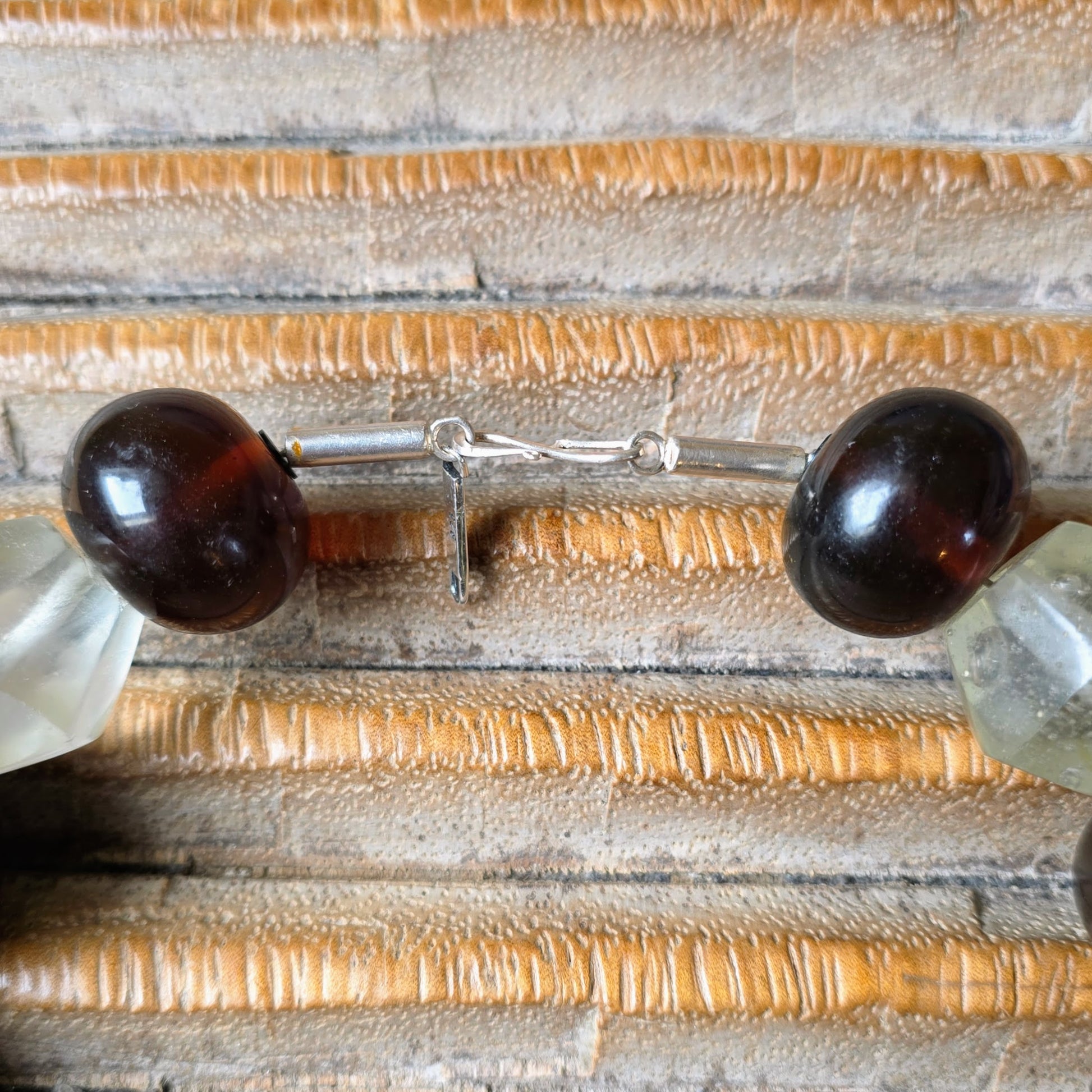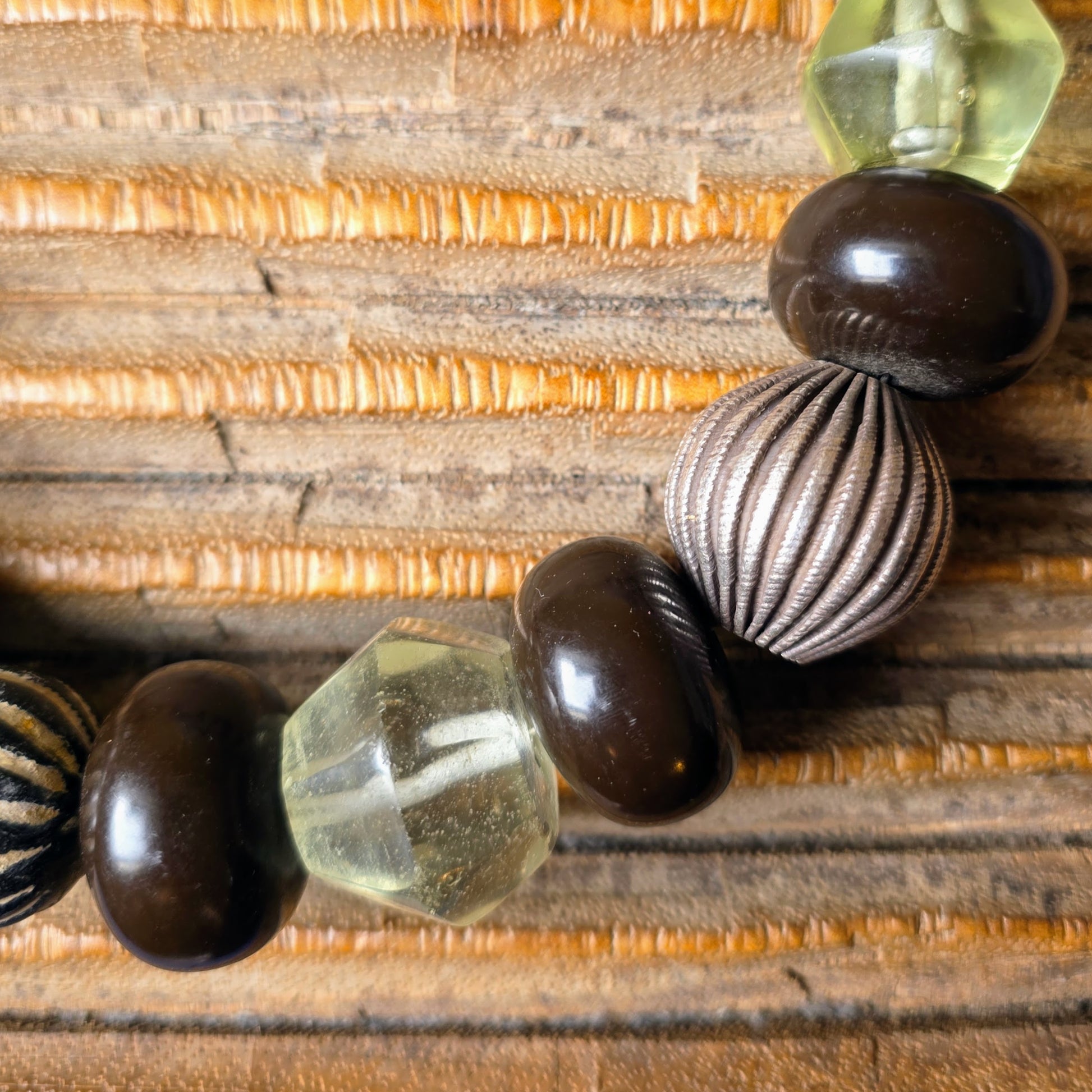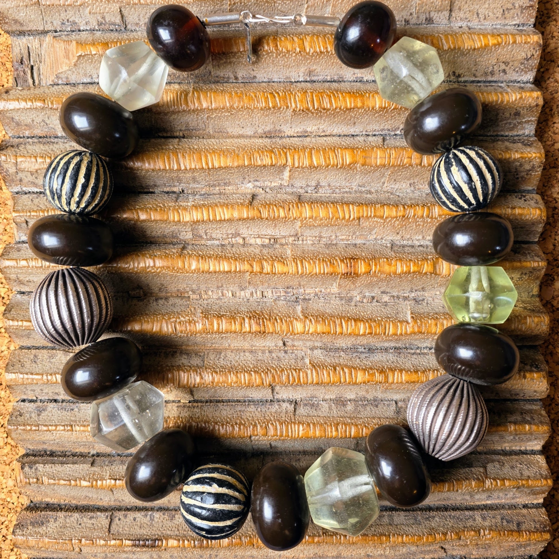 Handgearbeitete Halskette mit Harz- und Glasperlen aus Indonesien, großen burmesischen Silberperlen und Tonperlen aus Afrika mit Silberverschluss von ambra Schmuck.