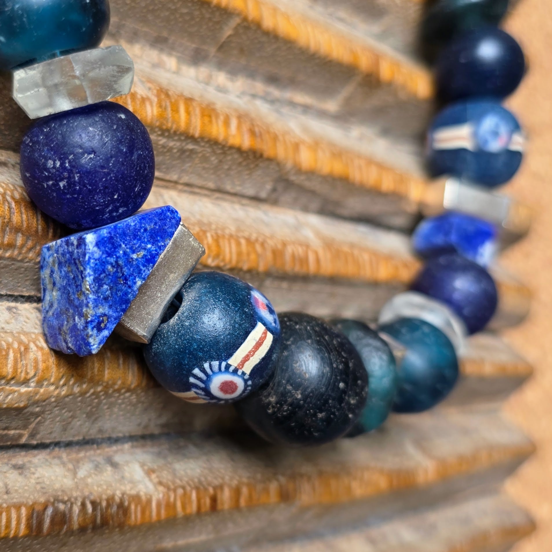 Halskette | Javaglas | Lapislazuli | Burmasilber